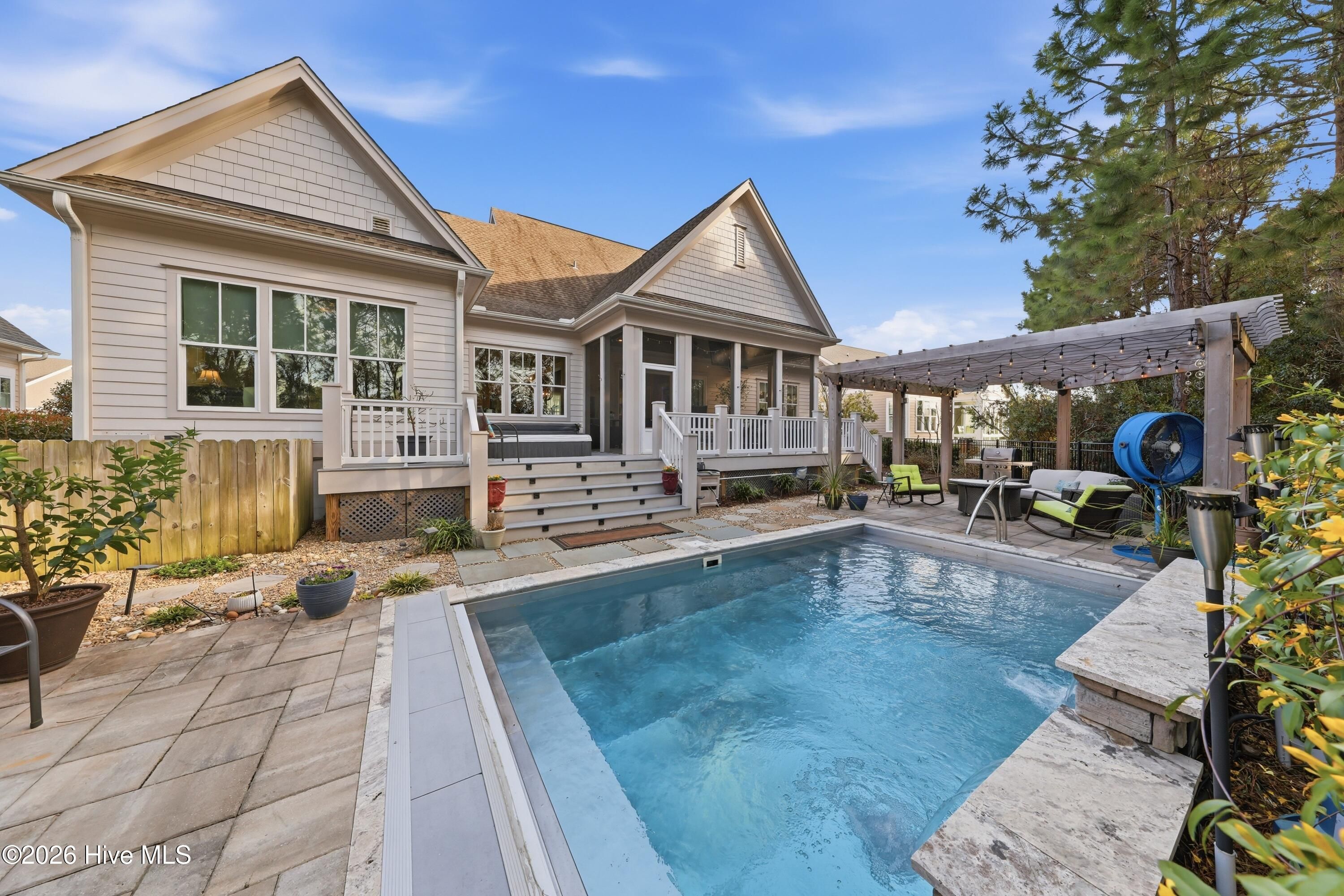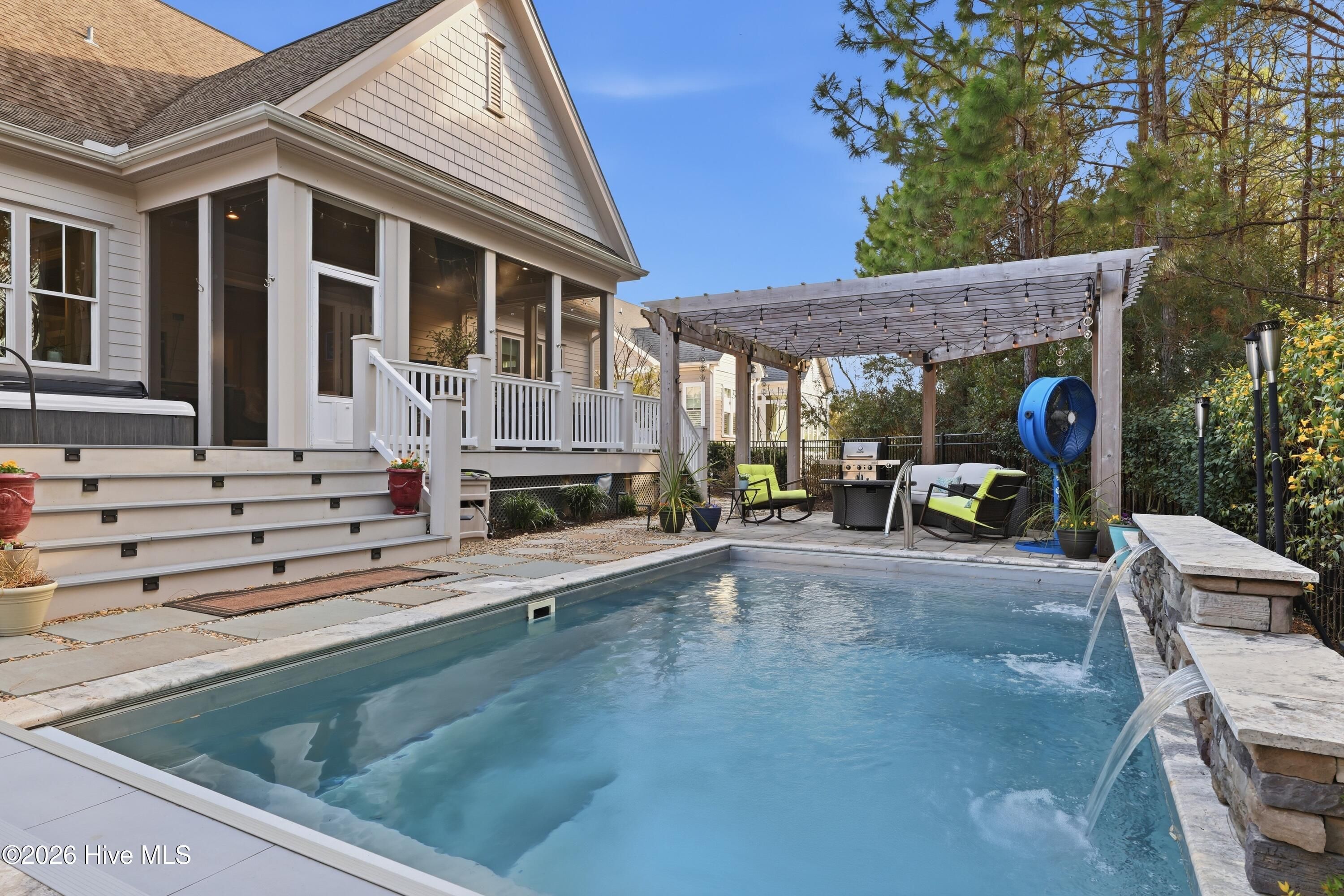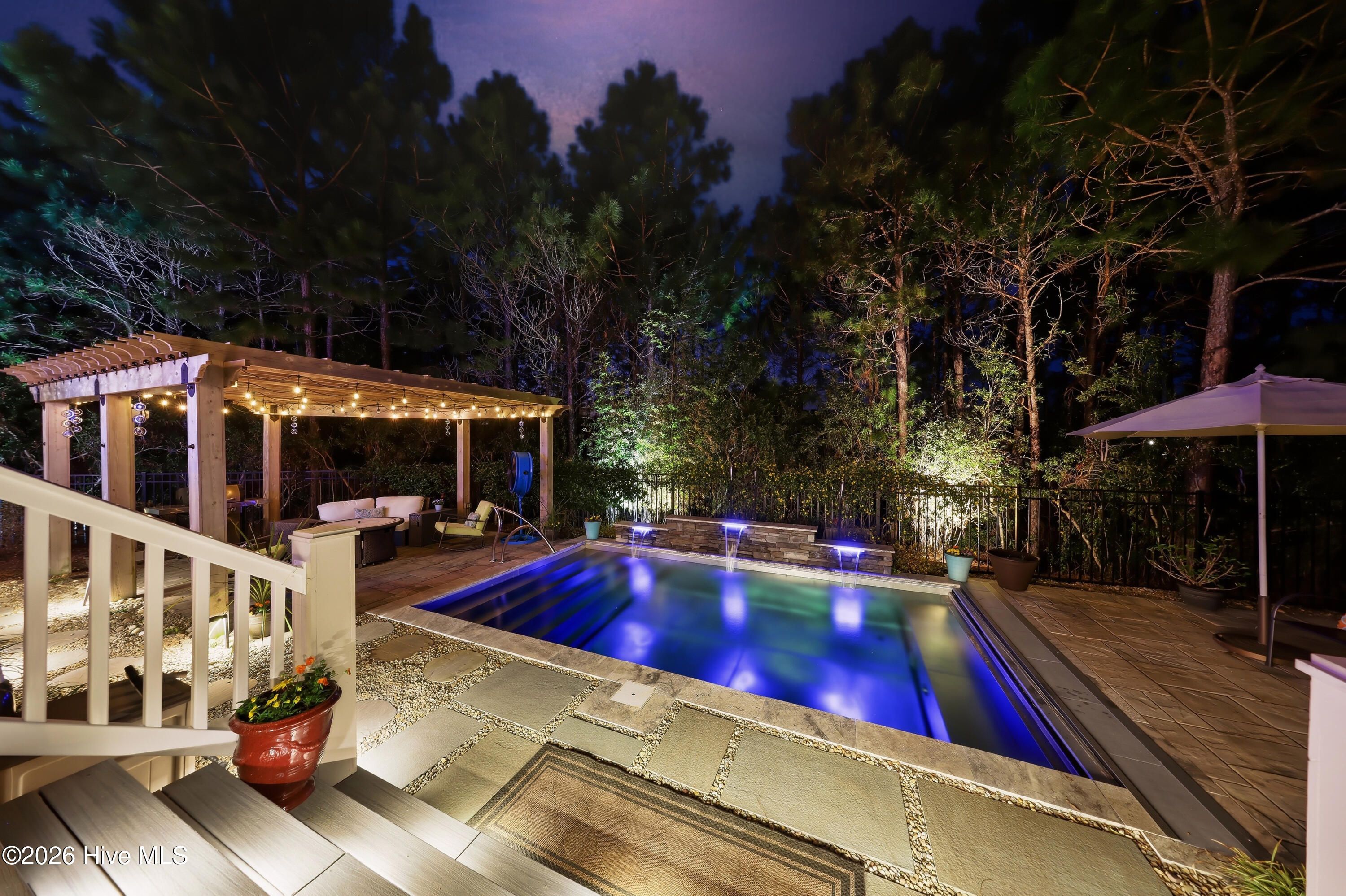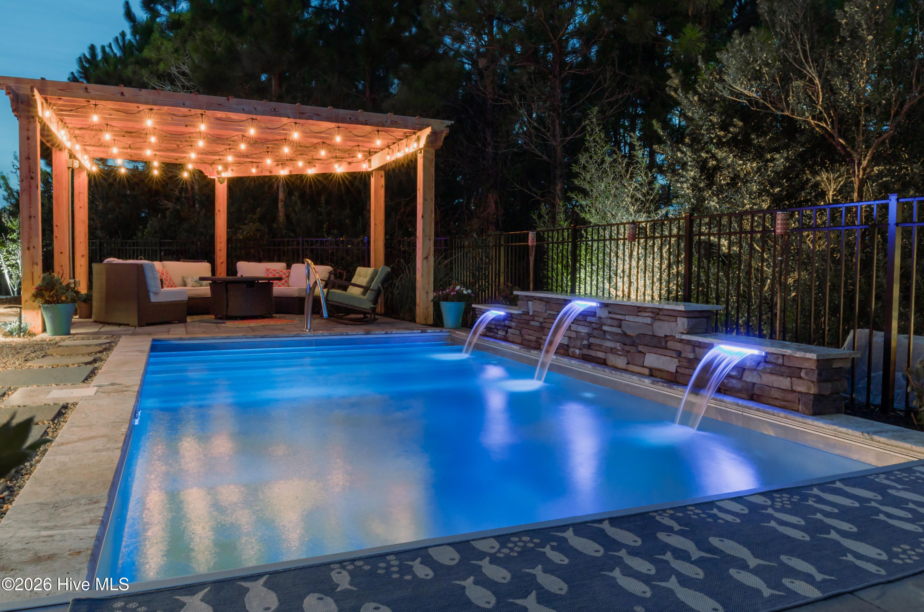 Welcome to 3510 Wellington Place, an exceptional Vahue custom-built residence located in the prestigious Reserve neighborhood of St. James Plantation. Designed for luxury coastal living and effortless entertaining, this stunning 4-bedroom, 4.5-bath home is highlighted by a spectacular resort-style backyard oasis with approximately $300,000 in custom upgrades. The private outdoor retreat features a rare custom stainless-steel pool with LED lighting, waterfall feature, integrated retractable cover, and app-controlled automation with propane heater, along with a 7-person spa, elegant pergola with café lighting, fire pit lounge area, extensive stone hardscaping, raised pool wall with stone cap, architectural stepping-stone walkways, Trex decking, outdoor shower, integrated landscape and stair lighting, and irrigation with drip lines. A spacious screened porch and elevated covered porch overlook the pool, creating a private outdoor sanctuary designed for unforgettable gatherings and year-round enjoyment. Inside, the home showcases exceptional craftsmanship, refined architectural details, and thoughtful custom design throughout. The open-concept main level offers 10-foot ceilings, custom plantation shutters, abundant storage closets, and an oversized garage with a dedicated storage closet. The chef's kitchen flows seamlessly into the main living areas, creating the perfect space for entertaining while maintaining a warm and inviting atmosphere. A formal dining room, comfortable sitting area, laundry room, and drop zone add both elegance and everyday functionality. The primary suite serves as a true private retreat, featuring a spa-inspired bathroom and an oversized walk-in closet, creating a peaceful sanctuary designed for relaxation and comfort. The main level also includes a private mother-in-law suite, offering exceptional flexibility for guests or multigenerational living. Upstairs provides outstanding versatility with a private guest retreat featuring a bedroom, two full bathrooms, an office or additional bedroom, and a spacious bonus room or sitting area. The upper level also includes a huge walk-in attic providing exceptional storage space, a rare and valuable feature for keeping seasonal items organized and easily accessible. Ideally located within St. James Plantation, the home enjoys convenient walking and biking access to the Seaside Club and quick access to the community's premier amenities. Living in St. James means enjoying one of the most desirable coastal lifestyles in North Carolina, with 81 holes of championship golf, tennis and pickleball courts, multiple fitness centers, indoor and outdoor pools, more than 35 miles of walking and biking trails, Waterway Park, marina, kayak launch, outdoor amphitheater, and a private oceanfront beach club on Oak Island. This remarkable home offers the rare opportunity to experience luxury coastal living, resort-style outdoor spaces, and the unmatched lifestyle of St. James Plantation.