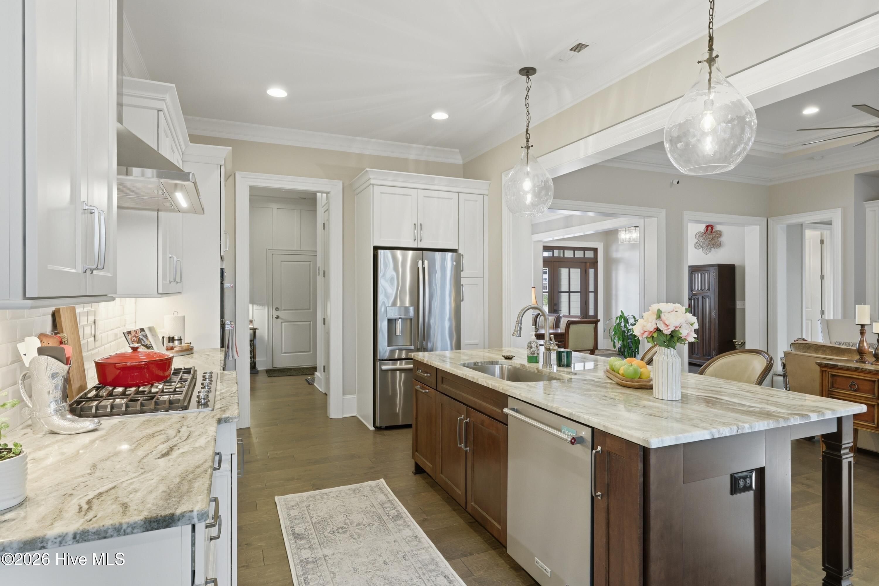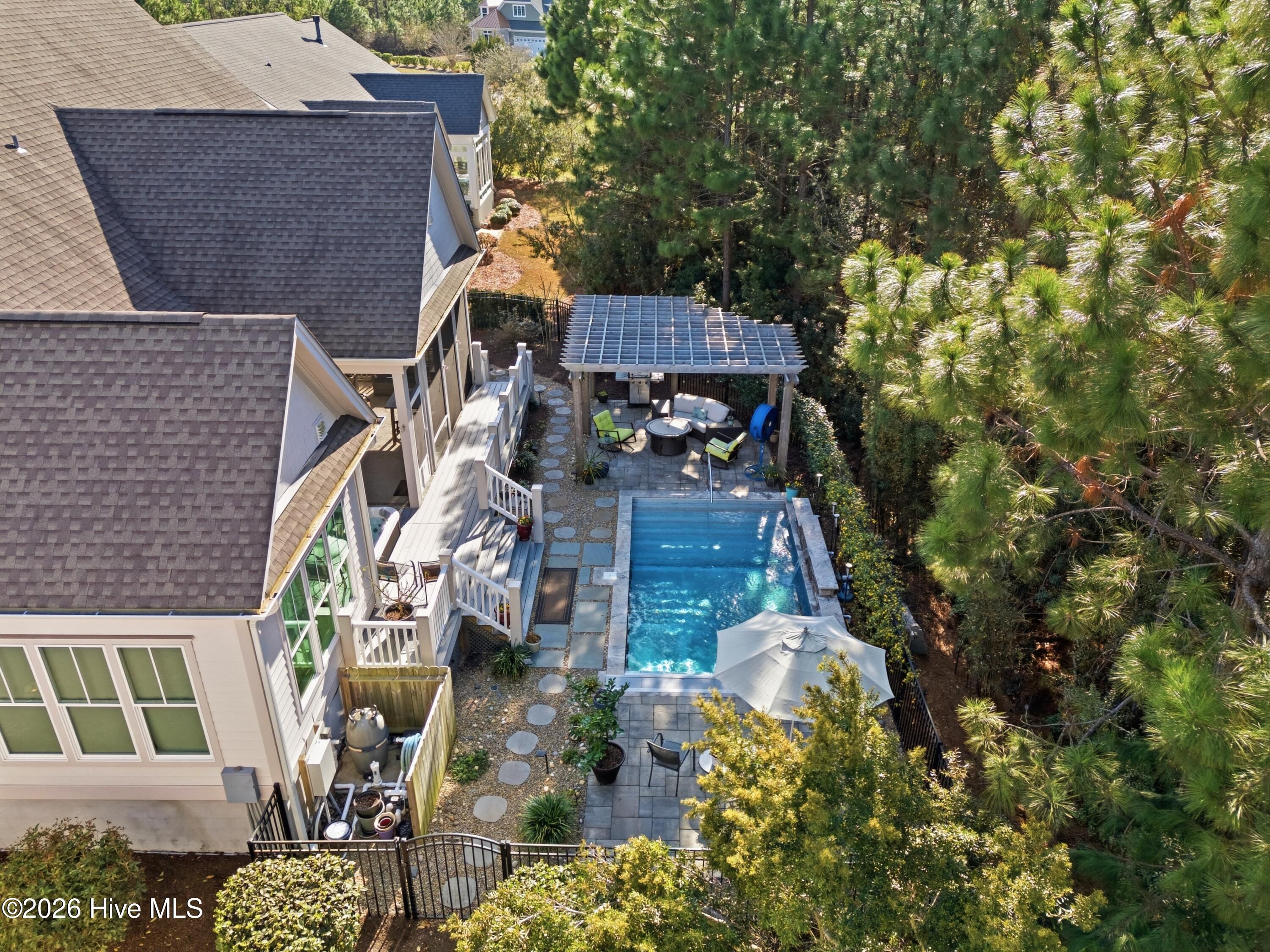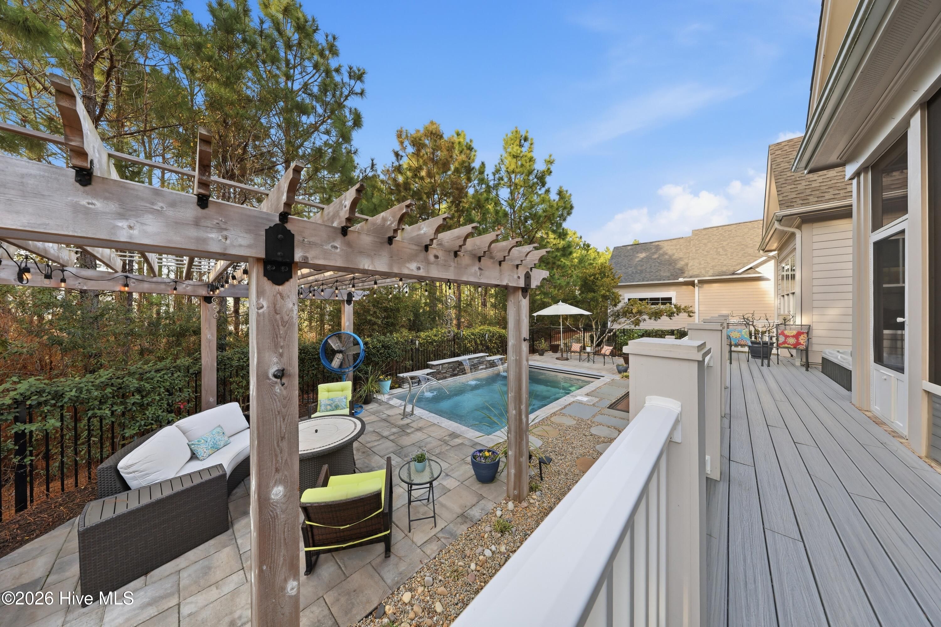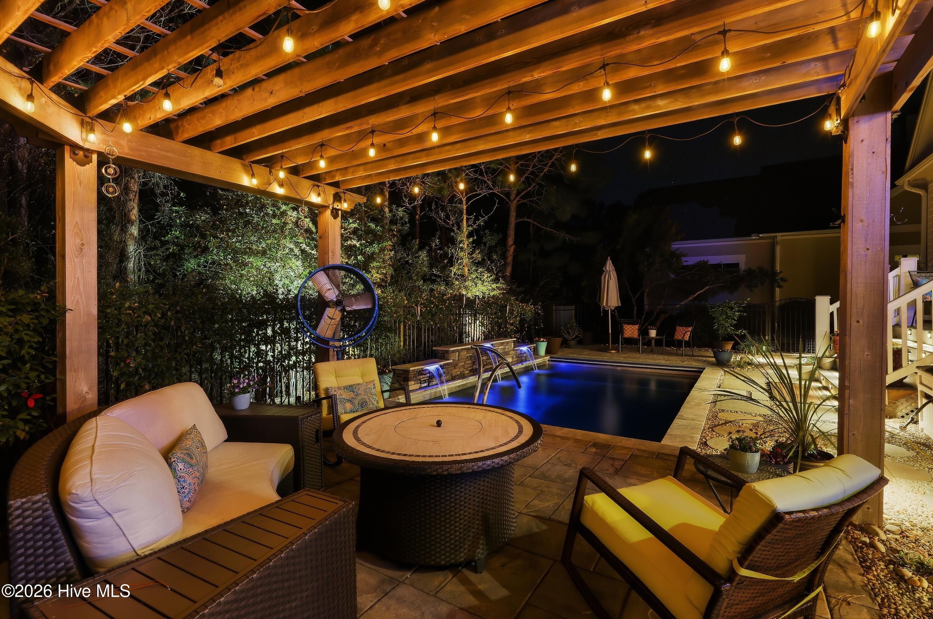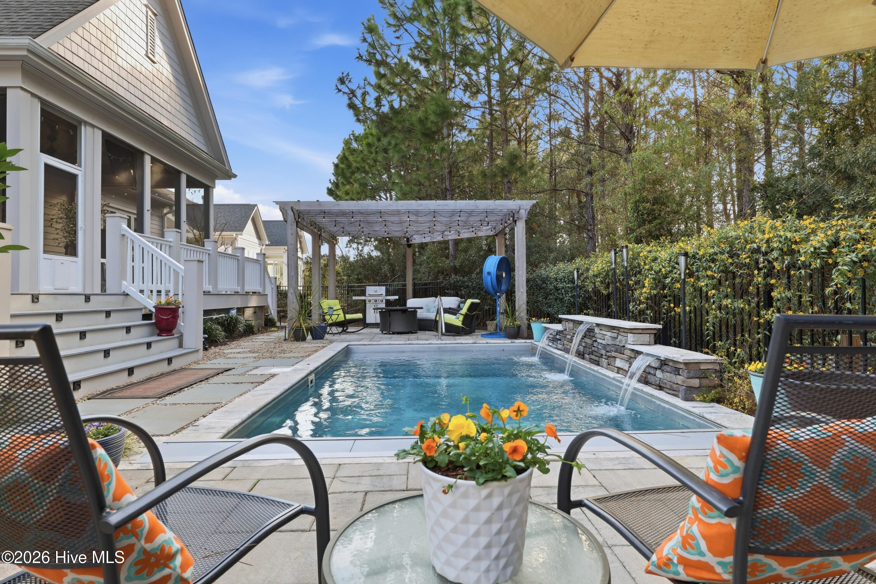 Welcome to 3510 Wellington Place, an exceptional Vahue custom-built residence located in the prestigious Reserve neighborhood of St. James Plantation. Designed for luxury coastal living and effortless entertaining, this stunning 4-bedroom, 4.5-bath home is highlighted by a spectacular resort-style backyard oasis with approximately $300,000 in custom upgrades. The private outdoor retreat features a rare custom stainless-steel pool with LED lighting, waterfall feature, integrated retractable cover, and app-controlled automation with propane heater, along with a 7-person spa, elegant pergola with café lighting, fire pit lounge area, extensive stone hardscaping, raised pool wall with stone cap, architectural stepping-stone walkways, Trex decking, outdoor shower, integrated landscape and stair lighting, and irrigation with drip lines. A spacious screened porch and elevated covered porch overlook the pool, creating a private outdoor sanctuary designed for unforgettable gatherings and year-round enjoyment. Inside, the home showcases exceptional craftsmanship, refined architectural details, and thoughtful custom design throughout. The open-concept main level offers 10-foot ceilings, custom plantation shutters, abundant storage closets, and an oversized garage with a dedicated storage closet. The chef's kitchen flows seamlessly into the main living areas, creating the perfect space for entertaining while maintaining a warm and inviting atmosphere. A formal dining room, comfortable sitting area, laundry room, and drop zone add both elegance and everyday functionality. The primary suite serves as a true private retreat, featuring a spa-inspired bathroom and an oversized walk-in closet, creating a peaceful sanctuary designed for relaxation and comfort. The main level also includes a private mother-in-law suite, offering exceptional flexibility for guests or multigenerational living. Upstairs provides outstanding versatility with a private guest retreat featuring a bedroom, two full bathrooms, an office or additional bedroom, and a spacious bonus room or sitting area. The upper level also includes a huge walk-in attic providing exceptional storage space, a rare and valuable feature for keeping seasonal items organized and easily accessible. Ideally located within St. James Plantation, the home enjoys convenient walking and biking access to the Seaside Club and quick access to the community's premier amenities. Living in St. James means enjoying one of the most desirable coastal lifestyles in North Carolina, with 81 holes of championship golf, tennis and pickleball courts, multiple fitness centers, indoor and outdoor pools, more than 35 miles of walking and biking trails, Waterway Park, marina, kayak launch, outdoor amphitheater, and a private oceanfront beach club on Oak Island. This remarkable home offers the rare opportunity to experience luxury coastal living, resort-style outdoor spaces, and the unmatched lifestyle of St. James Plantation.