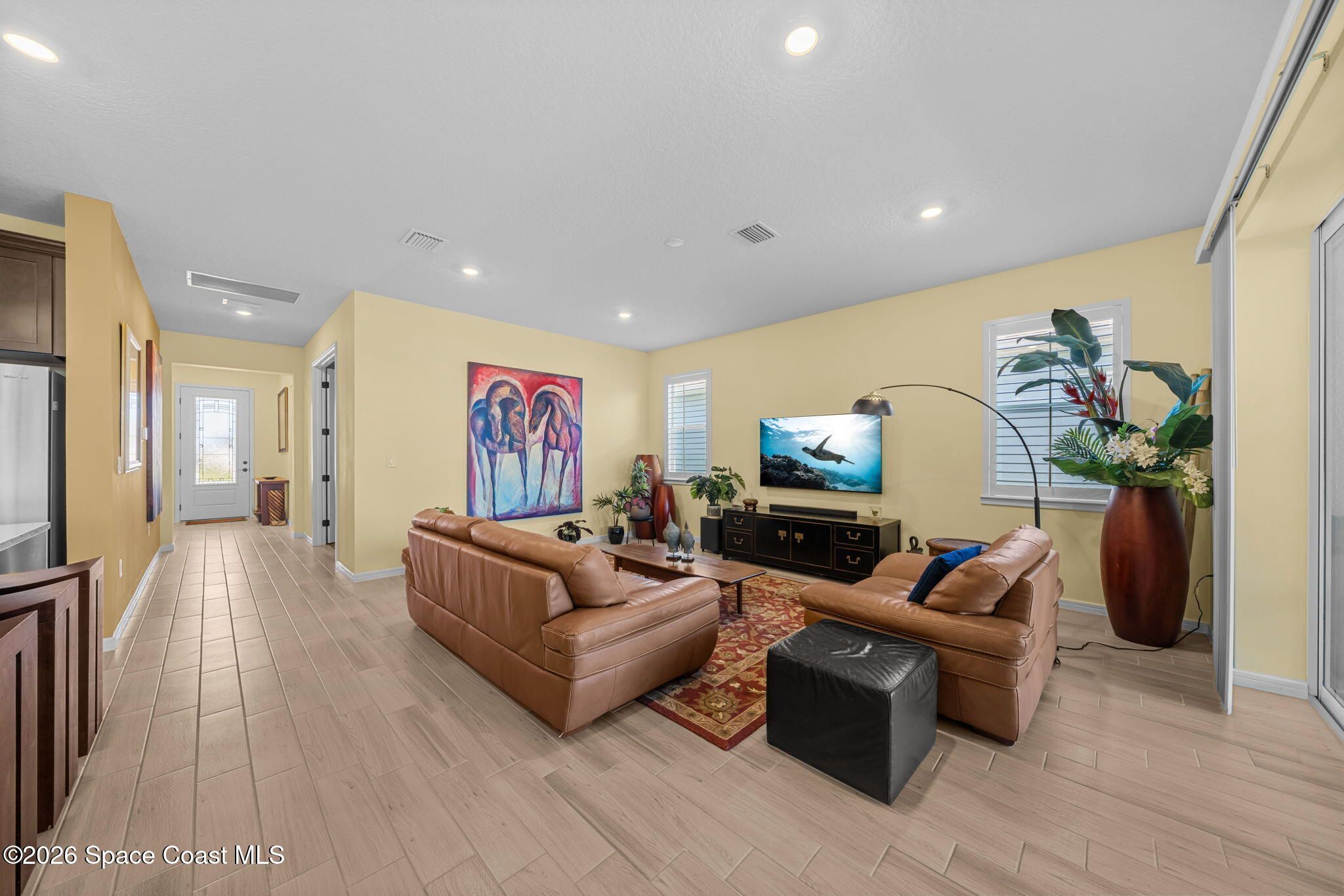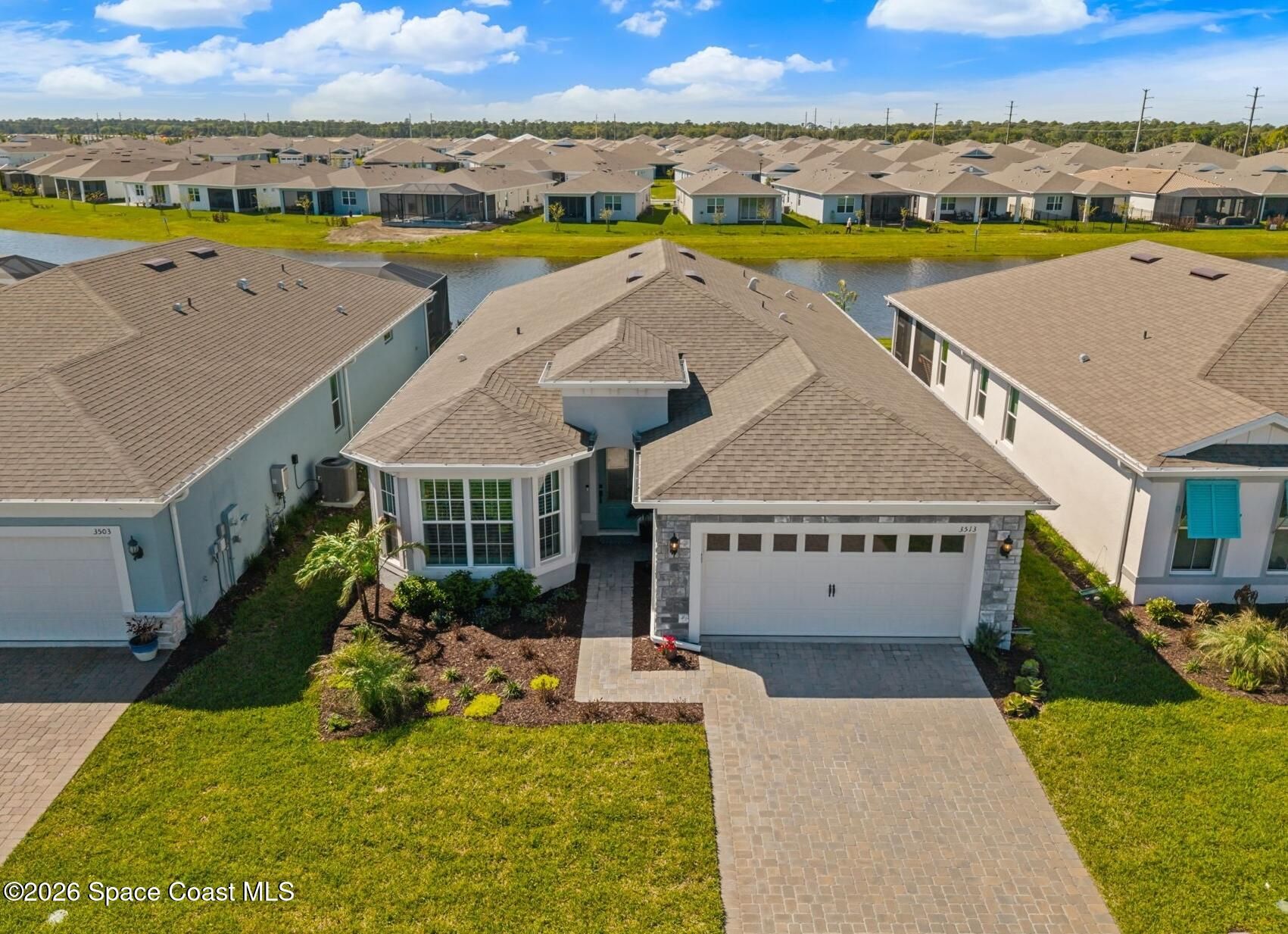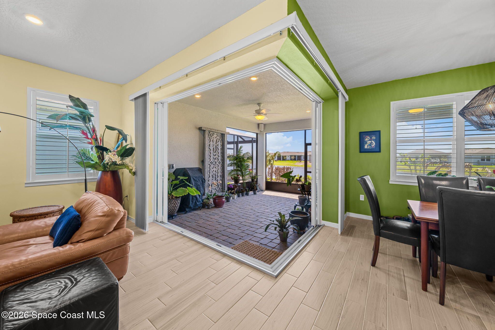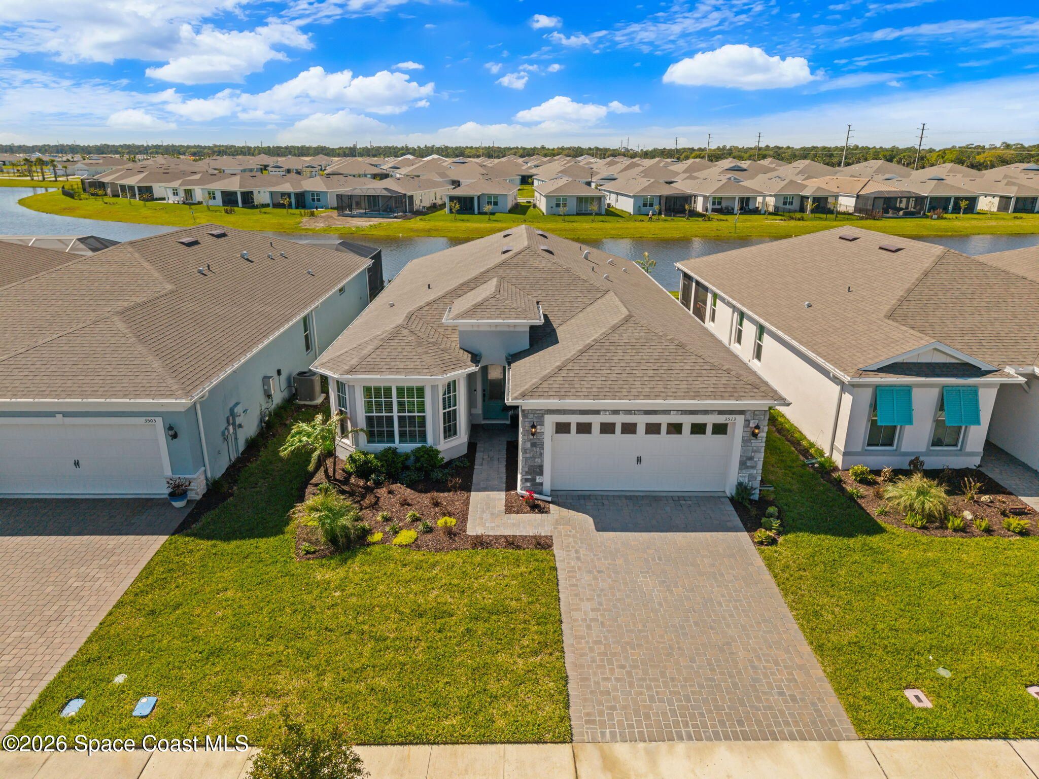 Skip the wait and move right into this beautifully upgraded Mystique floor plan--loaded with premium lot features, high-end finishes, and thoughtful upgrades already complete! Step inside and experience a light-filled, coastal-inspired interior enhanced by gorgeous plank tile flooring throughout, creating a seamless, elegant, and low-maintenance living space. This highly desirable layout centers around a designer kitchen with a large quartz island, abundant cabinetry, and upscale finishes, flowing effortlessly into the spacious dining area and inviting family room--perfect for both everyday living and entertaining. The 3rd bedroom is a flex room. The home continues to impress with a deluxe master suite featuring an upgraded bathroom with walk-in shower, while the extended 2-car garage with a 4' extension provides extra space for a golf cart or storage. Enjoy true indoor-outdoor Florida living on the oversized screened lanai and covered porch overlooking a peaceful lake! Additional upgrades include impact windows throughout, an electric vehicle charging outlet, epoxy-coated garage floors, and much more--delivering both convenience and peace of mind. Located in the highly sought-after Del Webb at Viera, this premier 55+ resort-style community offers an unmatched lifestyle. The stunning 30,000 sq. ft. amenity center is the heart of it all--featuring a full-time restaurant, resort-style pool, fitness center, pickleball courts, and a full calendar of activities including yoga, Zumba, live entertainment, card games, and social events where neighbors quickly become lifelong friends. Move-in ready and packed with upgrades--this is Florida living at its finest without the wait.