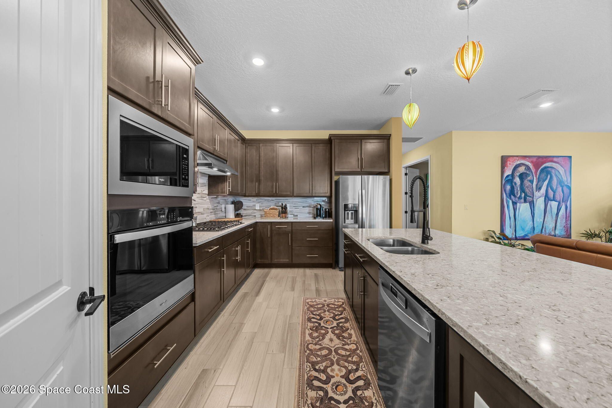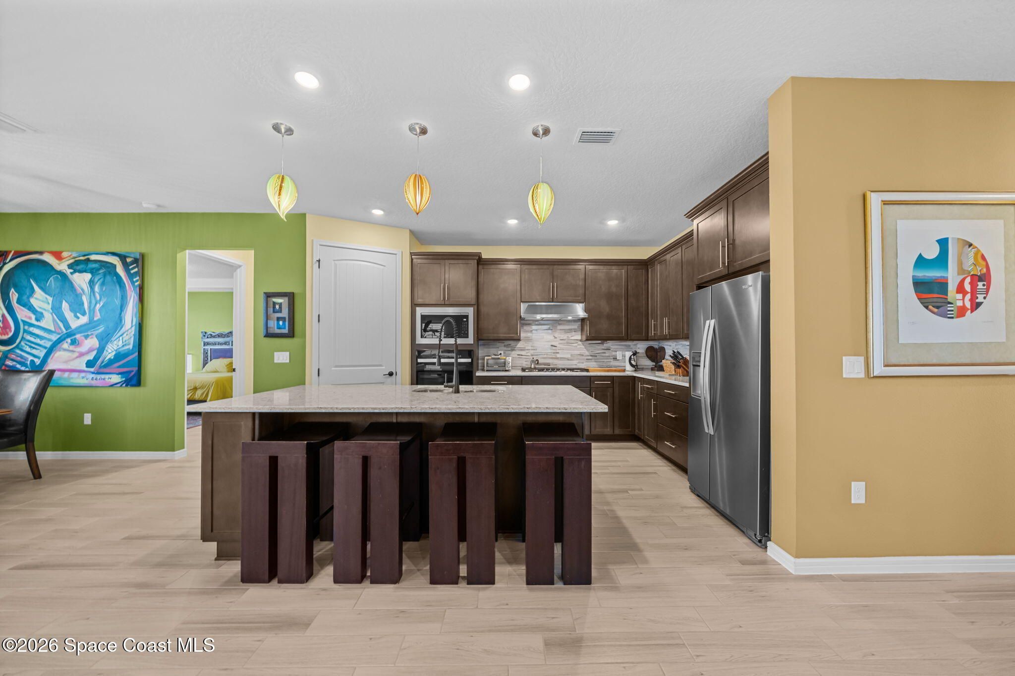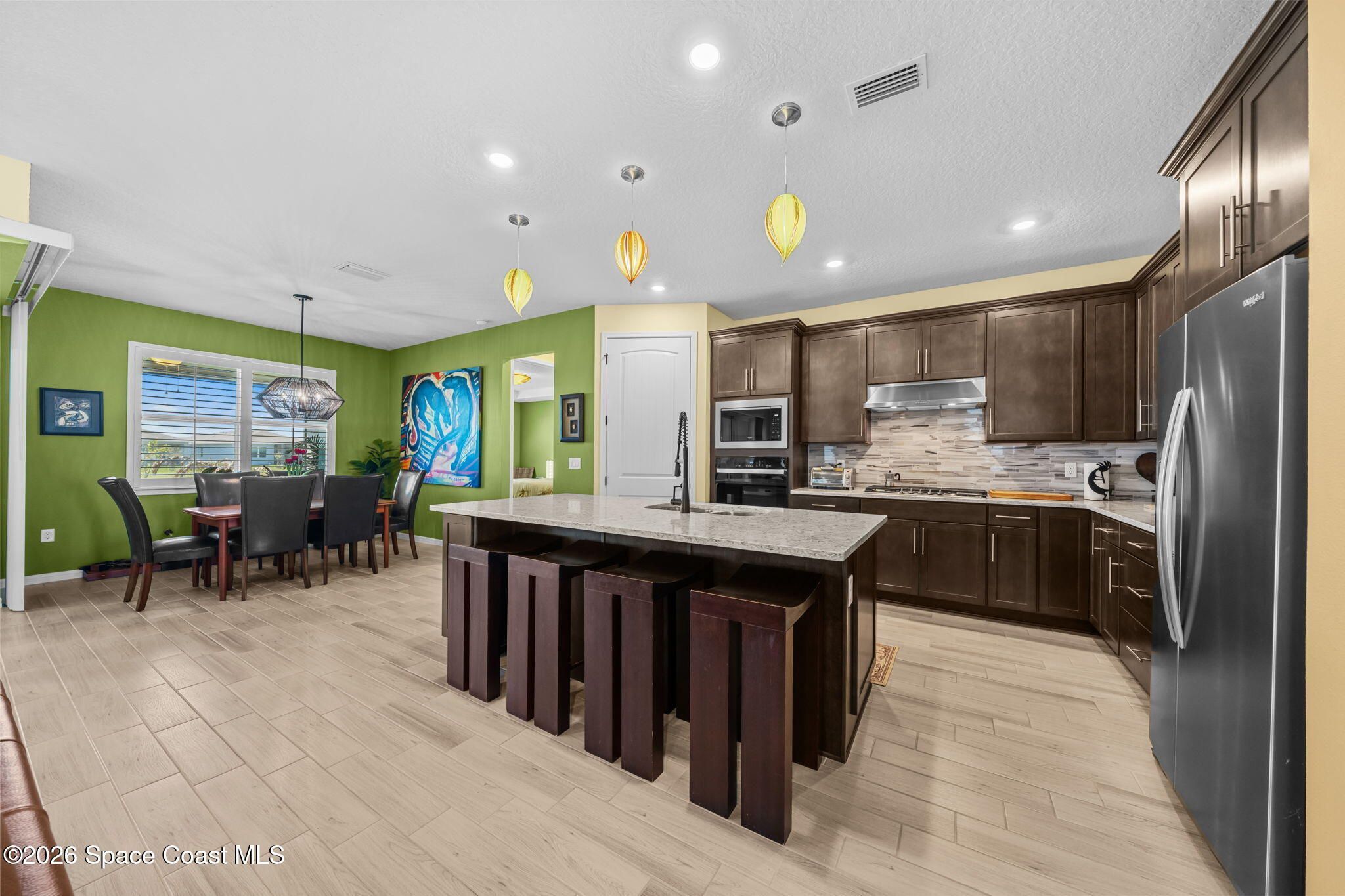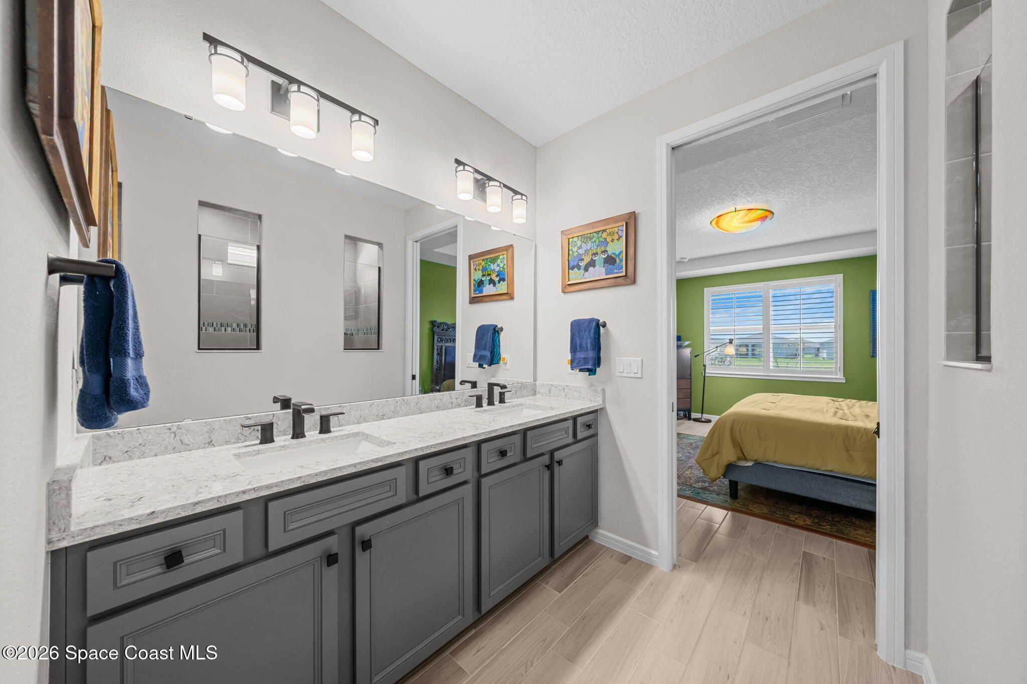 Skip the wait and move right into this beautifully upgraded Mystique floor plan--loaded with premium lot features, high-end finishes, and thoughtful upgrades already complete! Step inside and experience a light-filled, coastal-inspired interior enhanced by gorgeous plank tile flooring throughout, creating a seamless, elegant, and low-maintenance living space. This highly desirable layout centers around a designer kitchen with a large quartz island, abundant cabinetry, and upscale finishes, flowing effortlessly into the spacious dining area and inviting family room--perfect for both everyday living and entertaining. The 3rd bedroom is a flex room. The home continues to impress with a deluxe master suite featuring an upgraded bathroom with walk-in shower, while the extended 2-car garage with a 4' extension provides extra space for a golf cart or storage. Enjoy true indoor-outdoor Florida living on the oversized screened lanai and covered porch overlooking a peaceful lake! Additional upgrades include impact windows throughout, an electric vehicle charging outlet, epoxy-coated garage floors, and much more--delivering both convenience and peace of mind. Located in the highly sought-after Del Webb at Viera, this premier 55+ resort-style community offers an unmatched lifestyle. The stunning 30,000 sq. ft. amenity center is the heart of it all--featuring a full-time restaurant, resort-style pool, fitness center, pickleball courts, and a full calendar of activities including yoga, Zumba, live entertainment, card games, and social events where neighbors quickly become lifelong friends. Move-in ready and packed with upgrades--this is Florida living at its finest without the wait.