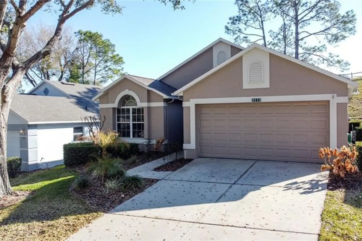 Canterbury model on a sloped golf course lot. that is heading to a quiet cul de sac. No rear neighbors. Home has 1460 heated SF with 2 BD/2 BA , Den and 2 car garage. The kitchen has wood cabinetry , granite countertop , stainless sink and all stainless steel appliances. The refrigerator is approximately 1 year old. The washer and dryer are in a kitchen laundry closet. New Carrier HVAC system in Sept 2024 and Roof change out in Oct 2014. The water heater is 2014. There is wood laminate flooring throughout all the main areas of the home. The Primary bathroom has a new comfort height toilet, new sink & faucet. The back lanai is covered and screened in. Survey is available. Home has a transferable Stark termite bond. Located in Kings Ridge which is a 55+ gated golf community in Clermont FL. Enjoy the Kings Ridge Royal life style in the multimillion $ clubhouse with 3 heated pools, spas, tennis & pickle ball courts, billiards, shuffle board, shows, Bingo, cards and clubs galore. The monthly maintenance fees include: lawn maintenance including trimming of shrubs, care of irrigation system & irrigation water, Spectrum for internet & cable TV, maintenance of roads and outside painting of home every 7 years. Take your golf cart to the Kings Ridge Plaza where you can do your grocery shopping, banking or dine out..