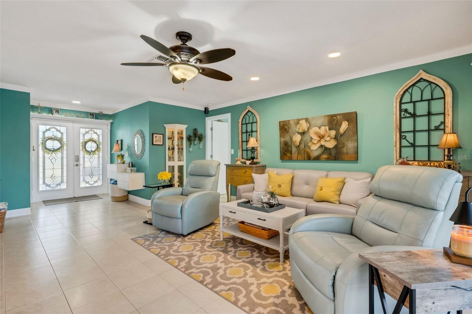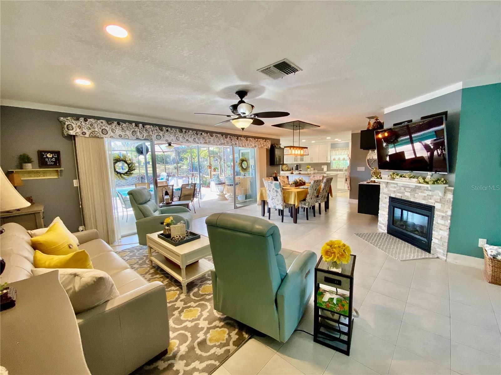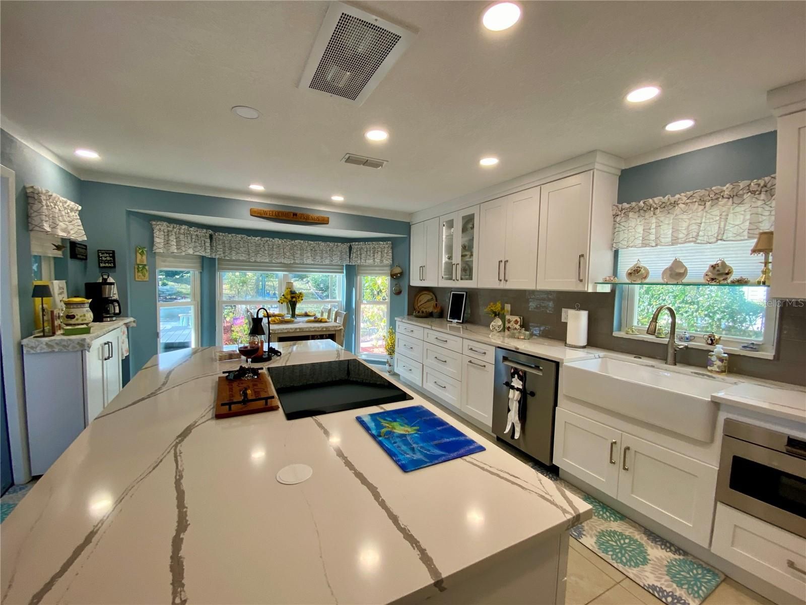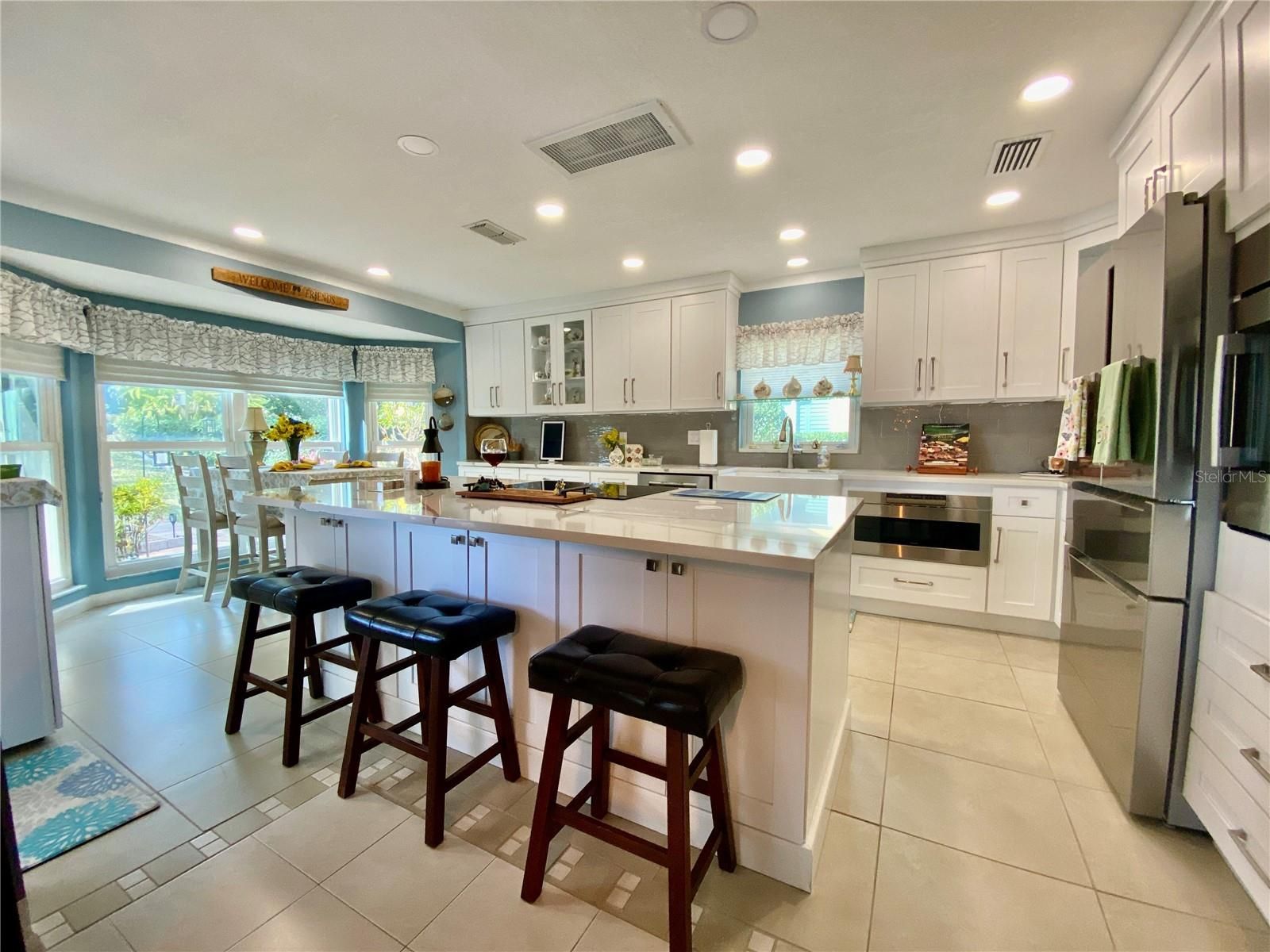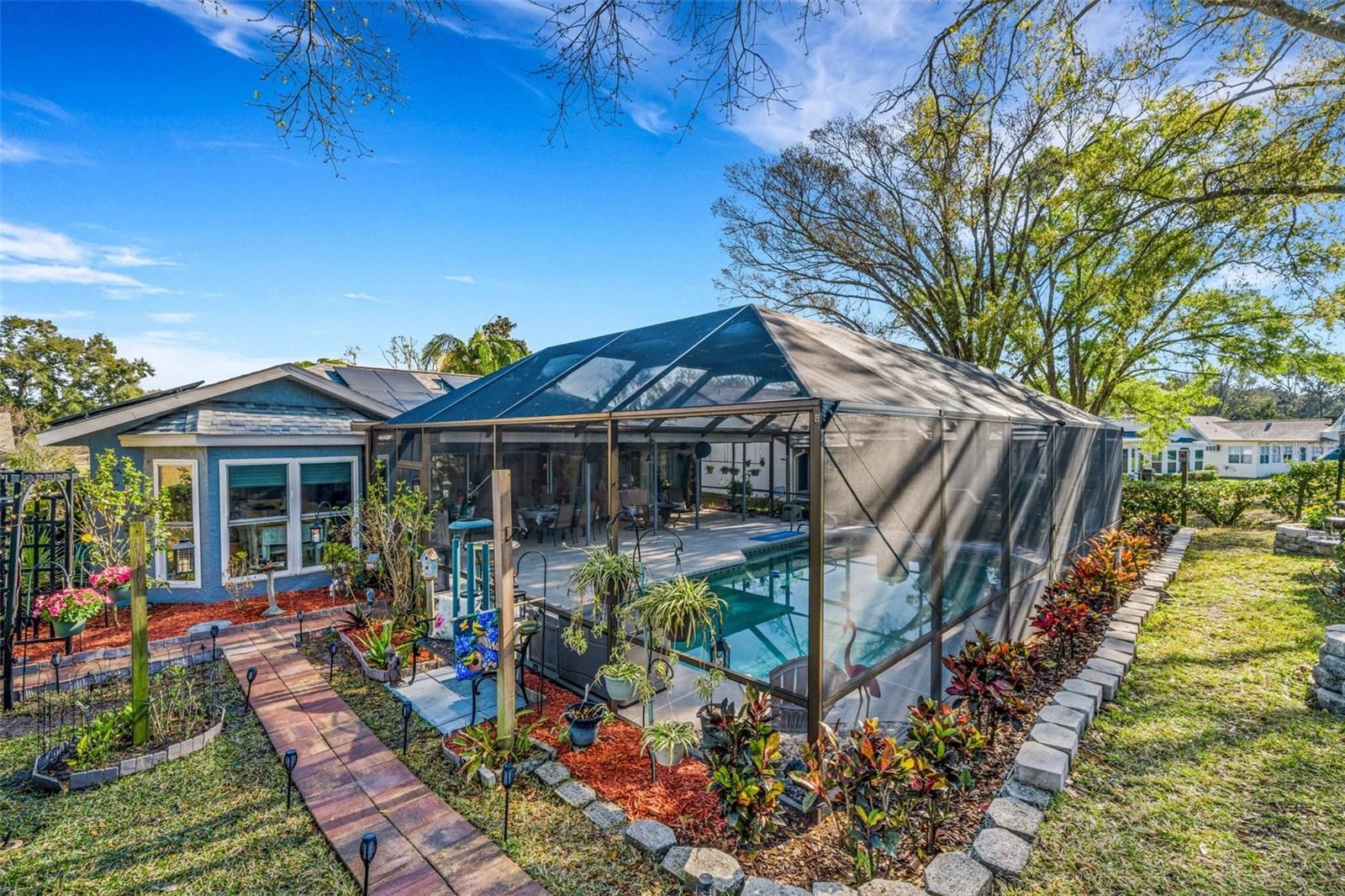 A Truly ONE of a Kind and a MUST SEE, in-person, beautifully UPDATED POOL HOME, located in a small cluster of homes on a quiet cul-de-sac in Highland Lakes on Lake Tarpon, the Best Kept Secret of Pinellas County. This 2 Bedroom SPLIT PLAN, with 2 Gorgeous Bathrooms, a Spectacular Kitchen, Inside Laundry, BIRDCAGE POOL, with a Large, Spacious Lanai, and a 2 Car Garage, has everything you've been looking for and more. Just open up the Sliding Glass Doors to the Pool Area and let the party begin! The kitchen is Open to the dining area (with access to the pool), and the dining area is open to the living room and the Pool! The Chef's dream kitchen has counter space and cabinets galore! Soft-Close drawers, QUARTZ COUNTERTOPS, ALL BOSCH APPLIANCES. The Oven is at a Convenient Height with a door that swings out. The Microwave is a handy "drawer". Hidden Electrical Outlets with USB plugs are built into the countertops, dual pull-out spice racks, a designated coffee bar, plus a Dry Bar with a wine rack and wine cooler. All lights are on dimmers for ambience. The Flow and Functionality are Fabulous! The Primary ENSUITE has been remodeled with a SOAKING TUB and WALK-IN SHOWER with RAINHEAD. House has been totally REPLUMBED. SOLAR PANELS (2022) ensure minimum power bills, HVAC (2023), ROOF (2019), WINDOWS HAVE CAVALIER HURRICANE COVERS, Electric FIREPLACE, POPCORN CEILINGS have been REMOVED with Recessed lighting, a Water Softener softens the hard Florida water, Irrigation system is on a well with a New Pump. Sadly, the neighborhood mascot "Gertie" is flying the Coop, but you'll be delighted when you come and see your splendid new home.