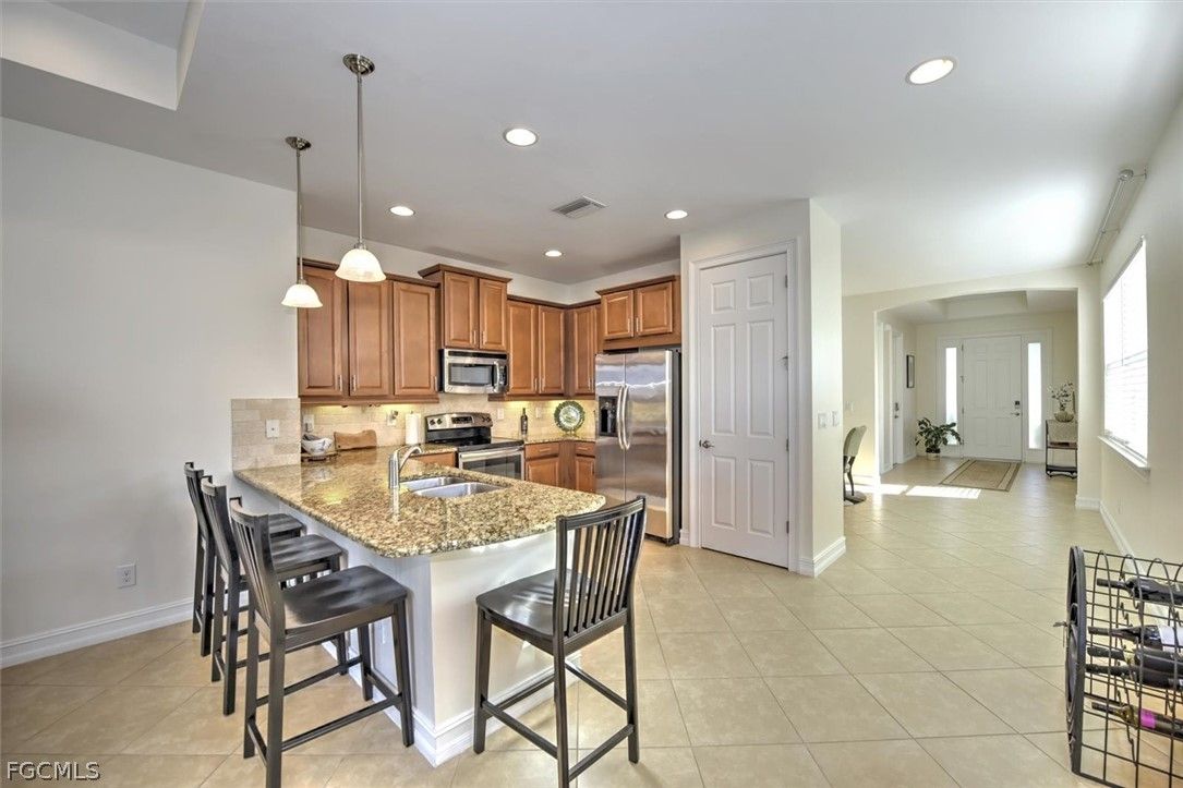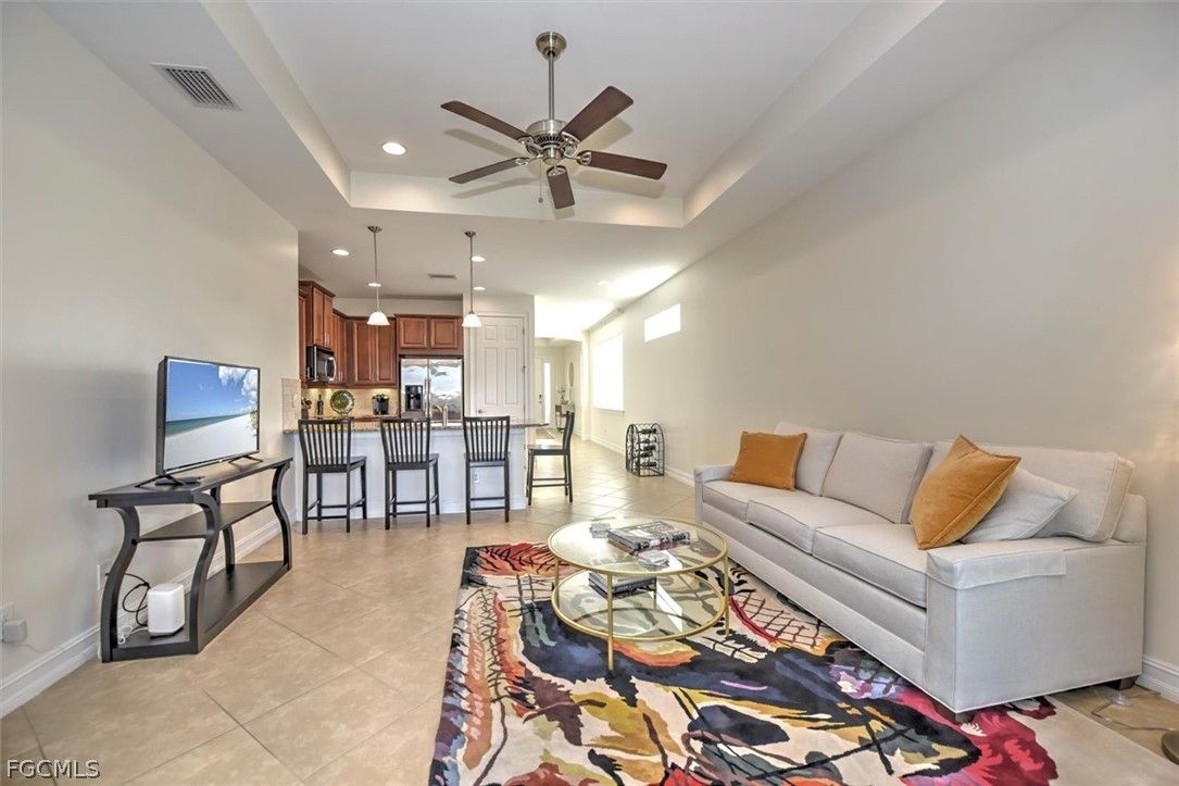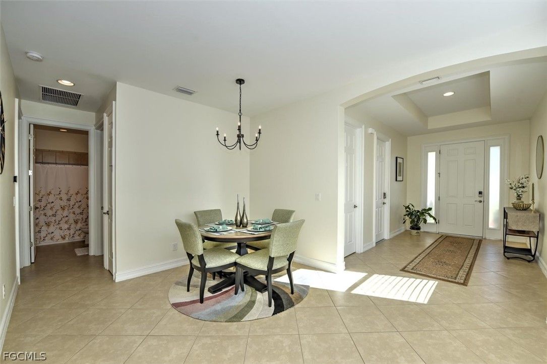 This open and bright home features high ceilings, abundant natural light, eight-foot doors, and shows like new. Recent updates include a new refrigerator, new washing machine, new blinds throughout the home, and new carpet in the primary bedroom. A recently cleaned roof and an unseen retractable front screen door add to the home’s thoughtful maintenance and comfort. The beautifully designed kitchen offers 42” staggered cabinetry with crown molding, under-cabinet lighting, granite countertops, and stainless-steel appliances — providing both style and functionality. Interior upgrades include tile set on the diagonal in the main living areas, tray ceilings in the living room and primary bedroom, upgraded lighting fixtures, and spacious daylight windows that enhance the home’s airy feel. Step out onto the patio — the perfect place to unwind while taking in stunning sunset views over the lake and golf course. The peaceful setting creates an exceptional backdrop for everyday living. The garage includes an EV charging plug for electric vehicles, adding modern convenience. Stay connected with integrated Smart Home features including a Ring doorbell, security camera, and smart locks on both the front and garage doors. Residents of Magnolia Landing enjoy outstanding amenities including a resort-style pool, lap pool, fitness center, pickleball, bocce ball, and shuffleboard courts. HOA dues cover HD cable, landscaping, irrigation, on-site management, and more — providing convenient, low-maintenance living. Optional golf memberships are available for the 18-hole Championship course, golf shop, and on-site restaurant. Ideally located just a short drive to shopping, dining, downtown Fort Myers, and Punta Gorda.