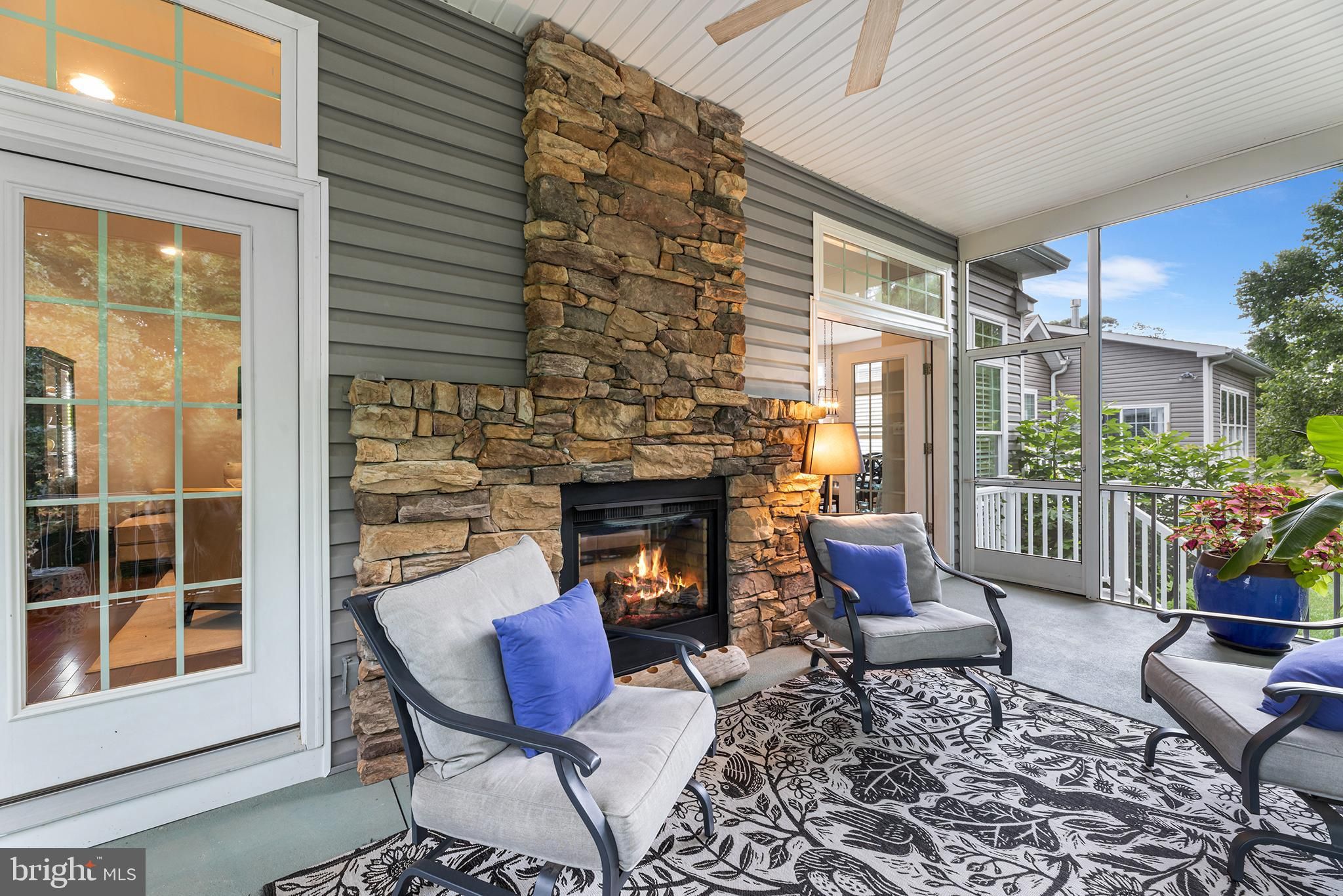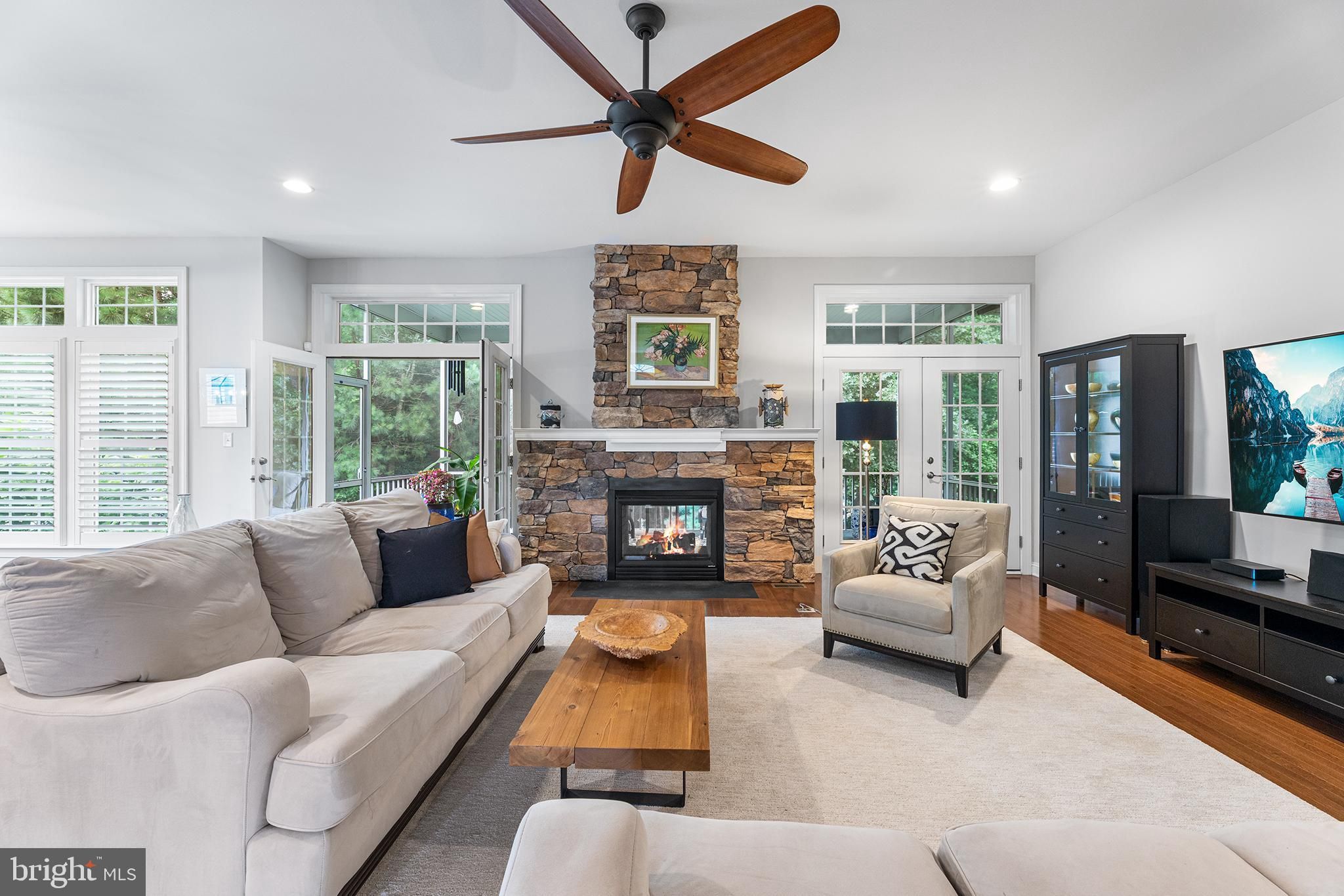 Beautifully maintained and thoughtfully designed, this 2-3 bedroom detached home offers a spacious and modern open floorplan ideal for comfortable living and entertaining. As you enter the home there is a flex room that can be used as a den, office or even a bedroom (all you would need is a wardrobe for clothes!). Hardwood floors and plantation shutters run throughout, adding warmth and character to every room. The Great Room features a striking dual-sided fireplace shared with the beautiful screened porch—perfect for cozy gatherings in any season. The custom eat-in kitchen is a chef’s delight, complete with granite countertops, ample cabinetry, stainless steel appliances, and a built-in wine fridge. The expansive main level includes a huge owner’s suite with a luxurious ensuite bath and walk-in closet, a generously sized secondary bedroom—all designed for main-floor convenience. The finished walk-out lower level has a thoughtfully crafted, grand guest suite with a full bath, reminiscent of a NYC loft! Whatever the use, it greatly extends your living space with bed area adorned with curtains for privacy, a large living/recreation area, kitchenette, workshop, and abundant storage. Outside, the home sits on a premium lot backing to mature woods, offering privacy and peaceful views. Located in the active Bay Crossing 55+ community, residents enjoy exceptional amenities including an outdoor pool, community center, fitness center, tennis courts, walking trails, and a full calendar of social events. Lawn Maintenance, Common Area Maintenance, and Trash service is also included. This home offers the perfect combination of elegance, functionality, and low-maintenance living in a truly desirable setting.
