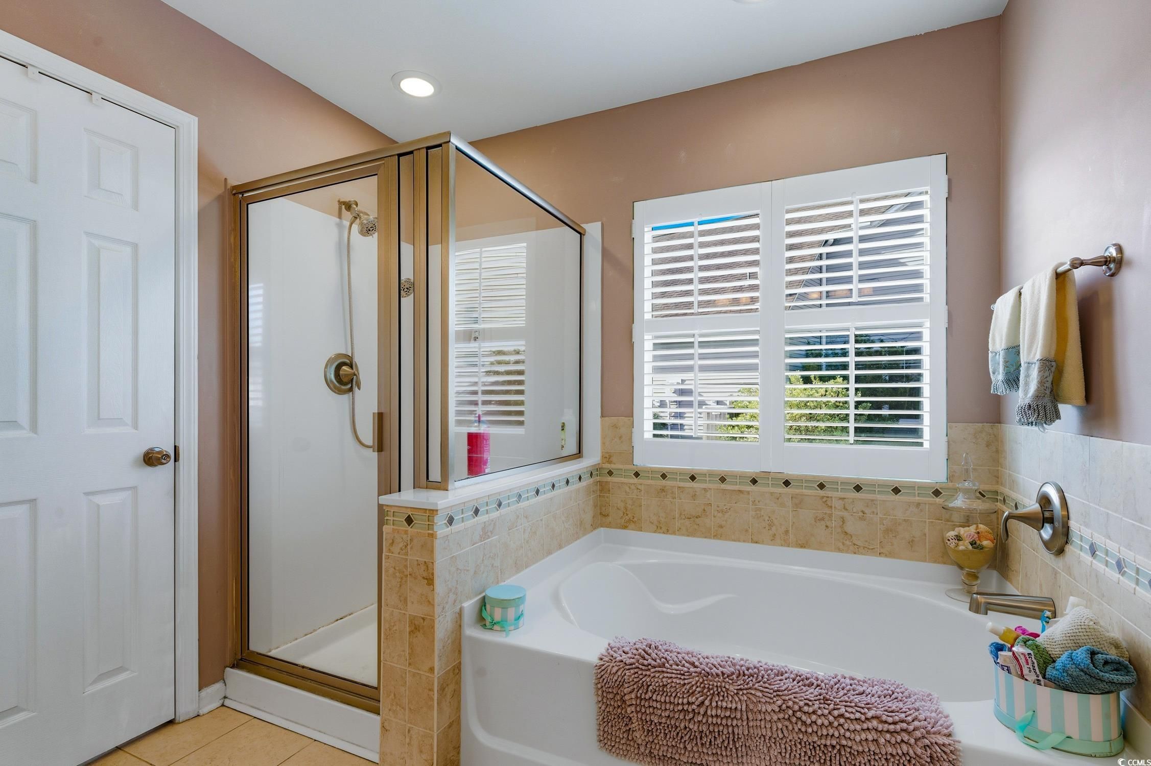 - Ceiling Fan(s), Dual Sinks, Garden Tub/Roman Tub, Main Level Primary, Split Bedrooms, Separate Shower, Vanity, Vaulted Ceiling(s), Walk-In Closet(s), Window Treatments, Breakfast Bar, Bedroom on Main Level, Breakfast Area, Kitchen Island, Solid Surface Counters