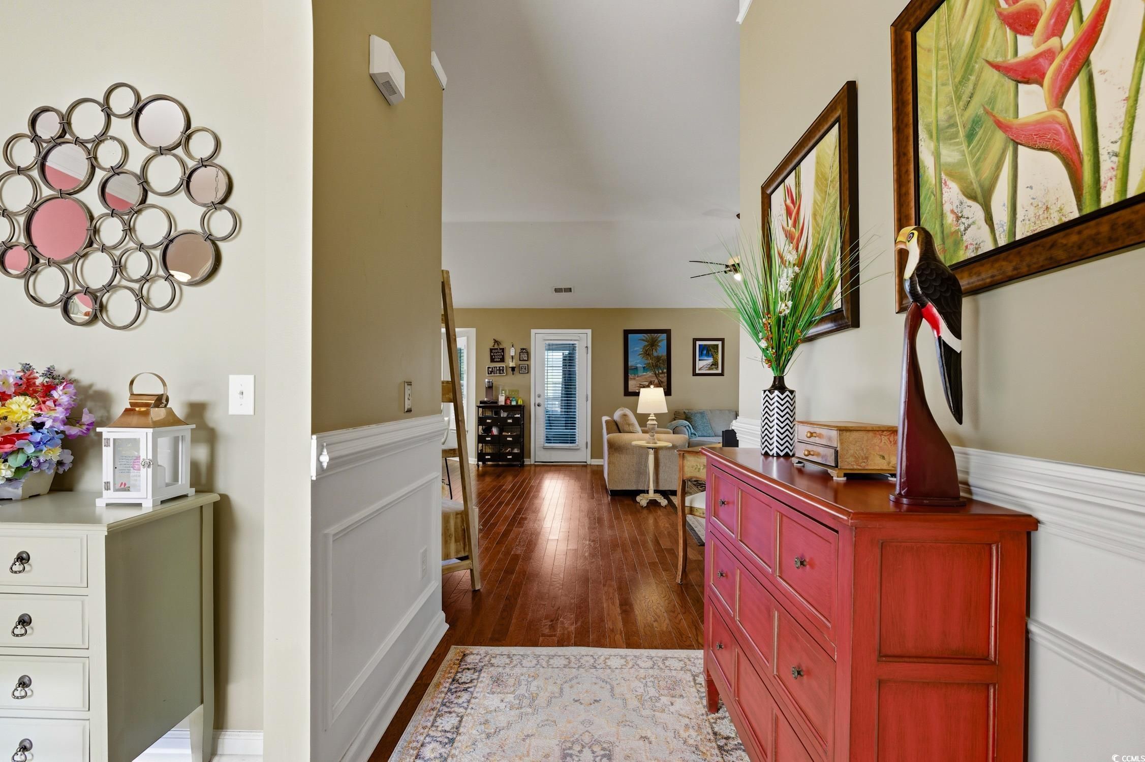 This 3 bed, 2 bath home in the highly sought after community of Berkshire Forest is warm and welcoming from the moment you enter. Pretty wood floors flow throughout the living areas and wainscoting, vaulted ceilings and plantation shutters add that special touch. The open concept kitchen has gorgeous quartz countertops, lovely backsplash, plenty of counter space, a large sink and a walk-in pantry. All rooms feature a ceiling fan for your comfort. The master bedroom boasts vaulted ceilings, a spacious master bath with dual vanity, tub, walk-in shower and large walk-in closet. There is another closet in the master bedroom for added storage. Enjoy the outdoors in the 3-season room with tiled floors. The roof was replaced in 2022 and new gutters were installed. Berkshire amenities are second to none and include a beautiful clubhouse with huge pool and lazy river, hot tub, grills, kitchen, fitness center, tennis, basketball and bocce ball courts, playground and picnic areas. Enjoy the beauty of the 32-acre lake with dock and gazebo and the fresh air on the walking trails. Carolina Forest has an award winning school district and is minutes away from all that Myrtle Beach has to offer. Don’t delay, schedule your showing today!