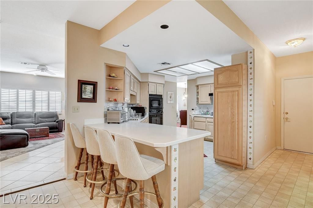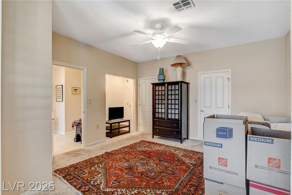 Beautiful custom home located in the desirable 55+ Promenade at The Meadows community! This well-designed 3-bedroom, 2-bath home offers an inviting open floor plan accented by large tile flooring. The spacious kitchen flows seamlessly into the living area and features custom cabinetry, a stylish backsplash, abundant storage, an eat-at breakfast bar, & a cozy dining nook. This home offers 2 generously sized primary suites. The main primary bedroom includes a large en-suite bath with dual sinks and soaking tub. The second primary suite features its own sitting area and an expansive walk-in closet. The additional bedroom is thoughtfully designed with a wall of custom bookshelves and a built-in twin bed-perfect for guests. The massive backyard provides endless possibilities, from gardening to outdoor entertaining, all while enjoying peaceful city views! Conveniently located near shopping, dining, and freeway access, this home combines comfort, convenience, & community living at its best.