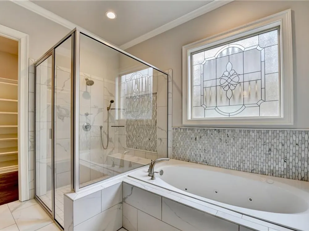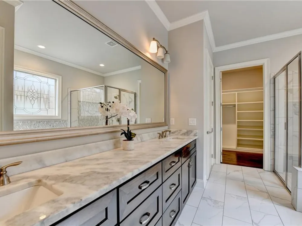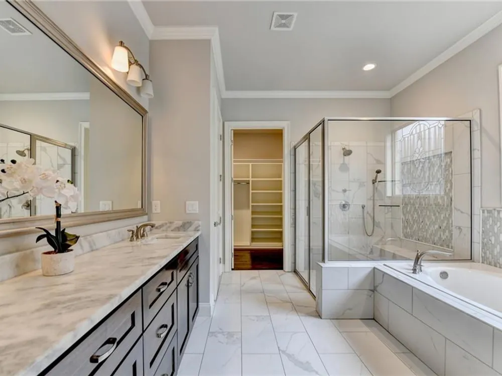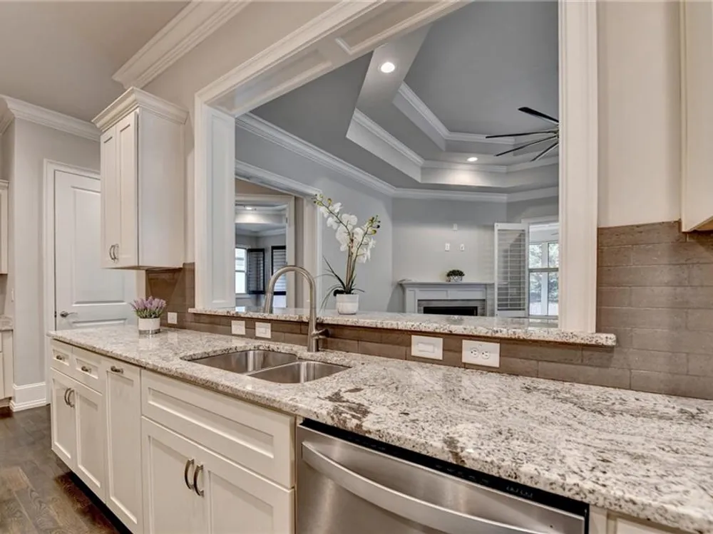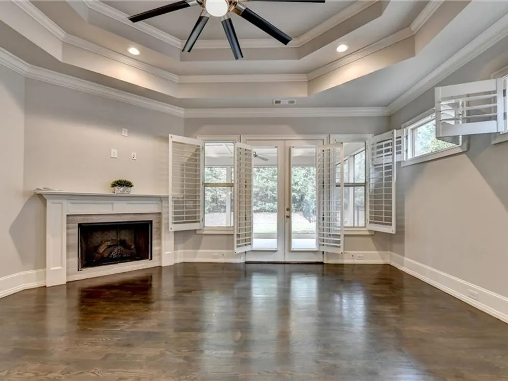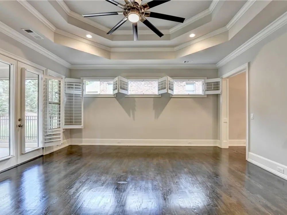 - Crown Molding, Double Vanity, Entrance Foyer, Tray Ceiling(s), Walk-In Closet(s), Insulated Windows, Plantation Shutters, Separate/Formal Dining Room, Family Room, Kitchen, Laundry Facility, Primary Bathroom, Primary Bedroom, Sunroom