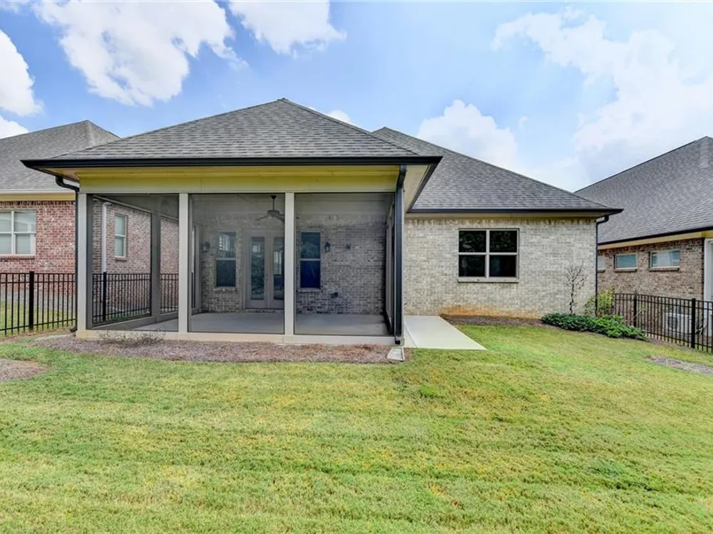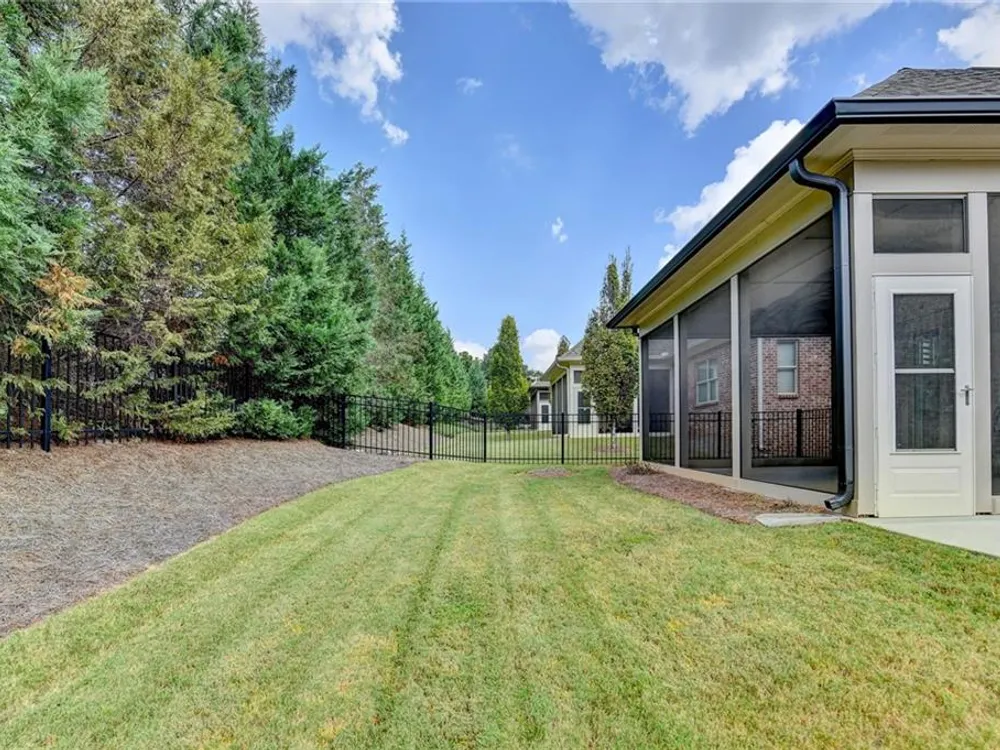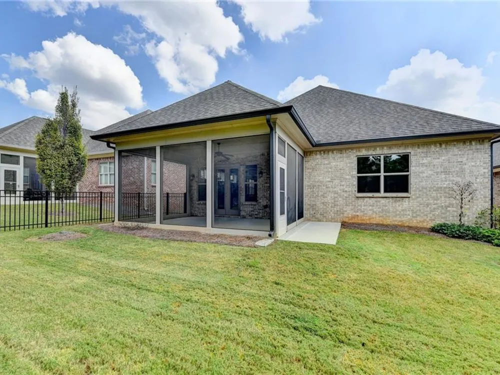 Rare to find this gorgeous 4 sided brick with stone house in a gated beautifully maintained Active Adult 55+ community in prime Suwanee location. Better than New!!! Three bedrooms with three full baths. This luxury house has a 10’ ceiling, 8’ doors, high-end fixtures, real hardwood floors throughout, gourmet kitchen with white cabinets, stone countertops, plantation shutters, screened sunroom, laundry room with a sink and extra closet, and fenced backyard with a beautiful view. Low maintenance home with an open floor plan. Open view from kitchen to family room. Family room and Master with a trey ceiling, and built in shelves in the master closet. Freshly painted interior and stained wood floor. Close to Suwanee City Hall, parks, walking trails, shopping, schools, restaurants, groceries and major highways. Don’t miss this great opportunity!