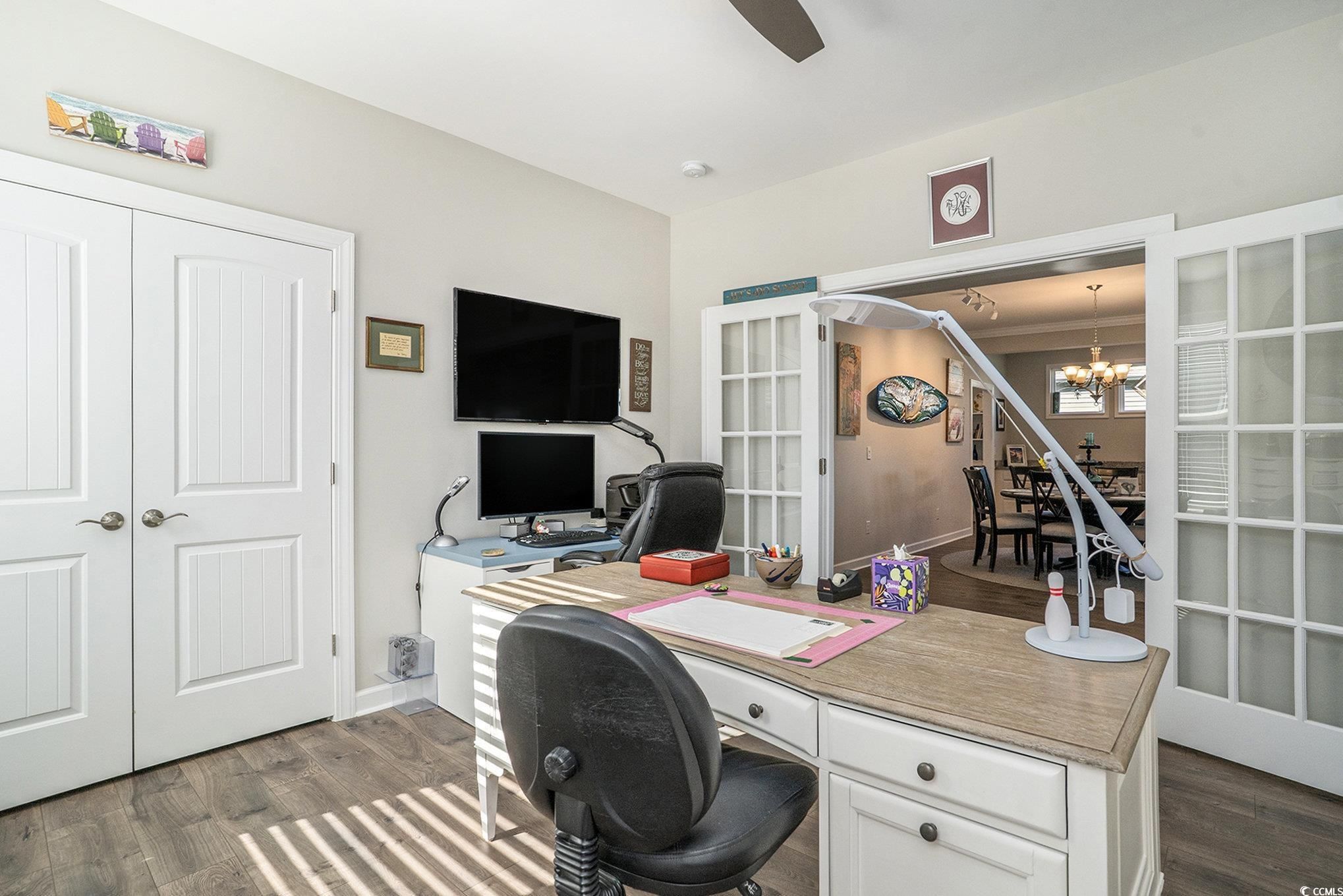 Price Reduction!!Discover the highly sought-after Boardwalk floor plan in the vibrant Bridgewater subdivision. Bridgewater's exceptional amenities include a fitness center, resort-style pool, pickleball and bocce courts, walking trail, kayak launch/dock and a full calendar of social events. Such as, music on the lawn, food trucks, day trips, golfing, game nights and much more. This spacious 4-bedroom, 3-bath home offers a perfect blend of comfort and luxury, featuring upgraded kitchen cabinets, pantry, and custom closets by "Closets by Design". Plus this home features a HVAC air scrubber that removes pollutants and contaminates from the air; wonderful for any homeowners' with allergies! Inside, the spacious living area is anchored by a stunning stone 72" recessed Smart Touch electric fireplace--ideal for cozy nights, enhanced by surround sound system. The primary bathroom showcases elegant crown molding and a marble shower. Outside, the beautifully landscaped yard features curb-scaping and river rock for low-maintenance charm. Unwind on the extended patio as you take in breathtaking sunsets and serene pond views. This home is packed with thoughtful upgrades. You truly must see it to appreciate everything this home has to offer.