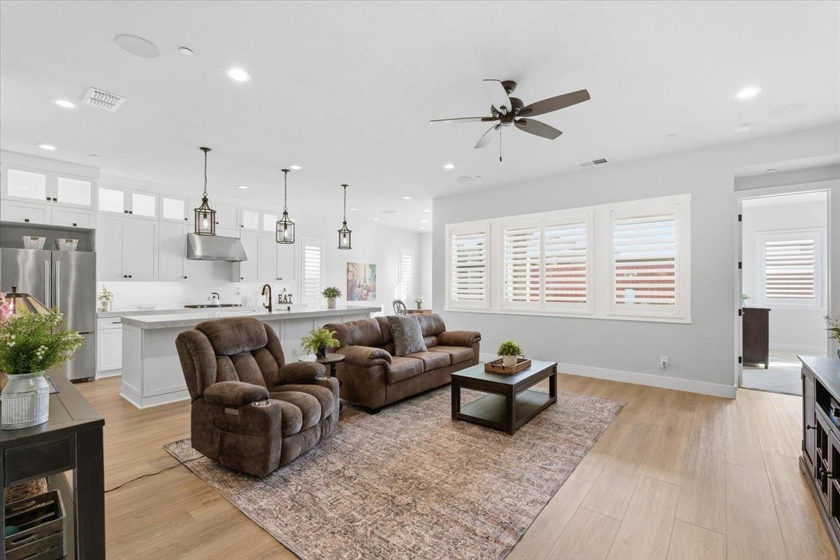Over $240,000 in builder upgrades and it shows! This isn't a standard home in Regency at Folsom Ranch. Built by Toll Brothers, this residence was heavily upgraded from the start, creating a level of finish and detail rarely seen in the community. High ceilings and expansive windows bring in natural light, while the shutters and upgraded LVP flooring add a clean, modern edge. The kitchen was designed to impress quartz countertops, upgraded cabinetry, premium appliances, and a large island that naturally becomes the gathering space. A secondary bedroom plus a flexible den give you options for guests, hobbies, or a dedicated office. Built-in speakers, leased solar, and thoughtful energy features add everyday practicality to the elevated design. The backyard is professionally finished and low maintenance ideal for relaxed evenings or entertaining. And with the clubhouse just steps away, you're positioned to fully enjoy the gated lifestyle, pools, fitness center, and active social scene that make Regency so desirable. This is the upgraded version refined, efficient, and truly move-in ready.