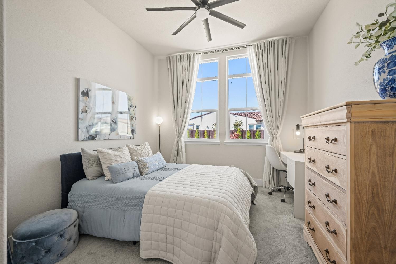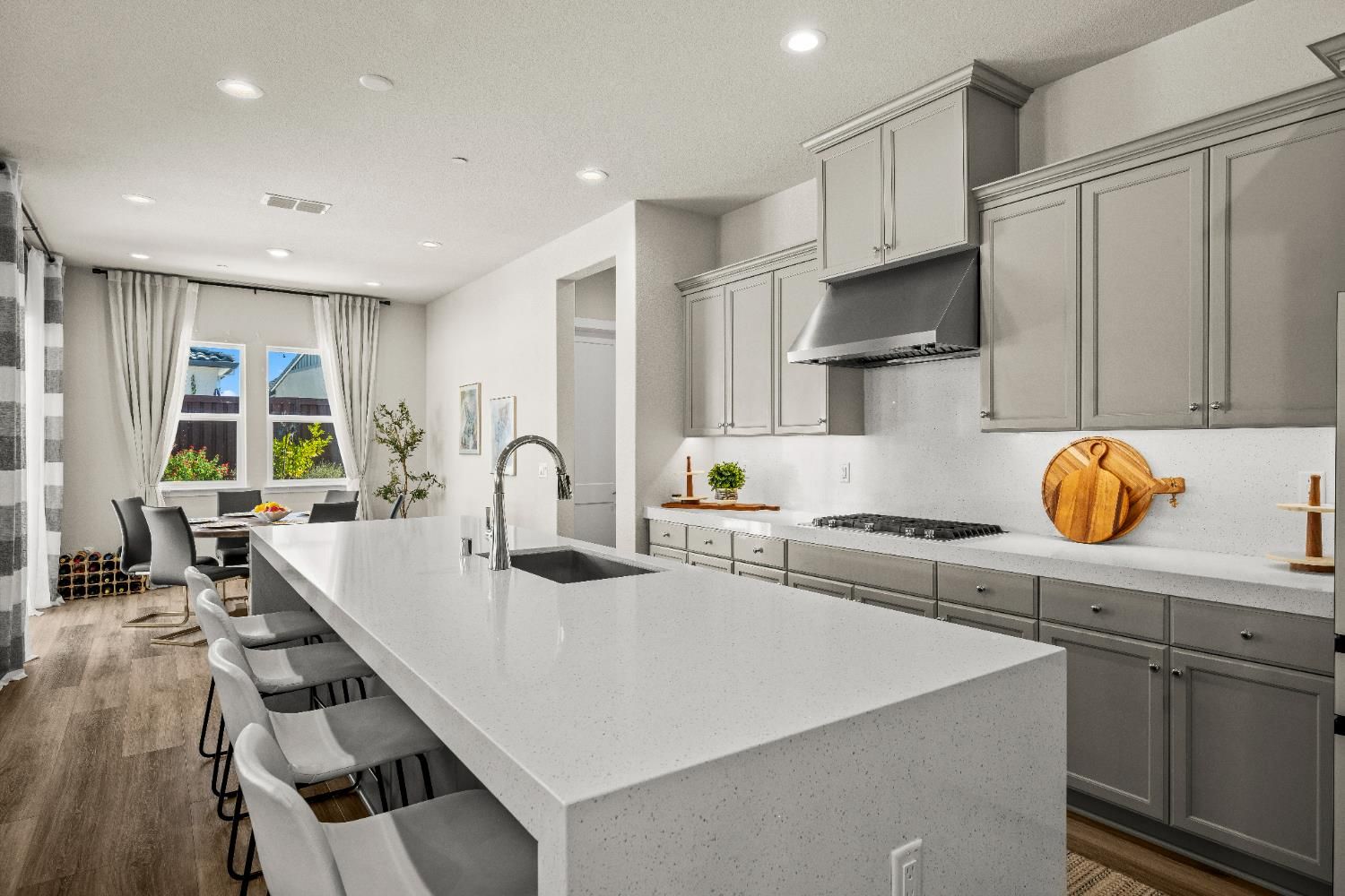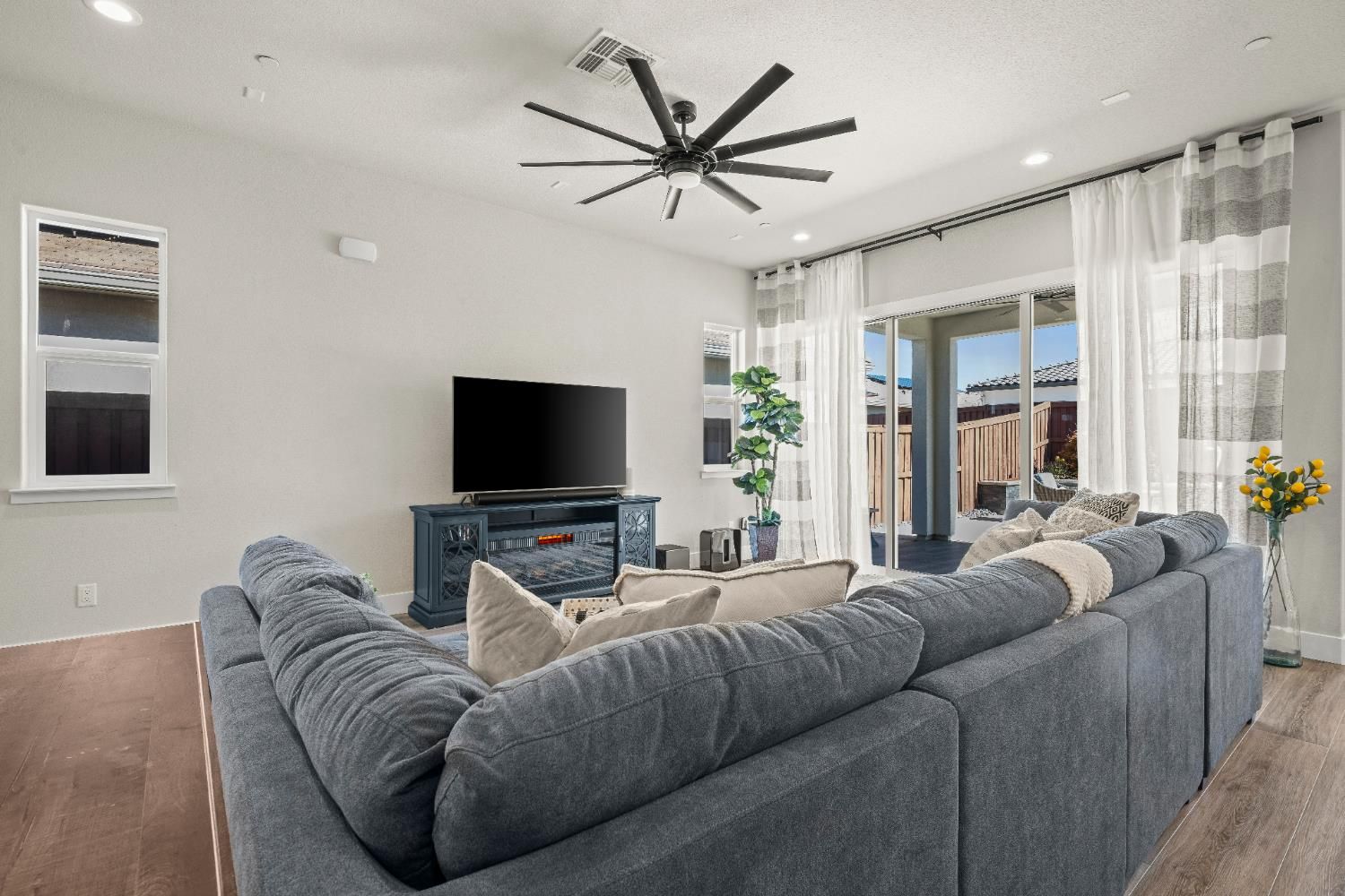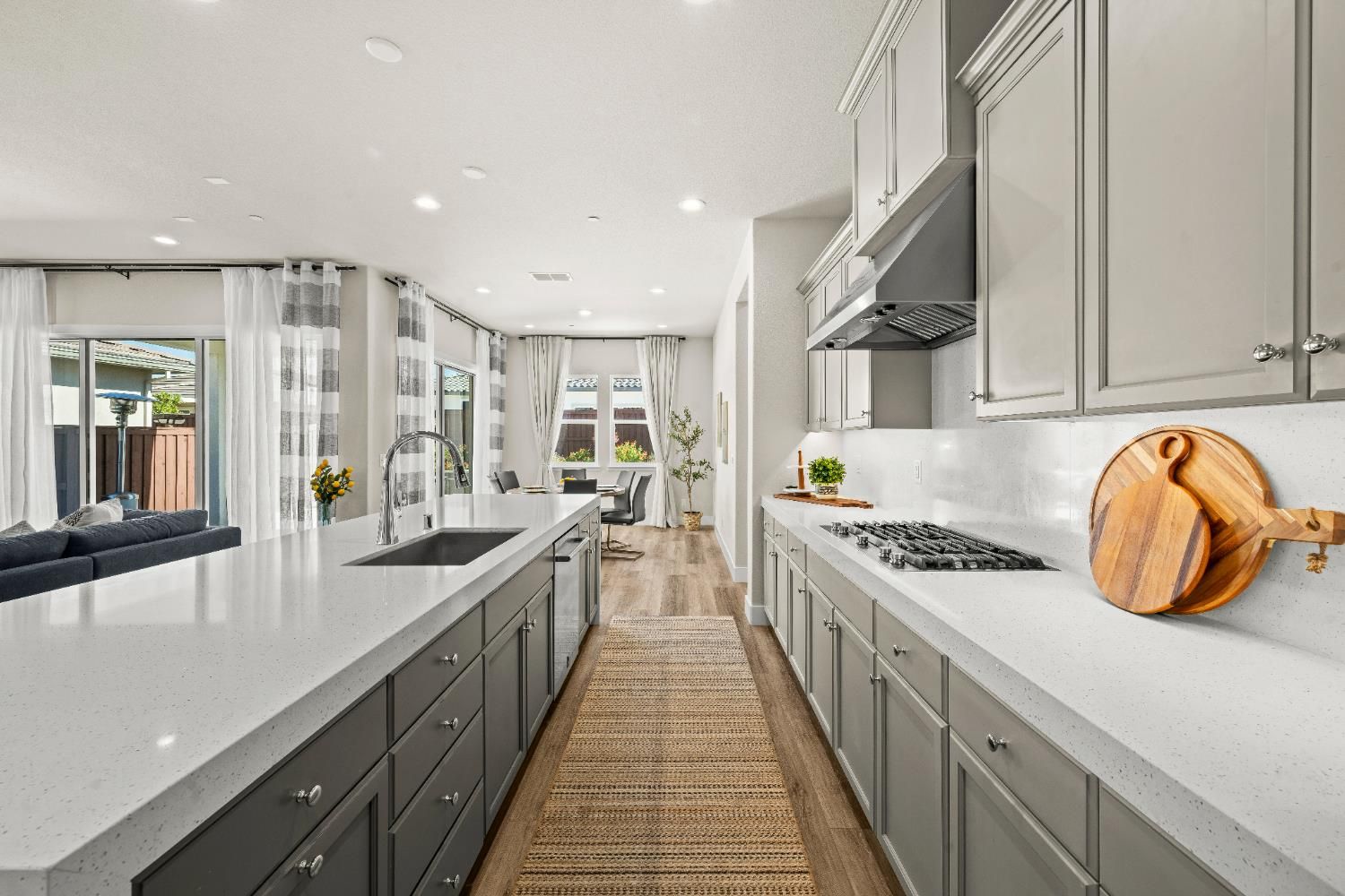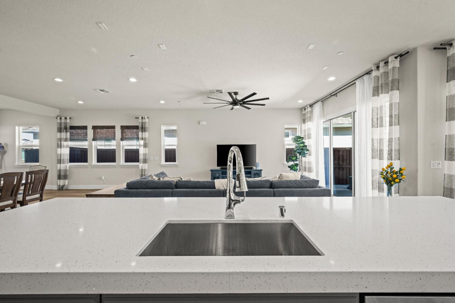 Welcome to Regency at Folsom Ranch a luxurious 55+ Active Adult Community offering resort-style living at its finest. This stunning single story home, built in 2022, features 1,876 sqft of thoughtfully designed space with an open-concept floor plan perfect for entertaining. The gourmet kitchen showcases sleek quartz countertops, stainless steel appliances, and a spacious island with sink that flows seamlessly into the dining and living areas. The formal dining area can easily be converted to a flex room, office or 3rd bedroom. Enjoy luxury LVP flooring, a 2 car garage with epoxy floor and OWNED SOLAR for energy efficiency. Huge stacked glass doors open up to the covered california room adding another area to entertain. Good sized backyard beautifully landscaped, offering low maintenance with artificial turf, seating areas and large side yards for gardening, dog run or extra storage. Regency offers luxury living with an 18,000 sqft resort with amenities including community events, pickleball, bocce, swimming pools, firepits, gym and two dog parks. Experience comfort, style and vibrant living in one of Folsom's premier gated communities!