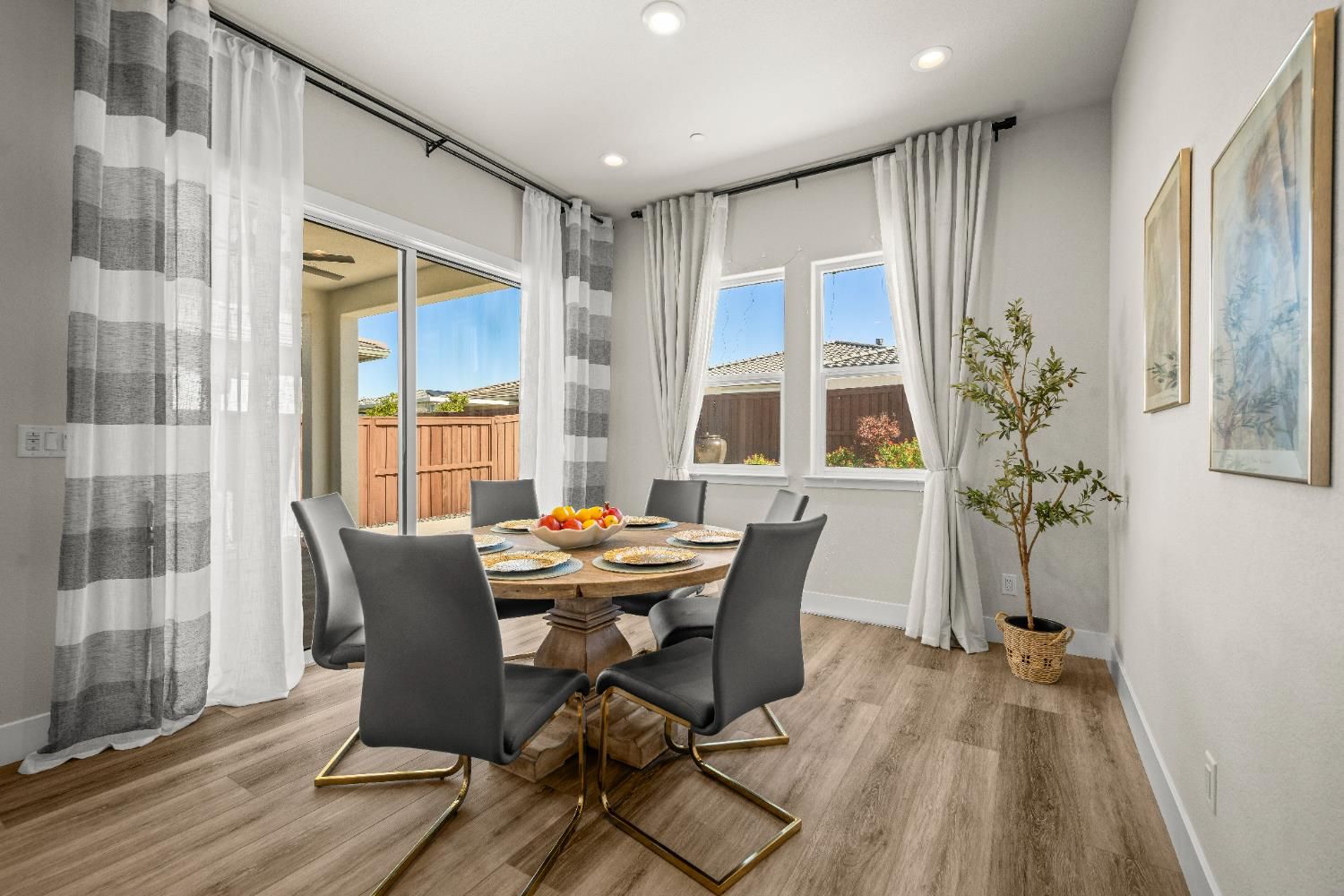 Welcome to Regency at Folsom Ranch, a luxurious 55+ active adult community offering resort-style living at its finest! This stunning single-story home, built in 2022, features 1,876 sqft of thoughtfully designed space with an open-concept floor plan perfect for entertaining. The gourmet kitchen showcases sleek quartz countertops, stainless steel appliances, and a spacious island that flows seamlessly into the dining and living areas. Enjoy beautiful luxury LVP flooring , a 2-car garage with epoxy flooring, and energy-efficient owned solar. The backyard has been tastefully landscaped with a patio area and artificial turf providing low maintenance and offering ample space for relaxing or gardening. At Regency, enjoy luxury living with an 18,000 sqft resort with amenities including community events, pickleball, bocce, swimming pools, firepits, gym, and two dog parks. Experience comfort, style, and vibrant living in one of Folsom's premier gated communities!