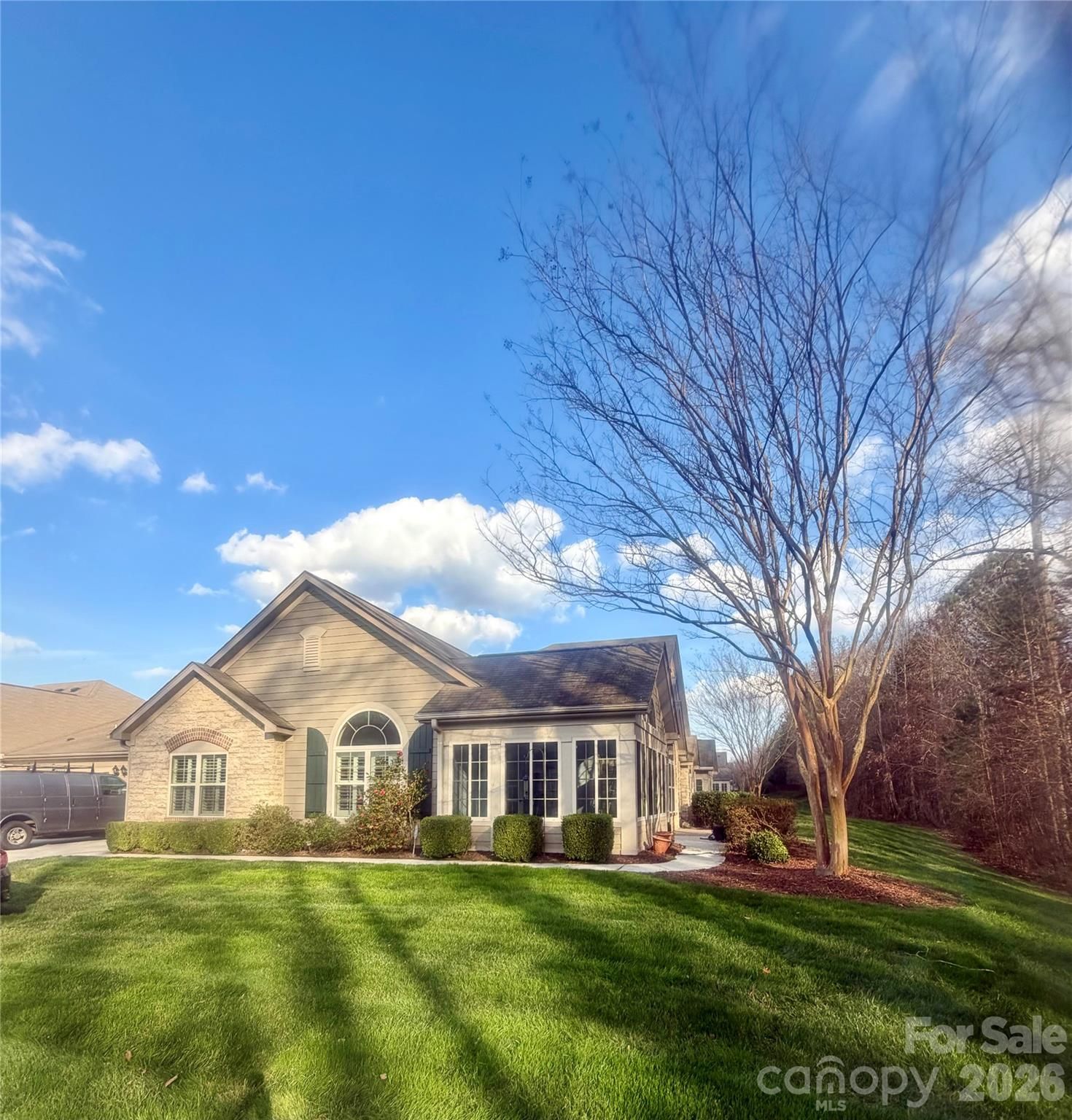Welcome to refined, effortless living in the sought-after Polo Club at Weddington, a beautifully maintained community in the heart of Matthews. This elegant one-story patio garden home with an attached 2- car garage is nestled into the back of the neighborhood in a cul-de-sac backing up to natural woods and plush grass/landscaping, giving you privacy and peace! This home offers approximately 1,900 square feet of thoughtfully designed living space where comfort, style, and ease of living come together seamlessly. Step inside to discover a bright light-filled open floor plan enhanced by plantation shutters, BRAND new carpet in bedrooms and office/3rd bedroom, and freshly professionally painted throughout creating a fresh, crisp, and inviting atmosphere. The spacious great room serves as the heart of the home, featuring a warm gas log fireplace and effortless flow into the expansive sunroom, an ideal retreat for morning coffee, reading, or quiet afternoons. The huge sunroom overlooks the private back with natural woods and maintained plush grass and landscaping. The well-appointed kitchen offers upgraded 42-inch cabinetry, a flat island perfect for gathering and a spacious pantry. This versatile floor plan features two generous bedrooms and two full baths, along with a private office that can easily serve as a third bedroom or guest suite. Residents of Polo Club at Weddington enjoy a vibrant, amenity-rich lifestyle with access to a clubhouse, fitness center, outdoor pool, picnic areas, and recreation spaces, while lawn maintenance is included, allowing you to focus on enjoying life rather than maintaining it. Nature lovers will appreciate being just moments from the scenic trails, peaceful lake, and tennis courts at Colonel Francis Beatty Park, bringing outdoor beauty into everyday living. The home is also conveniently located minutes from upscale shopping and dining at Waverly, the Brace Family YMCA, and the vibrant charm of the town of Matthews, with easy access to the new I-485 interchange for seamless connectivity. While the community is designed with a 55+ lifestyle in mind, residency is open to all ages offering a welcoming environment where neighbors connect, friendships flourish, and everyday living feels effortlessly elevated. Washer & dryer included as well as 2 refrigerators, one in the kitchen and the garage. Don't miss this beauty!