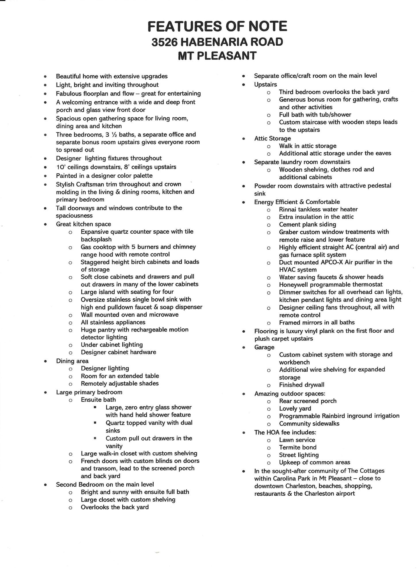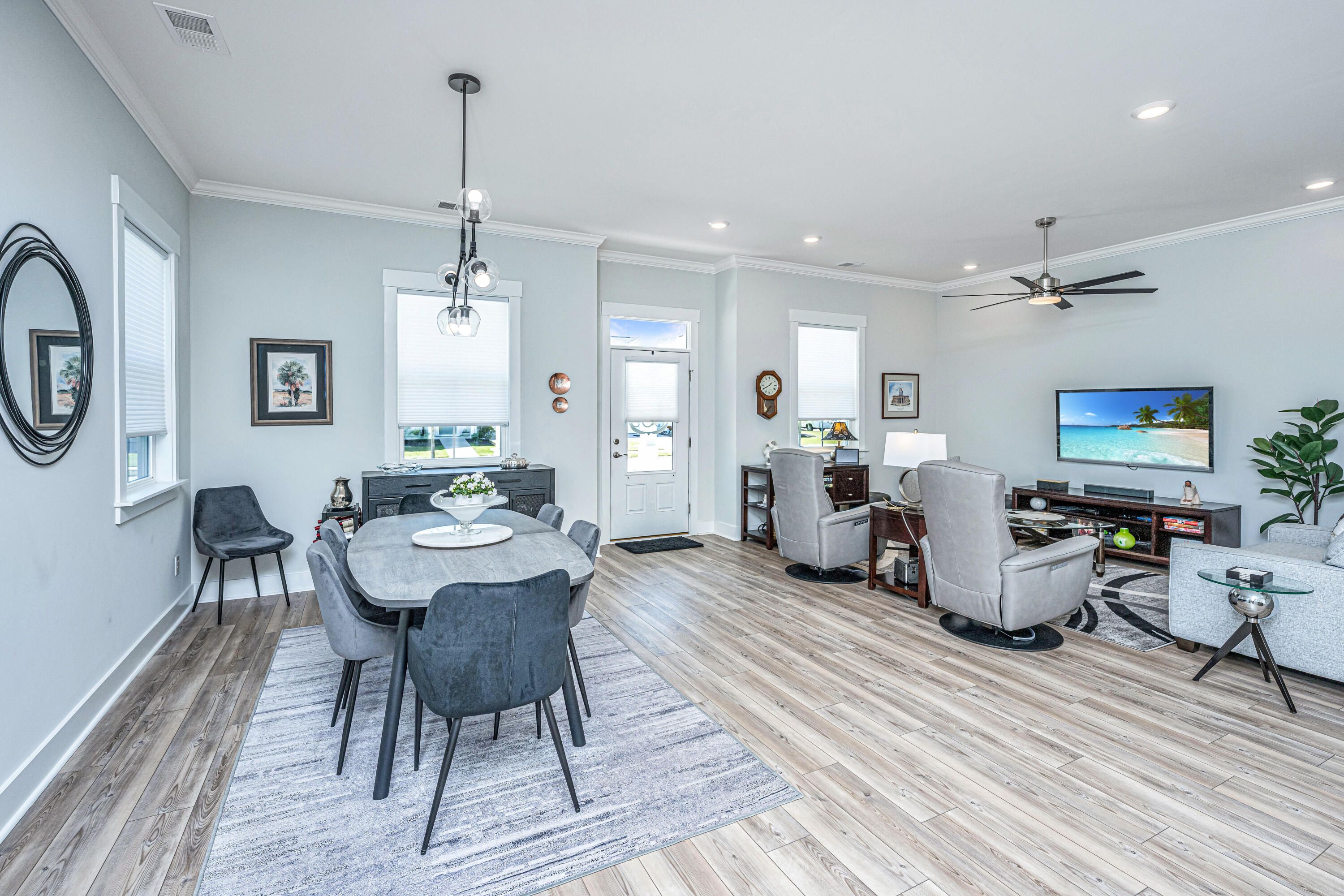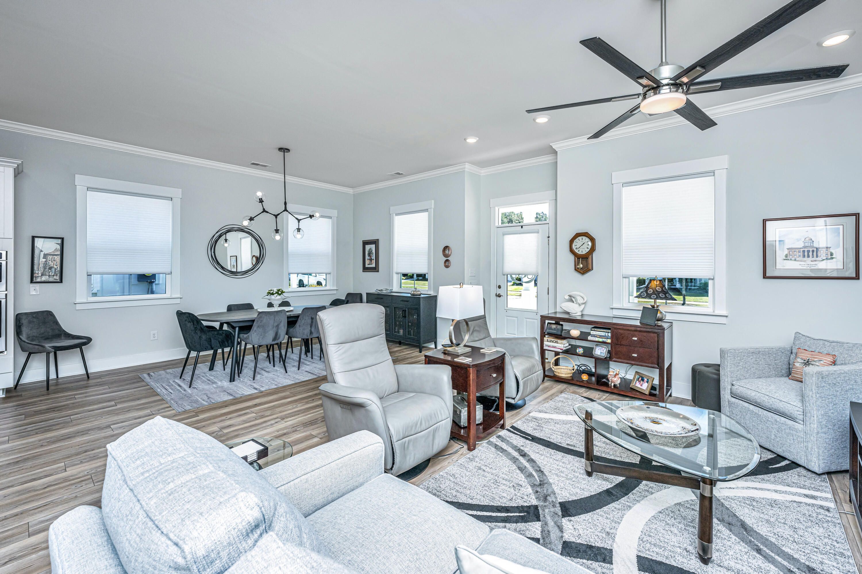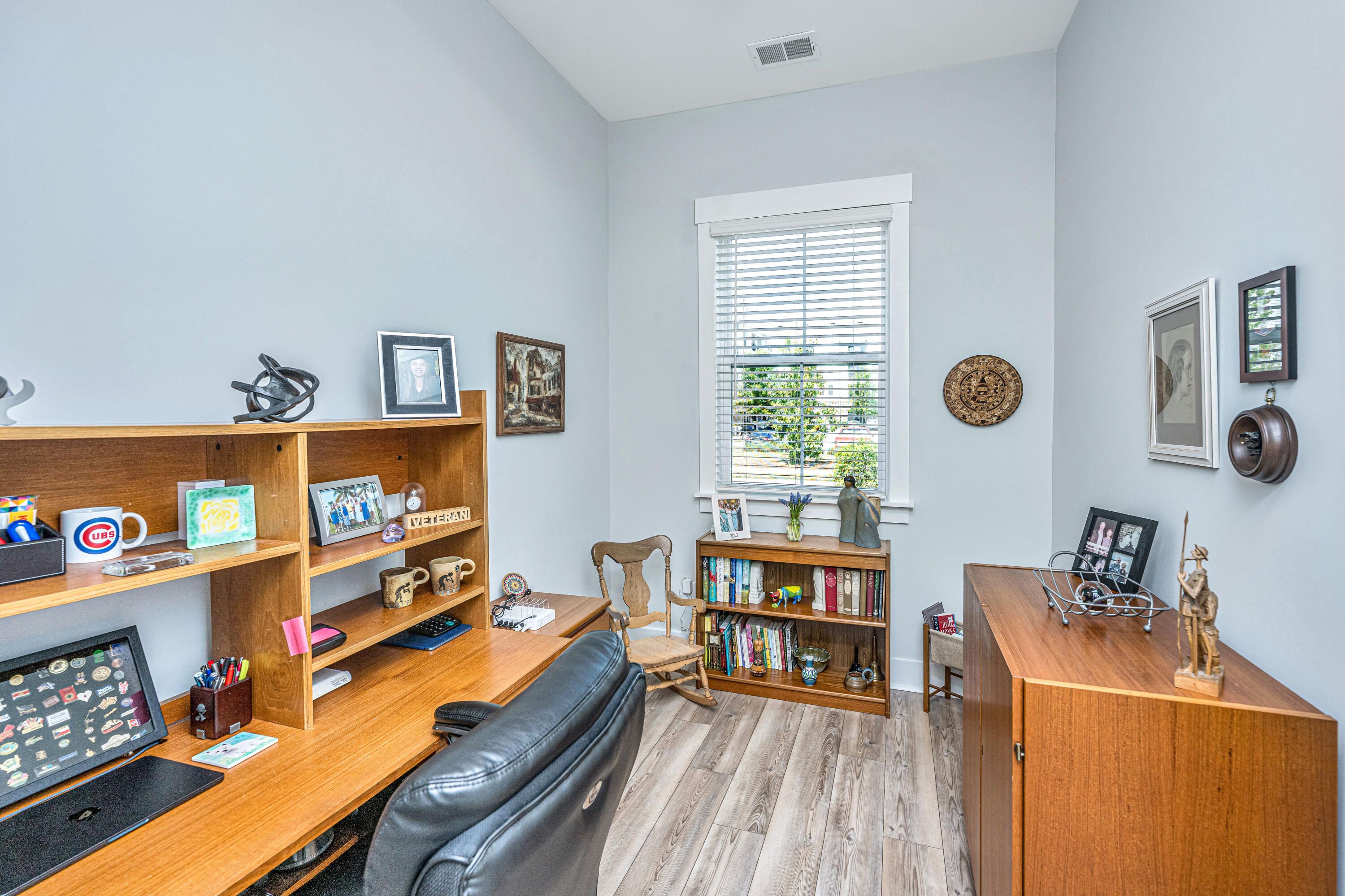 Beautiful home with extensive upgrades. Light, bright and inviting throughout. An exceptional, model-like home with a fabulous floorplan. Great for entertaining and for every aspect of your life. Newly built in 2022. Three bedrooms, 3 1/2 baths, a separate office/craft room on the main level and full bonus room/loft upstairs gives everyone room to spread out. 10' ceilings downstairs, 8' ceilings upstairs, tall doors and plentiful windows add to the spaciousness. Expansive open concept main floor has a wonderful flow, connecting the kitchen, living room, and dining space. The kitchen is a chef's delight with expansive quartz counter space and tile backsplash, a gas cooktop with 5 burners and chimney range hood, an oversize stainless single bowl sink with high end pull down faucet,wall mounted oven and microwave. Loads of storage in the kitchen: staggered height birch cabinets with soft close cabinets and drawers, and under cabinet lighting, pull out drawers in many of the lower cabinets and a large pantry with motion detector lighting. A large island with seating for 4 gives you even more space for prep, serving and entertaining. Gleaming and easy care luxury vinyl plank floors grace the first floor and plush carpeting graces the second floor. Stylish Craftsman trim throughout with crown molding in the living and dining rooms, kitchen and primary bedroom. Designer lighting fixtures, ceiling fans and window shades, with adjustable lighting levels and remote controls, and a designer color palette add to the style. A powder room and laundry room complete the main level. The substantial primary suite on the main level overlooks the screened porch and includes a tray ceiling and large walk-in closet with custom shelving. The ensuite bath features a quartz topped vanity with custom pull out drawers, dual rectangular sinks and a large zero entry glass shower. French doors with custom blinds lead to the screened porch and back yard. The second bedroom on the main level is bright and sunny with an ensuite full bath and large closet with custom shelving. A custom staircase with wooden steps leads to the second floor. Upstairs there is a large and bright loft/bonus room, a third bedroom, full bath and an amazing walk-in attic. Many features add to the energy efficiency and comfort of the home: A gas tankless water heater, extra insulation in the attic, a highly efficient straight AC (central air) and gas furnace split system with duct mounted air purifier and programmable thermostat, and water saving faucets and shower heads. The outdoor spaces are amazing with a wide, welcoming front porch, a lovely rear screened porch, programmable Rainbird inground irrigation and beautiful landscaping. The garage includes a custom cabinet system with storage and a workbench, additional shelving for expanded storage and finished drywall. In the sought-after community of The Cottages within Carolina Park in Mt Pleasant. You're close to downtown Charleston, the beaches, shopping and restaurants and the Charleston airport. This home is an amazing find!