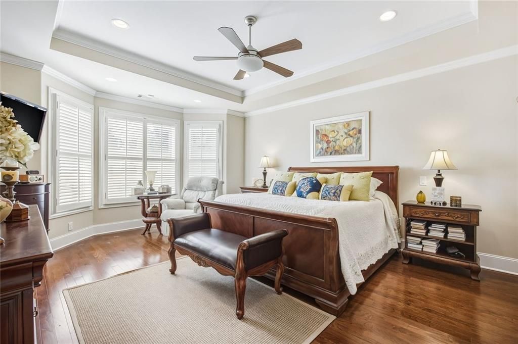 - Bookcases, Crown Molding, Double Vanity, Dry Bar, Entrance Foyer, His and Hers Closets, Recessed Lighting, Tray Ceiling(s), Walk-In Closet(s), Dual Pane Window(s), Insulated Windows, Plantation Shutters, Home Office