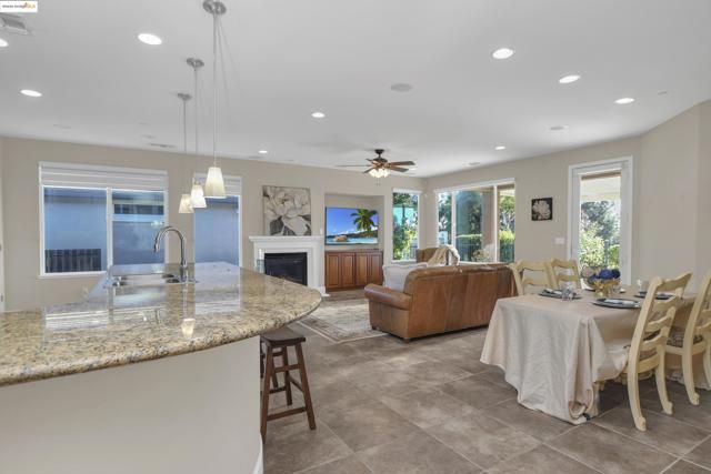 Stunning Home in the desirable Trilogy 55+ Community of Rio Vista. Tucked at the end of a cut-de-sac, this location sits close to clubhouse - convenient for easy walks while remaining separate enough to avoid parking congestion. Enjoy a premium lot featuring an iron lanai-covered, fenced backyard with sweeping golf course views from three directions. Inside, you'll find beautiful tile floors throughout, a dedicated office off the primary bedroom and an upgraded kitchen. Pre-paid energy saving solar lease until 2034. Move-in Ready Beauty in a must see setting!!