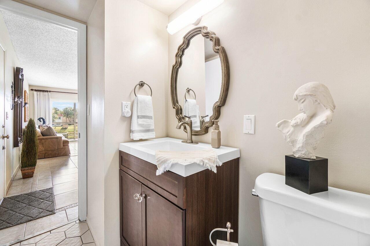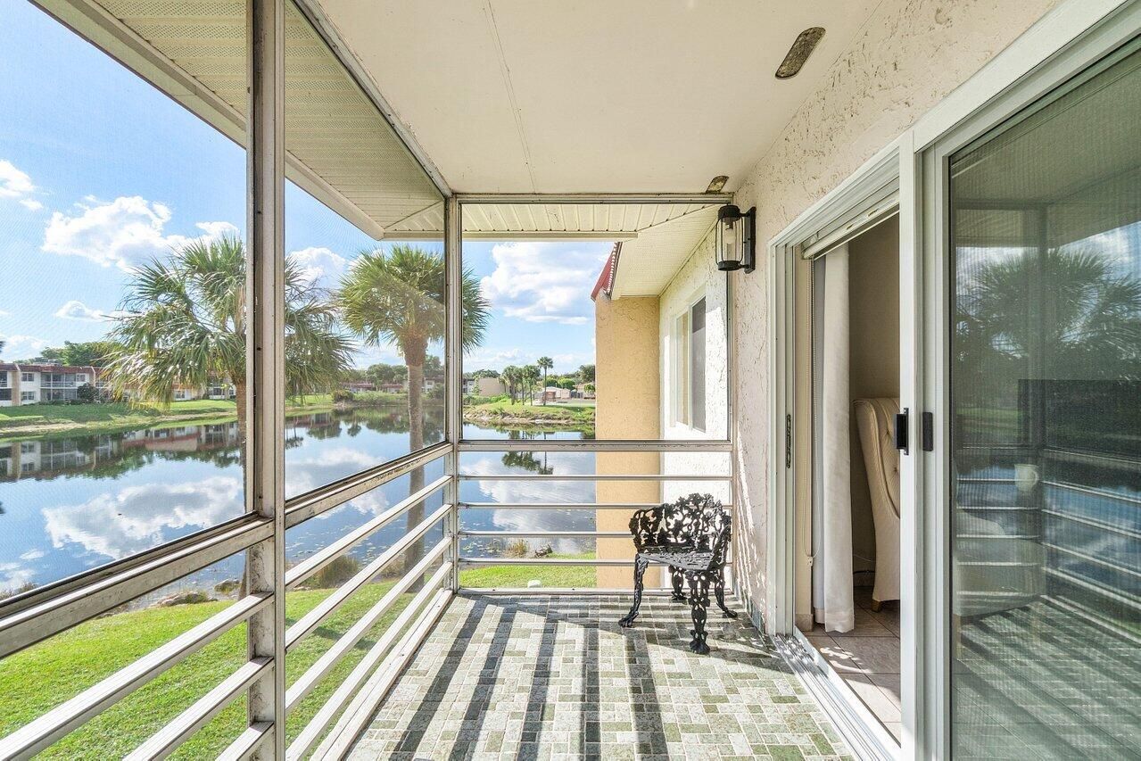 Welcome home to this beautifully maintained 1-bedroom, 1.5-bath condo in Golden Lakes, offering comfort, security, and serene water views. This safe and secure second-story unit features full impact windows and a newer roof (just 1.5 years old) for added peace of mind. Inside, you'll find tile flooring throughout, natural wood kitchen cabinetry, and an impressively spacious layout perfect for everyday living and entertaining. The home boasts abundant storage, including multiple closets and a walk-in pantry with washer/dryer hookup already in place. The remodeled primary bathroom provides a fresh, modern retreat, while the large living area flows effortlessly with natural light. Best of all, enjoy a beautifully private lake view from every room, creating a tranquil backdrop to your This condo perfectly blends functionality, style, and relaxation an ideal place to call home in Golden Lakes.