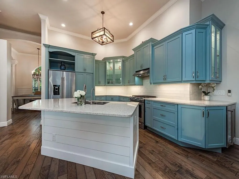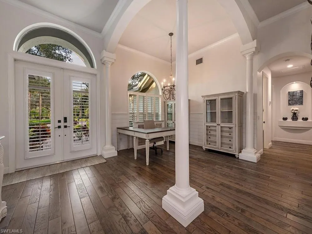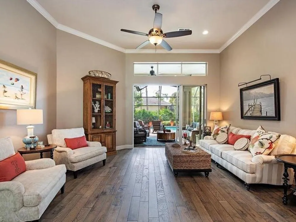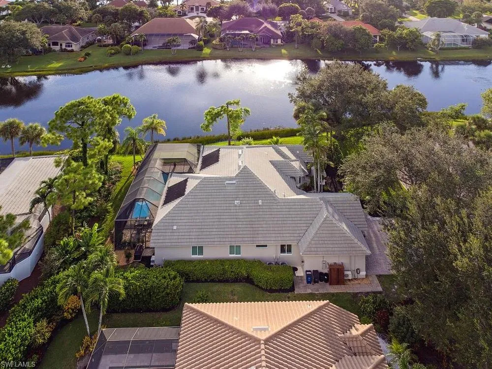 If you are looking for a move in ready home, with upgrades galore, this is the house for you!! Nestled in the heart of Pelican Landing you will find the relaxing, tranquil and private life you desire. This 4 bedroom/den, 3.5 bath home with beautiful lake views is ready to go! Volume ceilings with transom windows, beautiful crown molding, and plantation shutters throughout make this light and airy home desirable to the most discerning buyers. The great room, opening to the kitchen and lanai, is the perfect space for all your entertaining needs with family or friends. The updated kitchen includes a breakfast bar and breakfast nook with plenty of natural light. Plenty of counter space, Stainless Steel appliances including free standing ice maker, wine cooler and GAS Range make this kitchen a dream for any cook! The expansive primary bedroom, with tray ceiling and access to the lanai, has plenty of room for a sitting area and can be a quiet refuge for you after a day of sports or a day at the beach. The primary bathroom, reimagined in 2024 offers a free standing infrared sauna and shower room with Japanese soaking tub! The split bedroom floor plan offers privacy for you and your guests. One guest bedroom, presently being used an exercise room, contains a Murphy bed - you decide what works for you! A pool bath, adjacent to one guest room, is perfect for when you are spending time on the lanai. The expansive lanai, with salt water pool and spa, includes a built in outdoor kitchen and offers plenty of sun and shaded areas! This home offers a 3 car air conditioned garage with electric car hook up, car lift and plenty of storage provided by stationary and electronically movable shelving. Impact windows, electric roll down shutters and whole house generator make this home storm ready! Pelican Landing is one of the premier communities in Bonita Springs, west of 41, offering unparalleled amenities including a private Beach Club on beautiful Big Hickory Island, a fully equipped gym and fitness center, 12 Har Tru Tennis courts, Pickleball and Bocce Ball. Canoe/Kayak and sail on Estero Bay viewing the wonderful water fowl and wildlife Florida has to offer. A play area for the grandkids is a plus! Golf and Social memberships may be available at The Nest, with two18 hole Tom Fazio designed golf courses. Pelican Landing is minutes from fine dining, shopping and 20 minutes from RSW Airport. Don't miss the chance to make this house your HOME!
