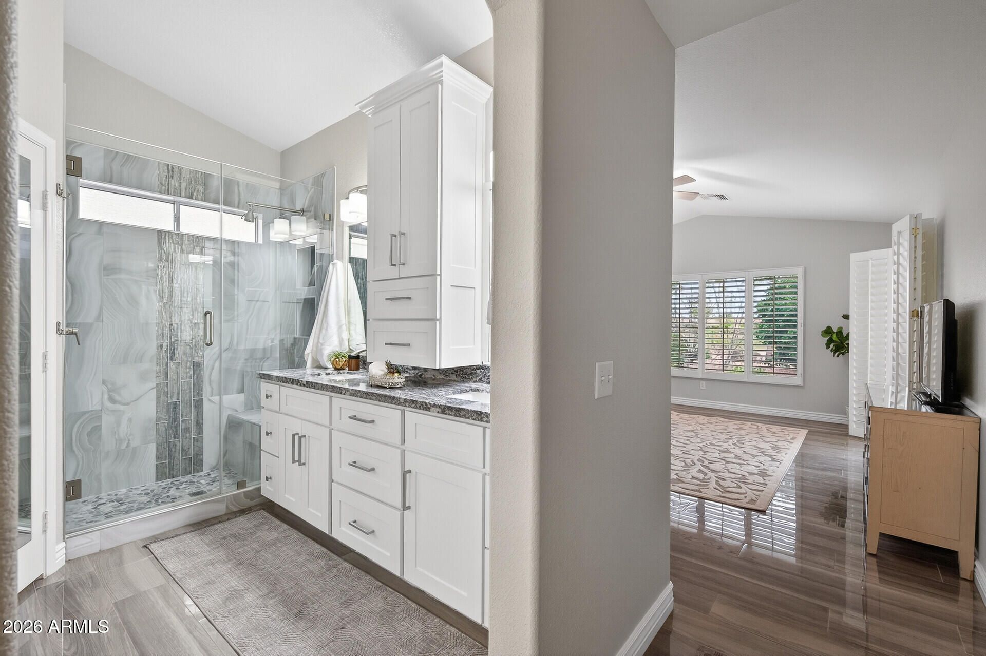 - Walk-in Pantry, High Speed Internet, Granite Counters, Double Vanity, Eat-in Kitchen, Breakfast Bar, 9+ Flat Ceilings, No Interior Steps, Vaulted Ceiling(s), Kitchen Island, 3/4 Bath Master Bdrm