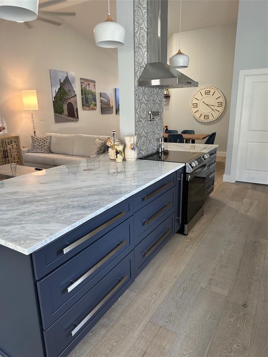 LARGEST VILLA on an extra-large corner lot in the highly desirable Nature’s Cove subdivision of Highland Lakes, a premier 55+ community. This one-of-a-kind opportunity offers 1,765 heated square feet, 2 bedrooms / 2 bathrooms in a wide-open floor plan with a 6x13 Foyer, Living Room/Dining Room combination under vaulted ceilings, engineered hardwood European white oak flooring and contemporary LED lighting throughout. The over-sized Great Room is bathed in natural light from 3 solar tubes. The Kitchen has been updated with extra-tall soft-close cabinets, granite countertops, decorative backsplash, Samsung stainless steel appliances, a Canopy Hood with an adjacent eating area offering great outdoor panoramic views of the neighborhood. An over-sized island separates the Kitchen and Great Room, provides added storage and is a perfect location for a buffet when entertaining guests. The Laundry Room is conveniently located off the Kitchen and is equipped with an LG Top Load Washer and Dryer, a stainless-steel utility tub, and a Whirlpool refrigerator. The split floor plan design offers you and your visitors added privacy. The Master Bedroom Suite includes a private 8x11 Office/Den with tropical outdoor views from two windows, his and hers wall and walk-in closets and an over-sized en-suite Bathroom. Both Bathrooms have been updated with comfort height vanities, large back-lit mirrors, one-piece dual flush commodes and walk-in showers with decorative tile and glass doors. Linen and storage closets are located in the hallway outside the Guest Bathroom. The private 20x12 paver patio is shaded and perfect for relaxing or entertaining! Other updates include impact rated windows (2023), Hardie Plank 16" Vertical siding (2023), Owens Corning Roof (2022), AO Smith Heat Pump HWH (2020), a 3-Ton Goodman Heat Pump HVAC (2020), whole house Generator hook up and ½ HP Craftsman Chain Drive garage door Opener. Monthly maintenance of $207 includes 2 cable boxes, internet, trash, lawn care, exterior and grounds maintenance, and irrigation system! This very active 55+ community offers a Clubhouse with a variety of classes, clubs, activities, heated in-ground pool, Spa, Bocce Ball and shuffleboard, tennis and pickleball courts. This golfing community also has 3 different courses! There’s an Auditorium where you can enjoy concerts, an onsite RV and Boat Storage facility and a Lodge with a heated pool, indoor and outdoor facilities for private gatherings, private boat ramp or take advantage of the 2 Community pontoon boats for tours of Lake Tarpon. Private boat ramp is available in the free RV/Boat storage lot next door. All this for an additional $167/month. Additional conveniences include our awesome Gulf beaches, Pinellas Trail, shopping, restaurants, sporting & cultural venues, medical care, banking and 2 airports. Come live the Florida Lifestyle – call for a tour today!