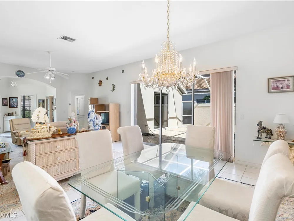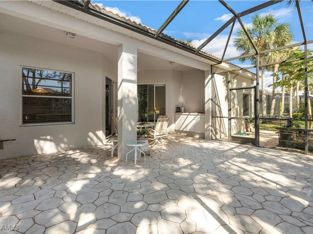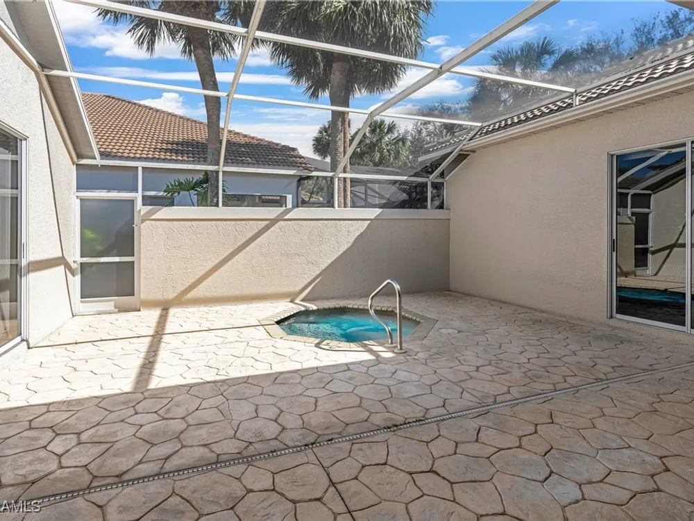 One of the most affordable single family homes currently on the market in Pelican Landing. The roof and Air Conditioner on this 3 bedroom 2 bath home were both replaced in 2023. The in-ground spa has just been rebuilt with all new mechanical equipment. The home has a 2 car garage. The spa is located in a screened courtyard that can be accessed from 2 of the bedrooms and the Living Room. There is also a large screened-in patio in the rear of the house with southern exposure. Pelican Landing has two 18-hole golf courses, unlike communities where golf is mandatory and built into your HOA fee, golf here is completely optional; all costs are funded by golf club members. The amenities that are included for all Pelican Landing residents include a tennis center with 12 Har-Tru courts, a fully equipped fitness center, six pickleball courts, two bocce courts, kayak/canoe park. A community center where residents gather to play games and socialize. There are three fishing piers, a butterfly garden, and a marina on Estero Bay where residents can check out sailboats and kayaks, with complimentary sailing lessons. The top amenity is the 34-acre island Gulf of America beach club with a pavilion that is serviced by Pelican Landing shuttle boats. Basic cable is also included with your HOA fee. Pelican Landing transfer fee was raised to $5,000 1-1-25 payable by buyer at closing.