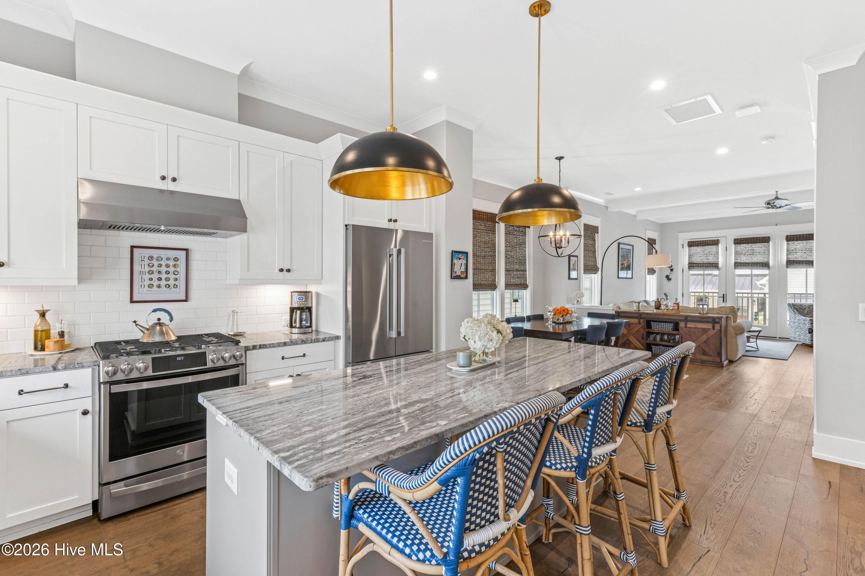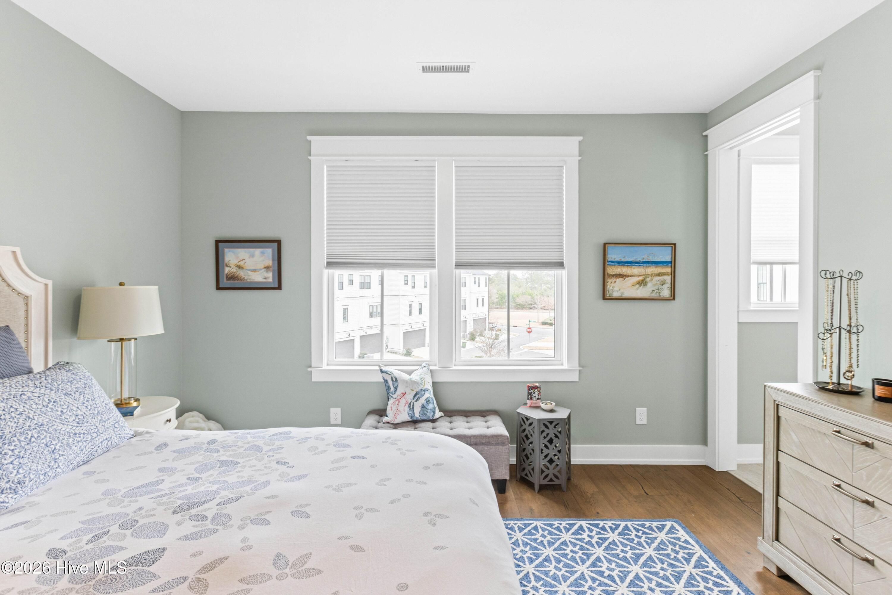 Exceptionally built townhome by the award-winning and highly regarded PBC Design + Build in RiverLights Marina Village, offering exceptional riverfront proximity and walkable access to Marina Village dining, shops, and community events. Featuring 4 bedrooms, a bonus room, 4.5 baths, and elevator access to every level. Open, light-filled layout with hardwood floors, 8-ft doors, and 10'/9' ceilings. Kitchen features granite countertops, gas range, farmhouse sink, pantry with built-ins, Bosch refrigerator, and GE Profile oven. Living area with gas fireplace, beams, and built-ins opens to a covered balcony. Primary suite includes a private covered balcony, custom closet built-ins, dual vanities, and a frameless tiled shower. Additional highlights include a garage split AC/heat unit, tankless water heater, whole-house generator, walk-in storage, and rear-entry garage. Convenient access to downtown Wilmington and area beaches. Enjoy an exceptional lifestyle in one of Wilmington's most desirable waterfront communities.