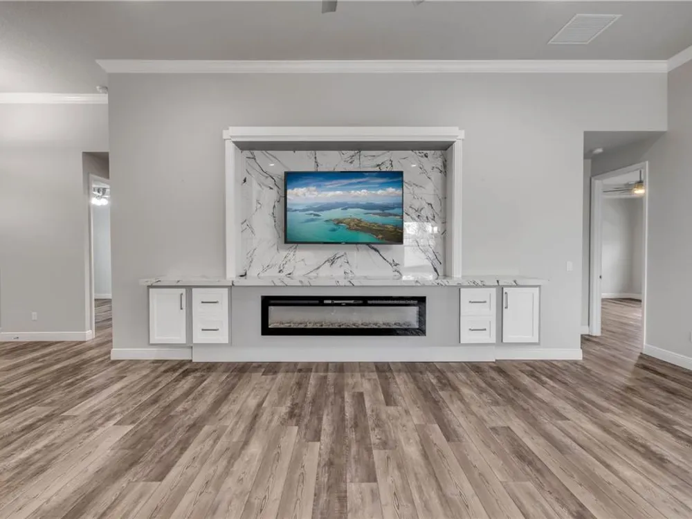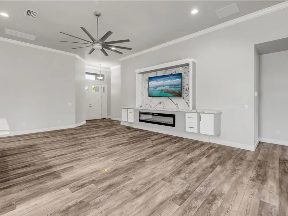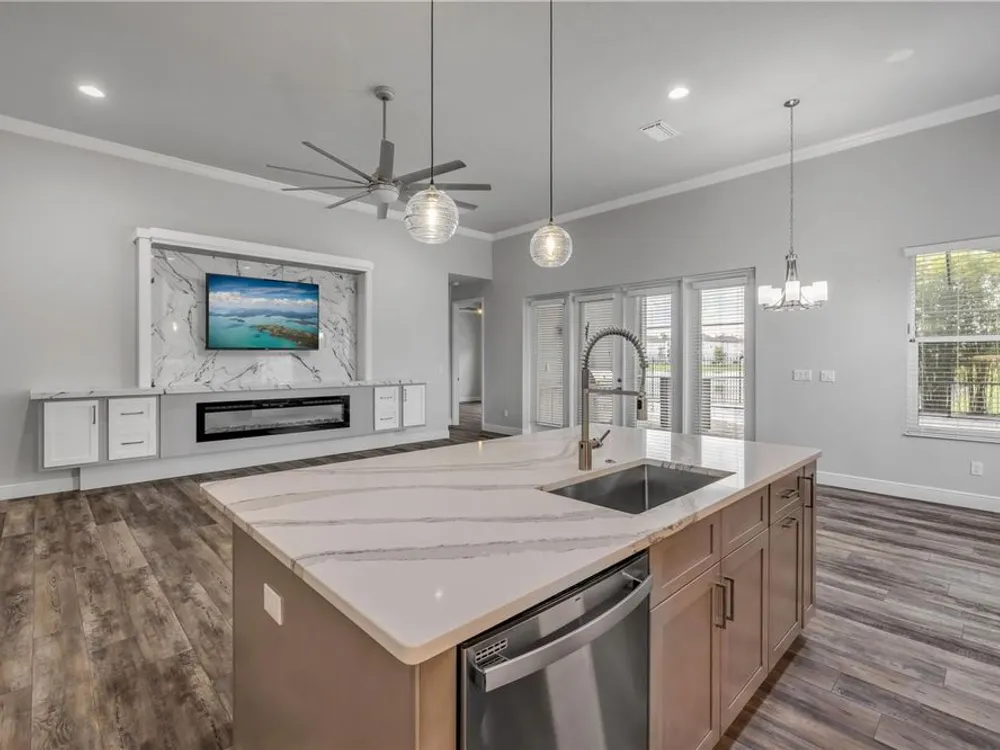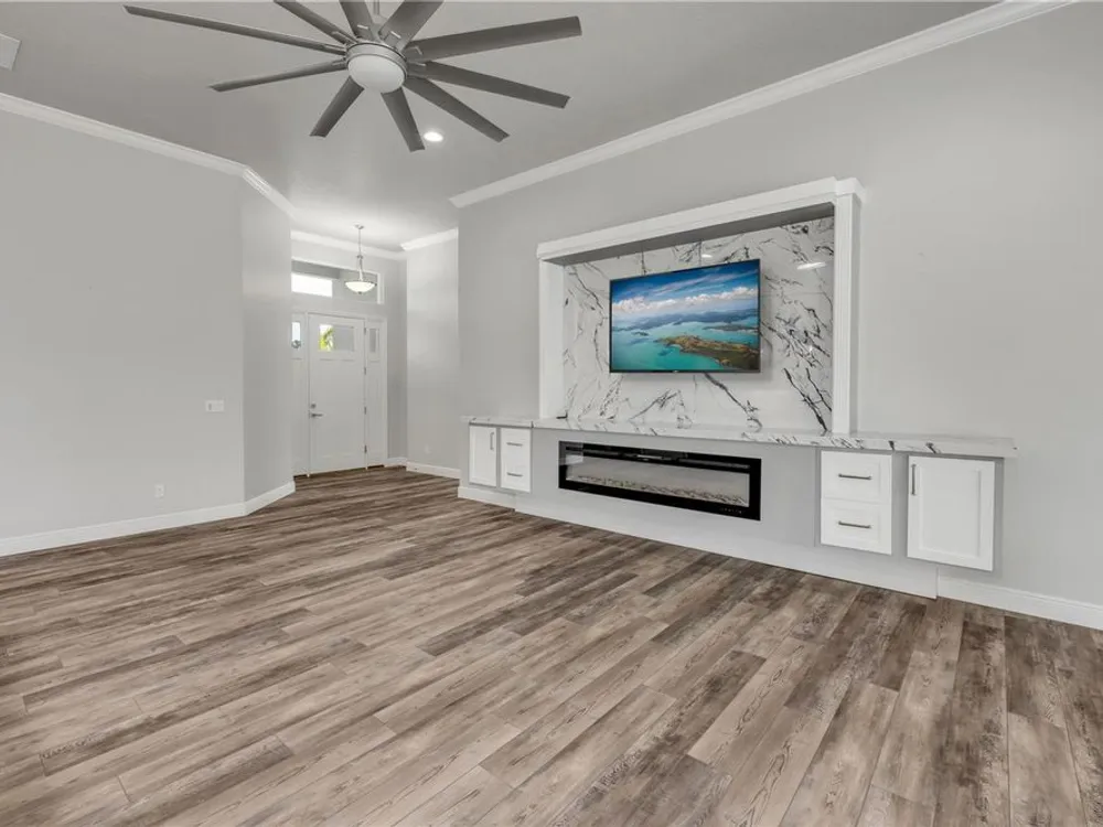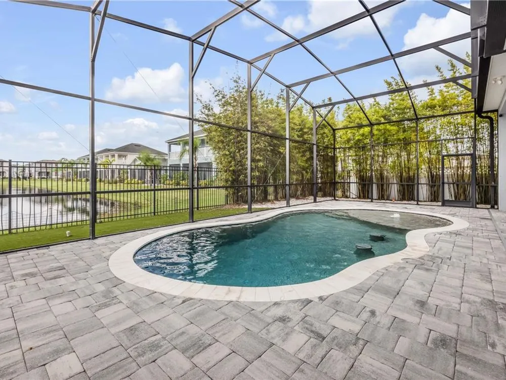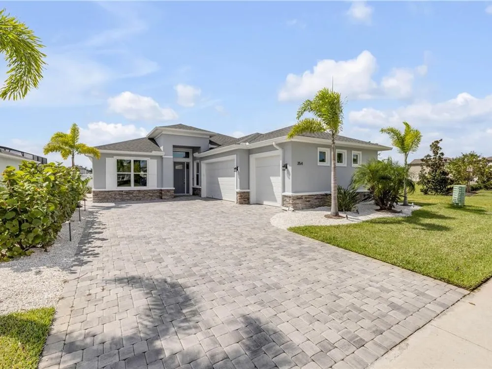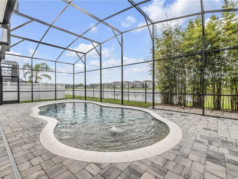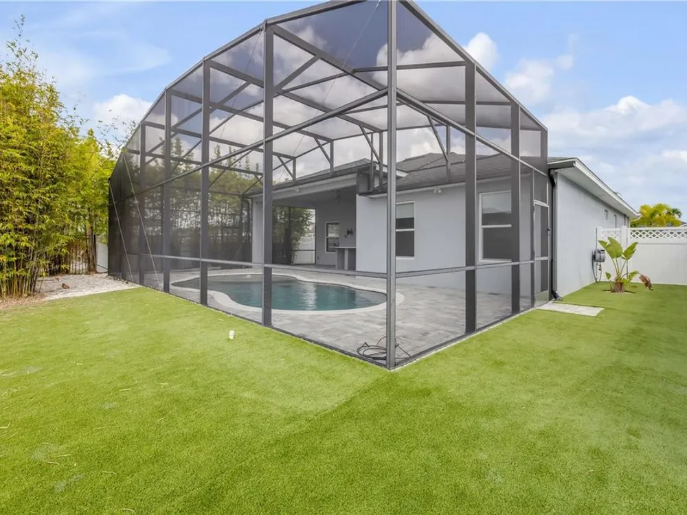Discover a home that truly has it all. With a full three-car garage, beautiful landscape lighting, and tinted east-facing windows, the curb appeal is just the beginning. Step inside to find a built-in entertainment center with an oversized fireplace, crown molding in the main living space, and a kitchen with a stylish tile backsplash. The kitchen also boasts a corner pantry upgraded to a full chef's pantry with butcher block countertops, outlets, and under-counter lighting. The primary suite features a tray ceiling and a luxurious bathroom with dual shower heads, including an oversized rainfall shower, and a completely built-in walk-in closet. A bonus room can serve as a fourth bedroom or office. Outdoors, enjoy the show-stopping outdoor kitchen and living area under a 12-foot high covered lanai with drop-down sunshades. The space includes wraparound granite countertops, a built-in grill, and lush bamboo landscaping for privacy. The custom pool features a pebble finish, sun shelf, swim-up bar stools, saltwater system, and solar heating—all under a screened enclosure. The property also features a non-buildable common area next door for added privacy, and the backyard is designed for low maintenance with artificial turf and shell. Plus, a built-in transfer switch in the garage makes it easy to hook up a generator to power the whole house. Come see why 354 Venetian Palms Boulevard is the perfect blend of luxury and comfort!