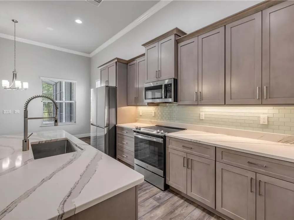 - Dishwasher, Disposal, Electric Water Heater, Microwave, Range, Refrigerator, Touchless Faucet