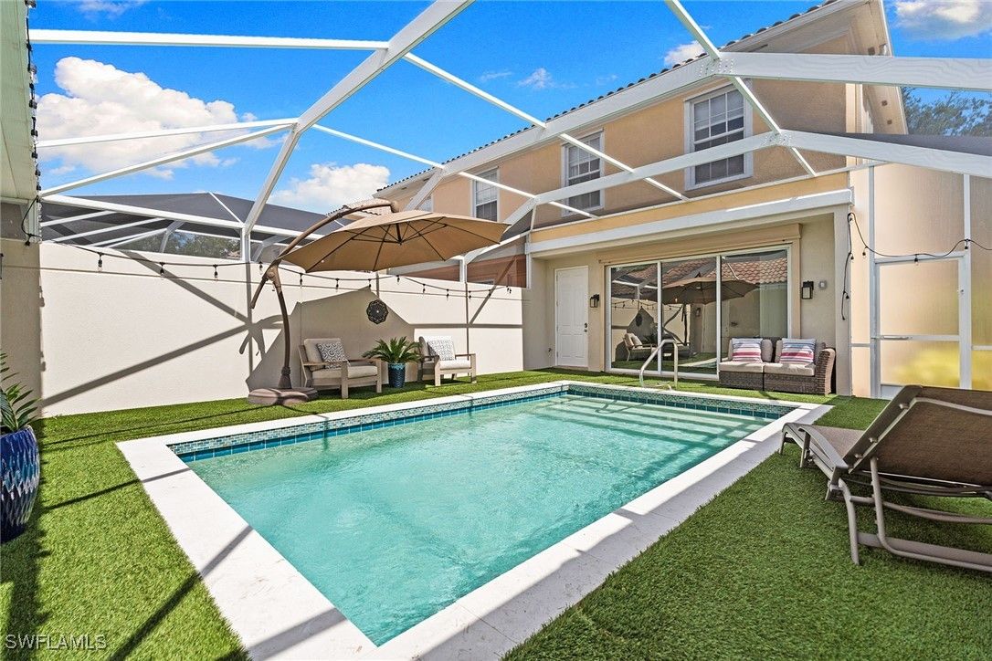 Come discover the perfect blend of comfort and style in this 3 bedroom, 2 1/2 bathroom townhome with a double garage off the pool area. This inviting floor plan flows seamlessly to your private screened pool and patio. The updated kitchen features newer appliances, modern countertops, and a stylish backsplash, making it as functional as it is beautiful! Upstairs you will find a spacious primary suite that includes a walk-in closet as well as an additional closet. The primary bath has double sinks and a separate shower and tub. Two additional bedrooms provide plenty of room for others or a home office. Islandwalk just completed a beautiful renovation of their clubhouse, which includes a library, conference room, a living room completed with a fireplace and card tables, and a large room fit for dances, weddings, dinners, etc. There were NO assessments to the homeowners and the HOA fees continue to remain low!!!