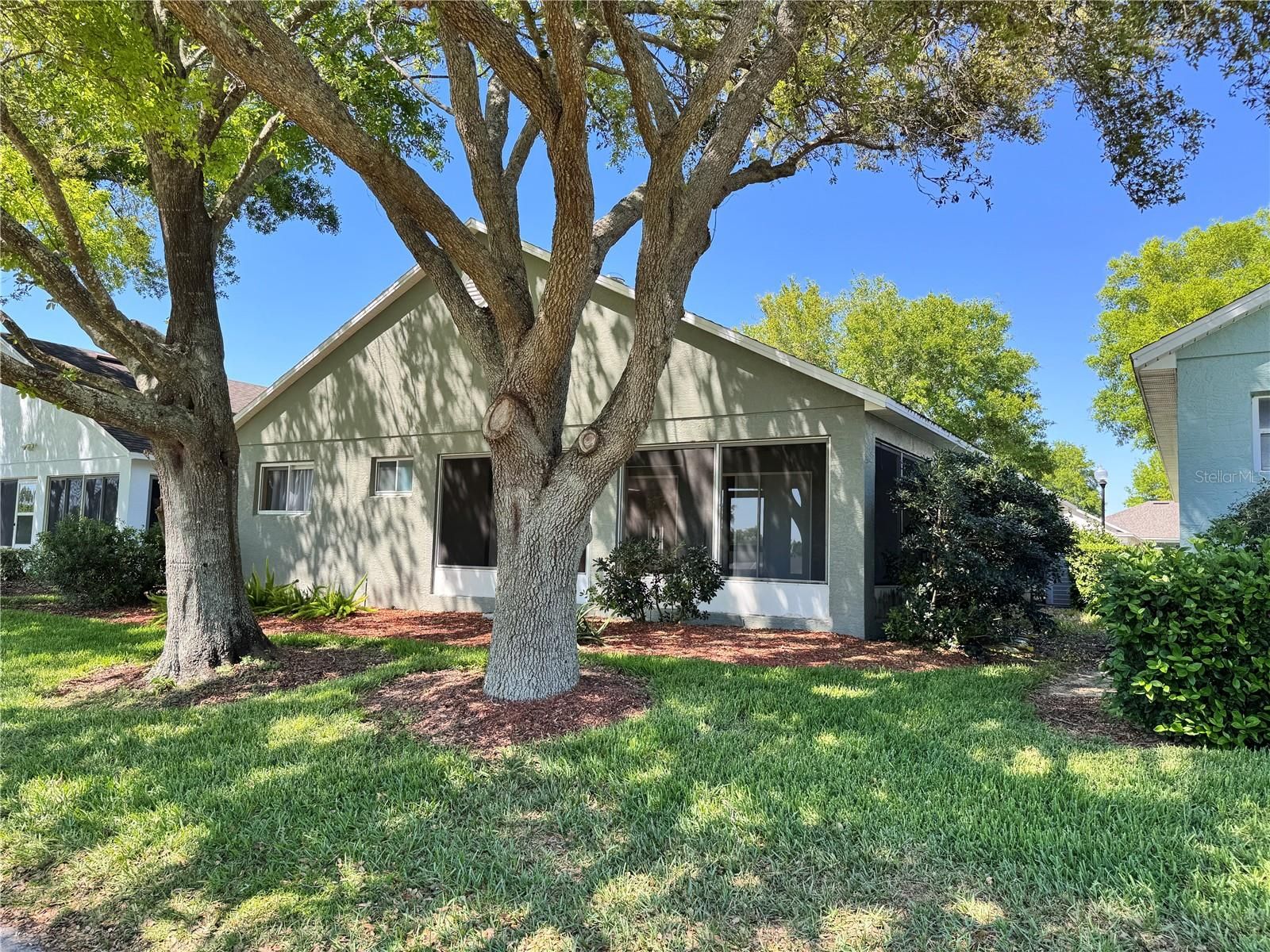 Welcome to your New Golf View home! This a Golf Enthusiast's dream home! Located on the Tee-box of the 16th hole! Enjoy your days afternoons and evenings watching the golfers and when you've had enough, retreat, close the blinds, and step inside to your beautiful freshly painted, Sir Walter Series Kent model, open floor plan and relax! The owners have done some upgrades, by removing a wall between the Den/Study and dining room creating a larger, more open space. Also moved the bedroom two doorway to include the hall bath and creating an ensuite bathroom for bedroom 2 for your guests privacy. ALSO, owners are not done yet! On March 25th, New Granite Countertops are being installed for you! The kitchen is very spacious and has breakfast nook area. The upgraded window dressings are high quality and bi-directional, Solar Tubes have been added to let more natural light and high end remote control fans have been added to all rooms for comfort and air circulation. Lighting has been update to LED lighting. Bedroom #1 is large enough to accommodate a King size bed and an excellent view of the golf course, and you may want to wake up and have your morning coffee on your oversized screened/enclosed Lanai. Large walk in closet and safe walk-in shower. Your days in a retirement village are just beginning! Go and enjoy your days, evenings, weekends at the multi-million dollar club house loaded with amenities and other members that are waiting to meet you! Swimming pools, game rooms, library, sauna, showers, fitness center, shuffle board, bocce ball court, pickle ball, basketball, tennis....and more! you will never be bored and you can join numerous clubs and games, all days, and times! There are social club events that take you on day trips to numerous destinations. A travel club that finds all the good deals and is associated with cruise line directors to get you the deals! So don't wait come and see this immediately, the "On the Golf Course" homes are always in demand and do not last long!