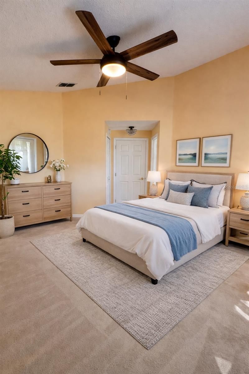 - Cathedral Ceiling(s), Ceiling Fan(s), Living/Dining Room, Main Level Primary, Thermostat, Vaulted Ceiling(s), Walk-In Closet(s), Window Treatments