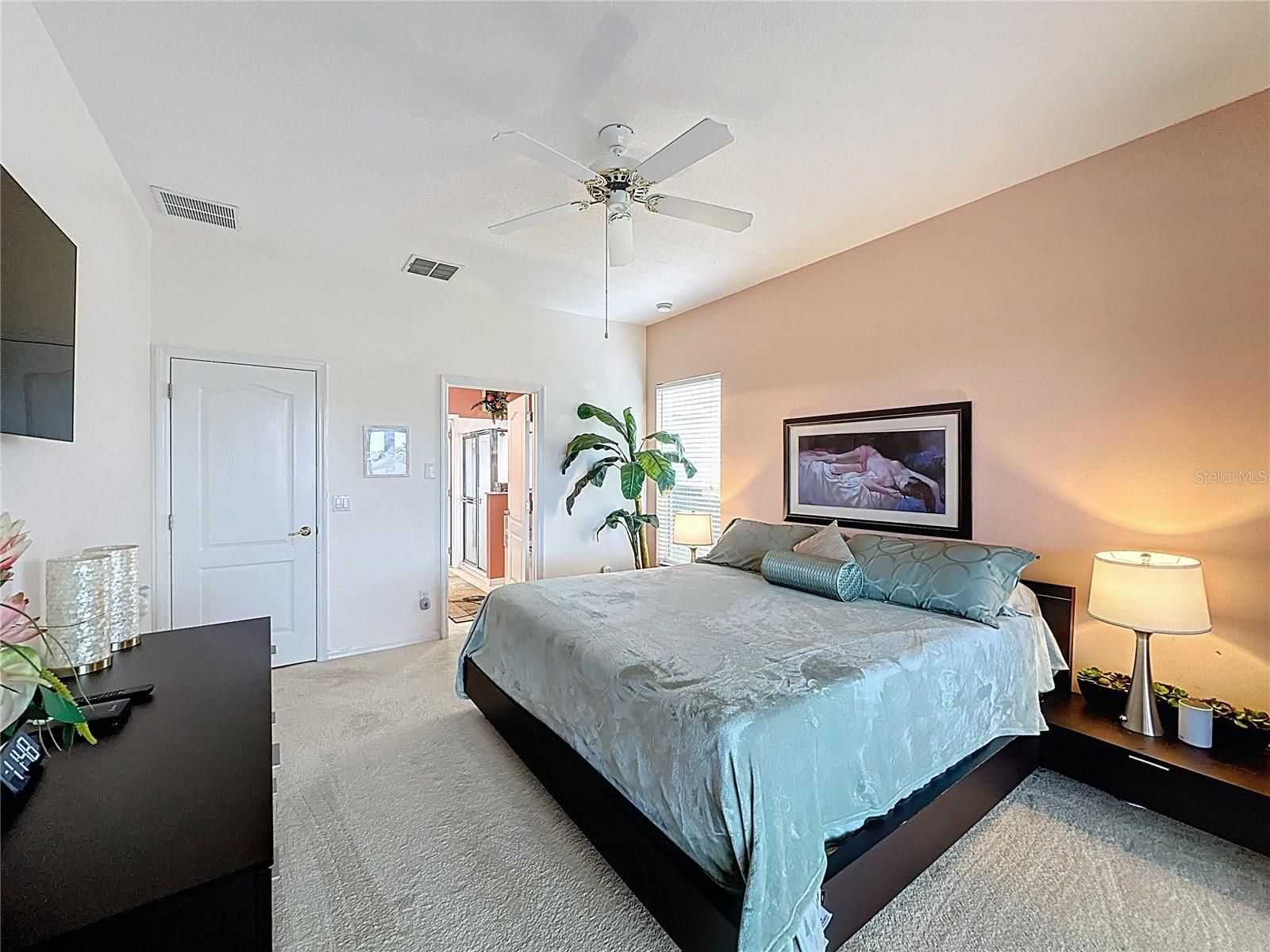 - Built-in Features, Ceiling Fan(s), Eat-in Kitchen, High Ceilings, Kitchen/Family Room Combo, Open Floorplan, Main Level Primary, Split Bedrooms, Walk-In Closet(s), Window Treatments