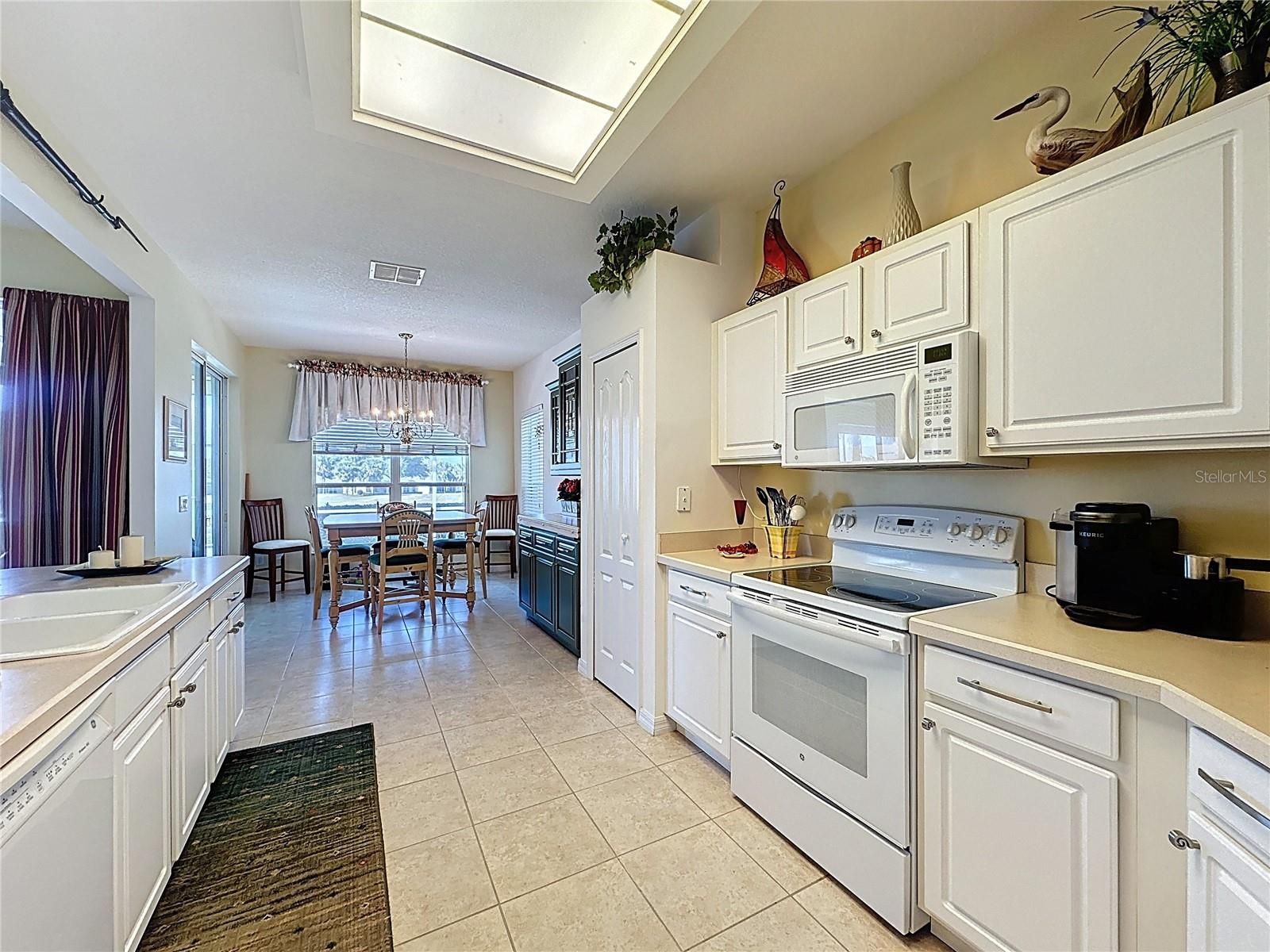 fabulous lot with water and golf views- very tranquil. Popular St Laurent model located on the North course in 55+ gated Kings Ridge in the rolling hills of Clermont. Very large back lanai to sit out and relax and an extra plus is that the patio furniture stays. Home is being sold partially furnished/turn key . Home has 1811 heated Sf with 3 Bd/2 BA and good sized 2 car garage. Home is close to the cul de sac so very quiet location. New roof in Jan 2016 and HVAC changeout in July 2016. Home was only used about 6 months out of the year., Galley style kitchen and large breakfast nook with some built ins. The primary bedroom has a large walk in closet. The primary bathroom has a walk in shower plus a garden tub. The 3rd bedroom is being used as a den currently. There are 3 mounted TV's that will remain. Separate laundry room and washer & dryer remain. Kings Ridge is a 55 Plus gated golf community located in the rolling hills of Clermont, FL. Enjoy the Royal life style in the multi-million $ clubhouse with 3 heated pools, spas, tennis & pickle ball courts, billiards, shuffle board, shows, Bingo, cards and clubs galore. The monthly maintenance fees include: lawn maintenance including trimming of shrubs, care of irrigation system & irrigation water, internet, TV & home phone thru Fiibernow/Opticaltel , maintenance of roads and outside painting of home every 7 years. Take your golf cart to the Kings Ridge Plaza where you can do your grocery shopping, banking or dine out. Approximately 30 minutes to Disney Parks or Universal Studios.