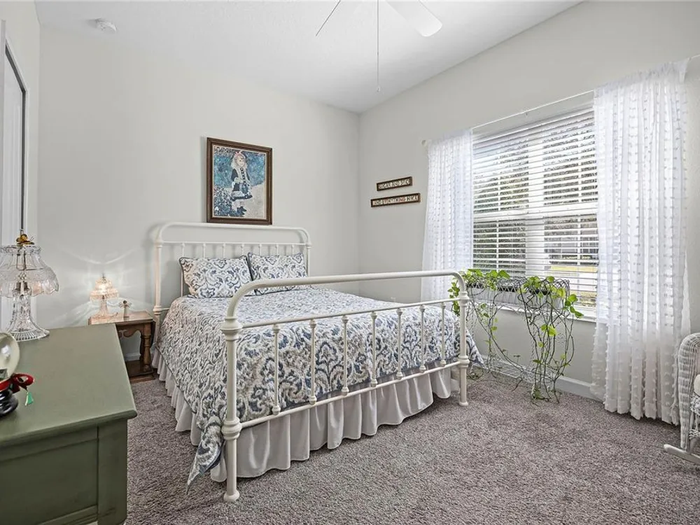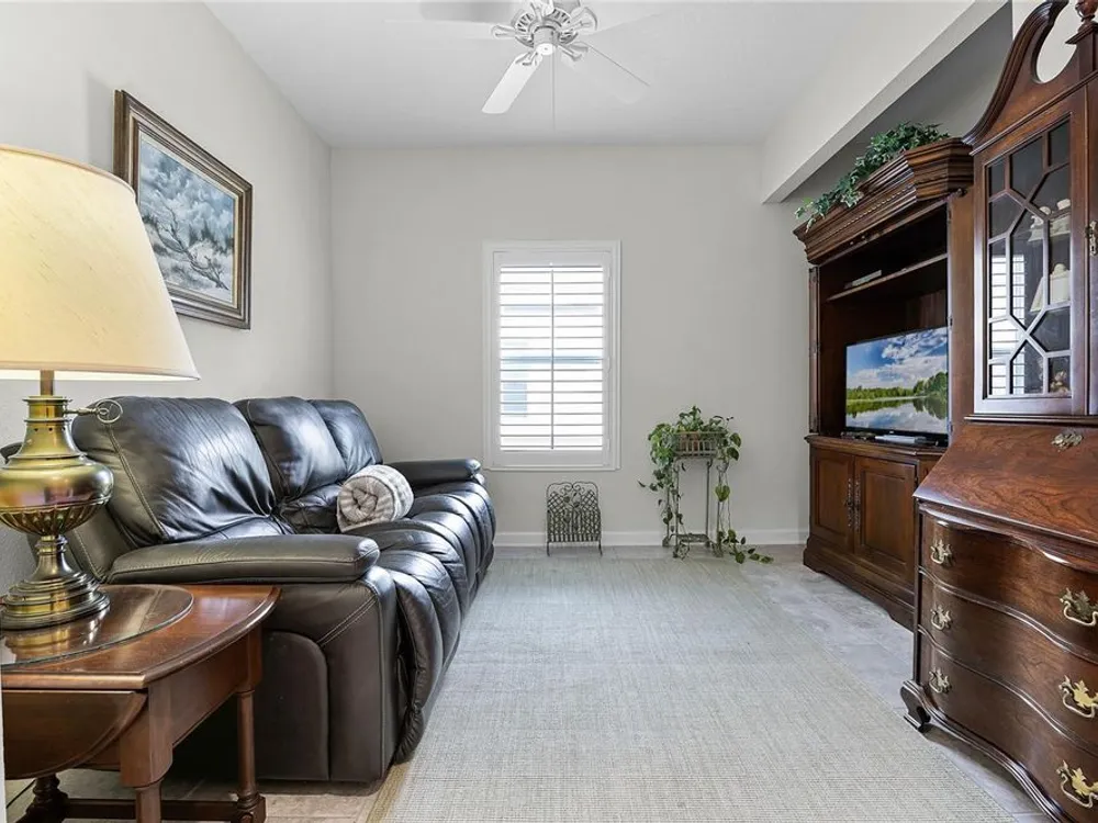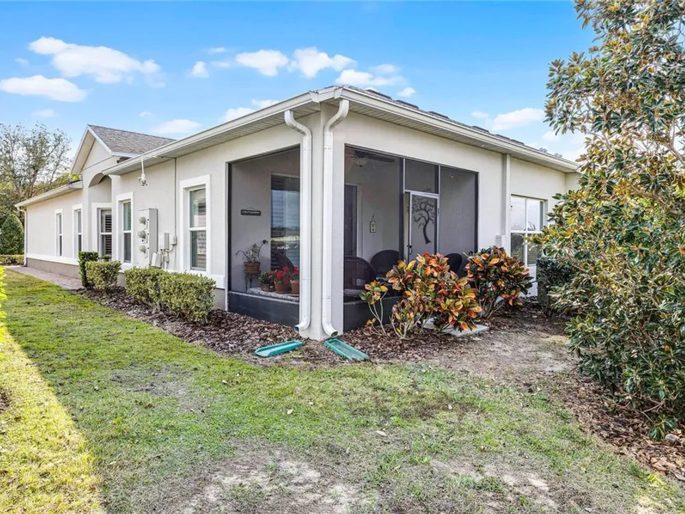 Heritage Hills is a sought after 55 plus community in beautiful Clermont! This popular St. Marten villa is a 2 bedroom with 2 full baths plus a flex room with a one car garage! Loads of upgrades in this villa! Plantation shutters on all the windows including the sliding glass door to the lanai. There is crown molding, ceramic tile in the main living area and carpet in the 2 bedrooms. The screened lanai is a perfect place to relax and enjoy the outdoors with no rear neighbors! Lots of privacy! The split bedroom plan is perfect for guests! The washer and dryer stay! The kitchen has tons of cabinets and granite countertops with a breakfast bar with pendant lighting. The windows in the family room and dining room bring lots of natural light inside! Furnishings optional. Heritage Hills amenities include a heated pool and spa, pickle ball, tennis, basketball, bocce ball, shuffleboard, clubhouse with planned activities, lots of clubs to join, fitness center, art and crafts room, billiard room, card room and ballroom for holding events. Exterior is painted every 5-6 years! The roof is replaced at year 15 and the reclaimed irrigation water is included in the HOA fee. There is a 5 mile walking trail around the community. Call today for a private showing!