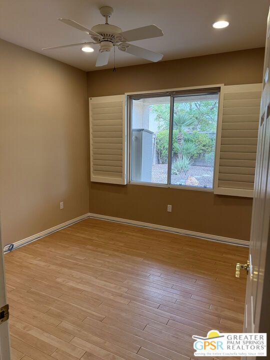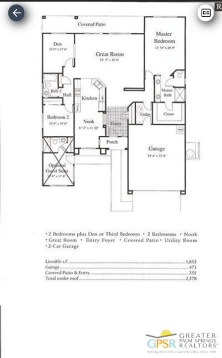 What a great opportunity! This home has been made ready to move in...all repairs found have been attended to and paperwork with disclosures are in the home for a quick sale. The home has 2 bedrooms/2 baths an office or den (or third bedroom). The Primary Bedroom suite is large with access to the back patio, large bathroom and walk-in closet. The Primary Bdrm is separated from the other bedroom and office. The open floor plan features an entry foyer, a large kitchen with all appliances (new dishwasher) and large refrigerator. The home has wide shutter window treatments throughout and the utility room has direct access to an extra long 2 car garage with laundry, workspace and built-in storage and shelving. The backyard is private and has worry free landscaping a covered patio area and a peek a boo mountain view. This is a very active community with residents walking their pets on sidewalks and dog parks disbursed throughout the community. Sun City Palm Desert is a favorite over 55 community in the desert with many amenities including golf courses, tennis and pickle ball courts, many restaurants at the many clubhouses, lots of community clubs and hobbies. The location is close to shopping and activities in the Coachella Valley. This home is very well priced and will sell quickly, ea