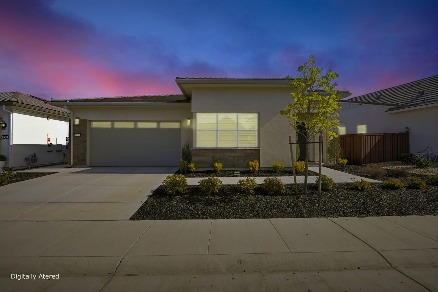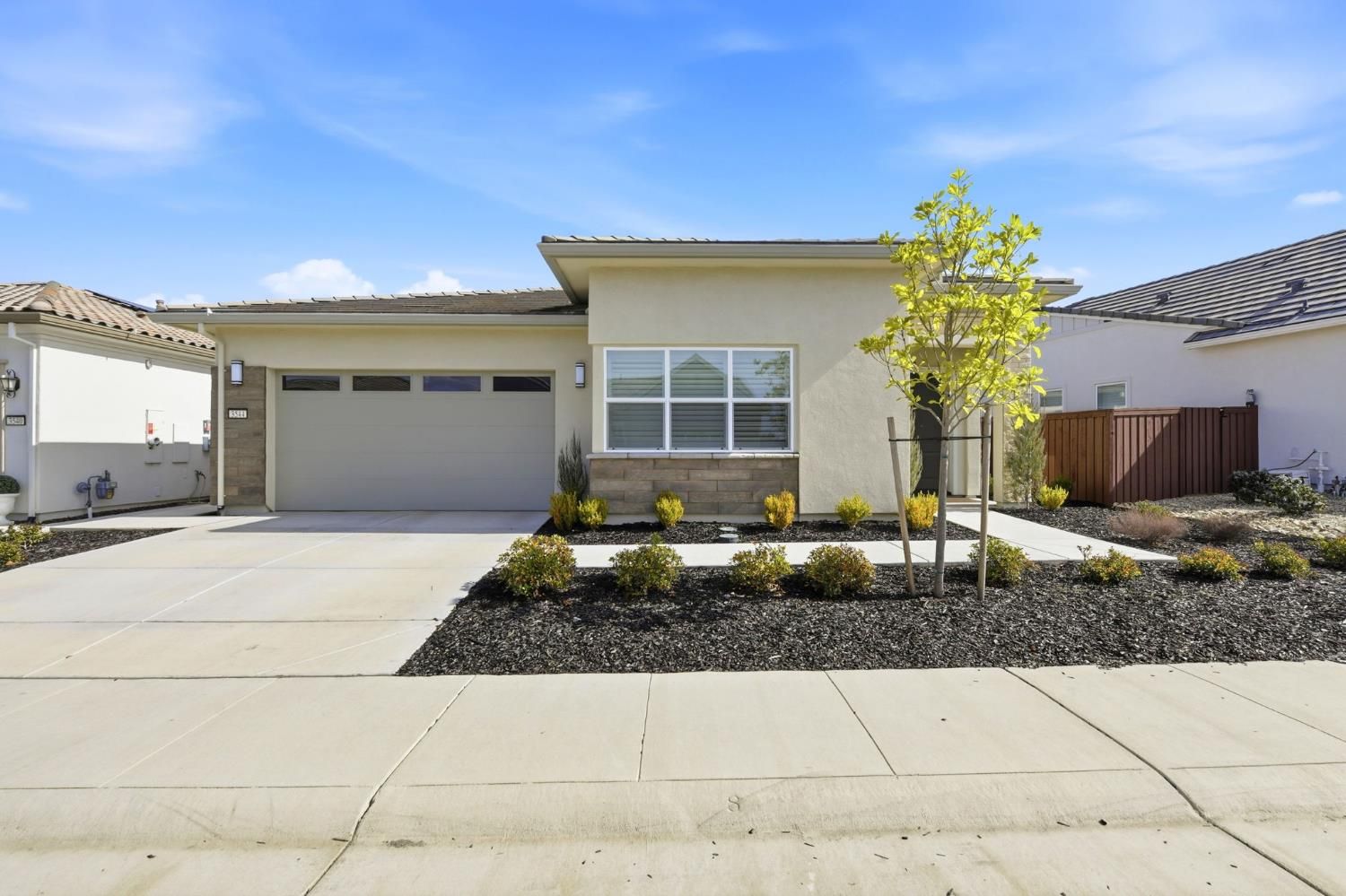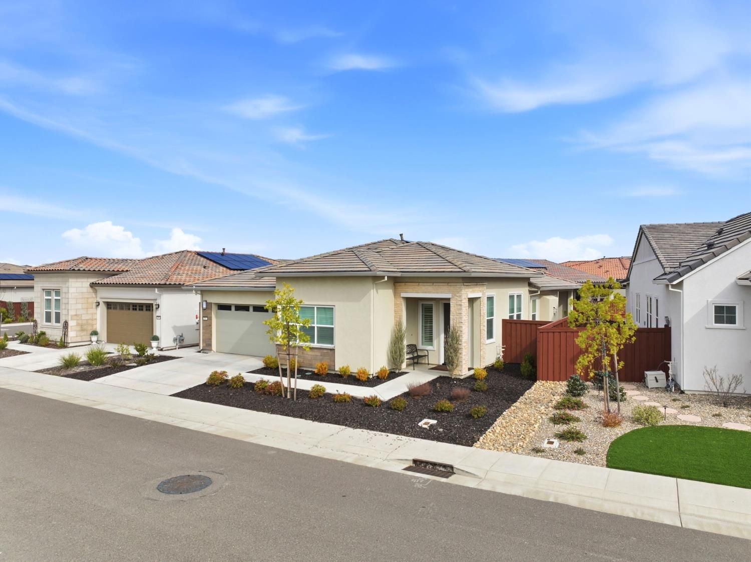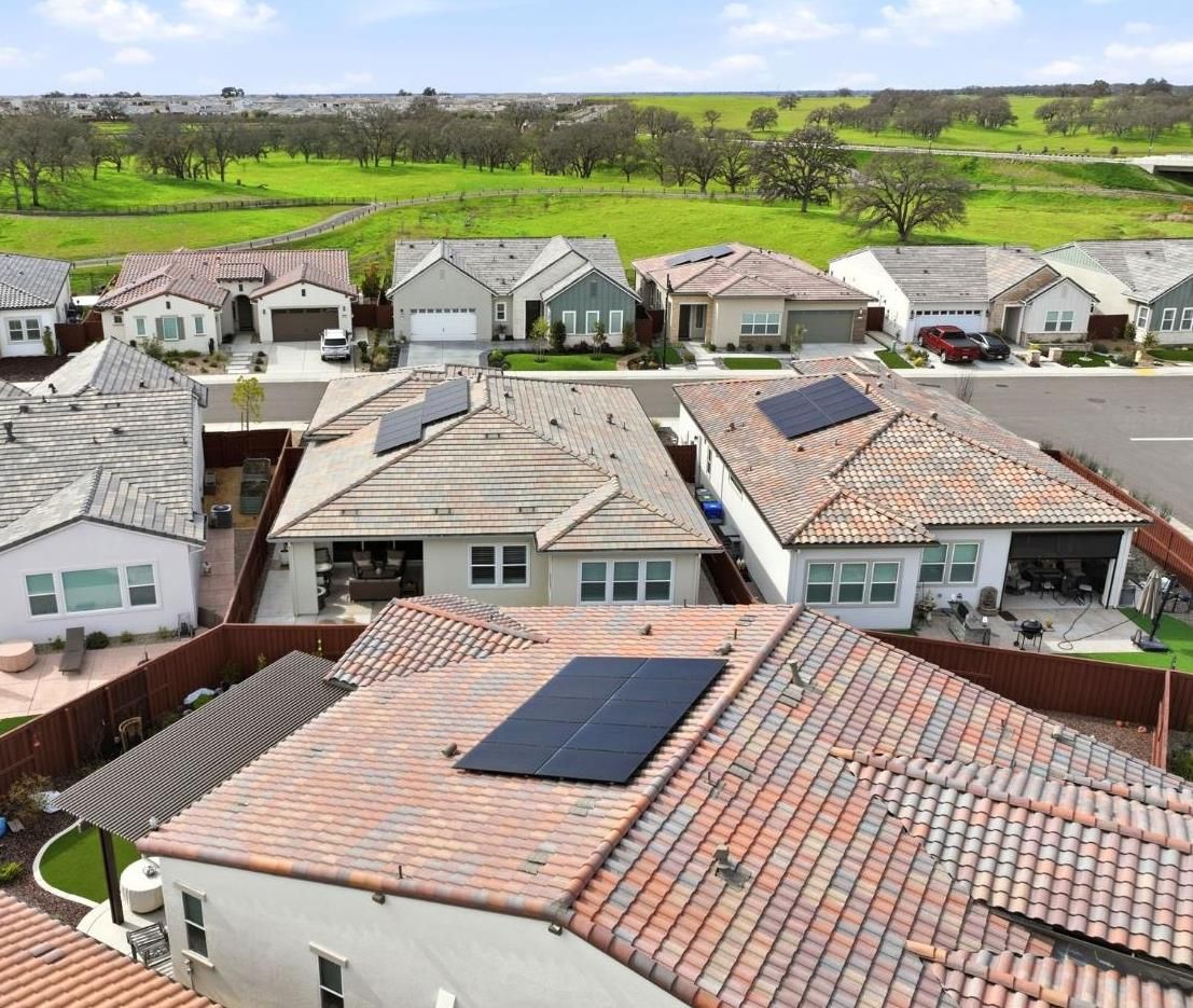 Step into sophistication at this nearly new, impeccably maintained residence in the exclusive gated community of Regency Park at Folsom Ranch. Designed for those who value both comfort and elegance, this move-in ready home offers 2 spacious bedrooms, a versatile den/office, and 2.5 baths across 2,128 sq ft of thoughtfully designed living space. Soaring 10-foot ceilings and abundant natural light create an airy, welcoming ambiance throughout. Designer touches include custom shutters, luxury vinyl plank flooring, and a chef's kitchen with quartz countertops, premium built-in stainless appliance package including built-in refrigeratorand ample cabinetry, ideal for entertaining or everyday living. The primary suite is a private retreat with a spa-inspired shower and a generous walk-in closet, while the guest bedroom boasts its own en-suite for both comfort and privacy. Seamless indoor-outdoor living awaits with an expansive, covered patio accessible from both the living and dining rooms. The living room's stacking sliders open to a low-maintenance backyard with a tranquil waterfallan ideal setting for gatherings or quiet moments of relaxation. Additional upgrades include a motorized dining room window shade, ceiling fans in the bedrooms and den, and a large laundry room with sink and cabinetry. Residents enjoy resort-style amenities: indoor and outdoor pools, sport courts, weekly social events, and a vibrant clubhousedesigned to foster an active, connected lifestyle. Don't miss your chance to experience the best in active adult living. This exceptional home is ready for you to move in and start enjoying the Regency Park lifestyle today.