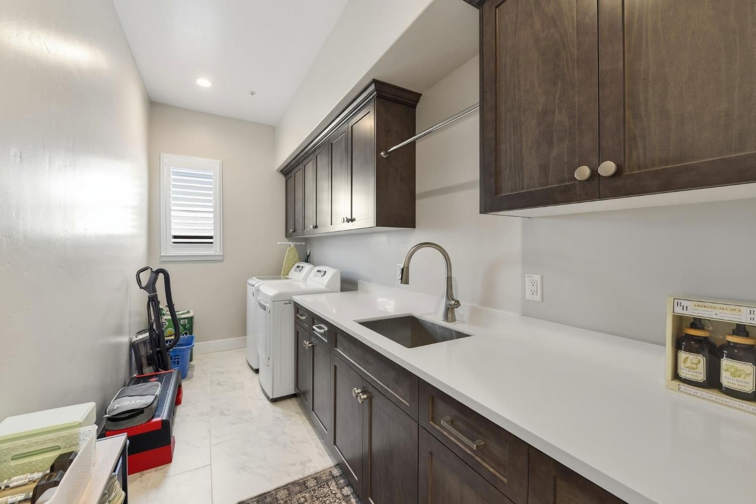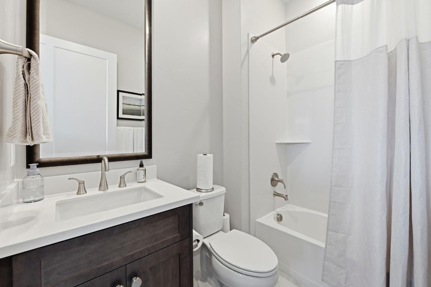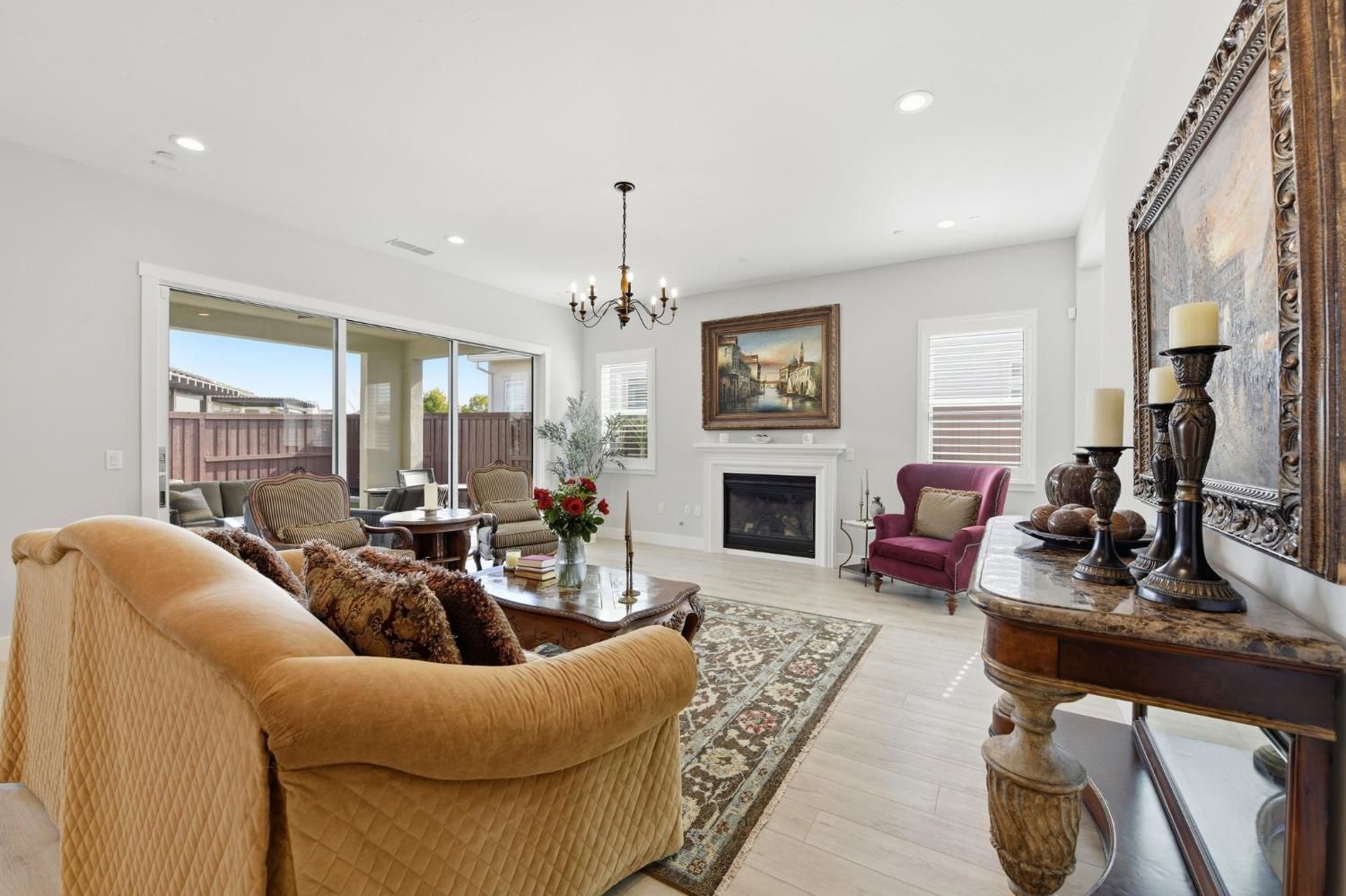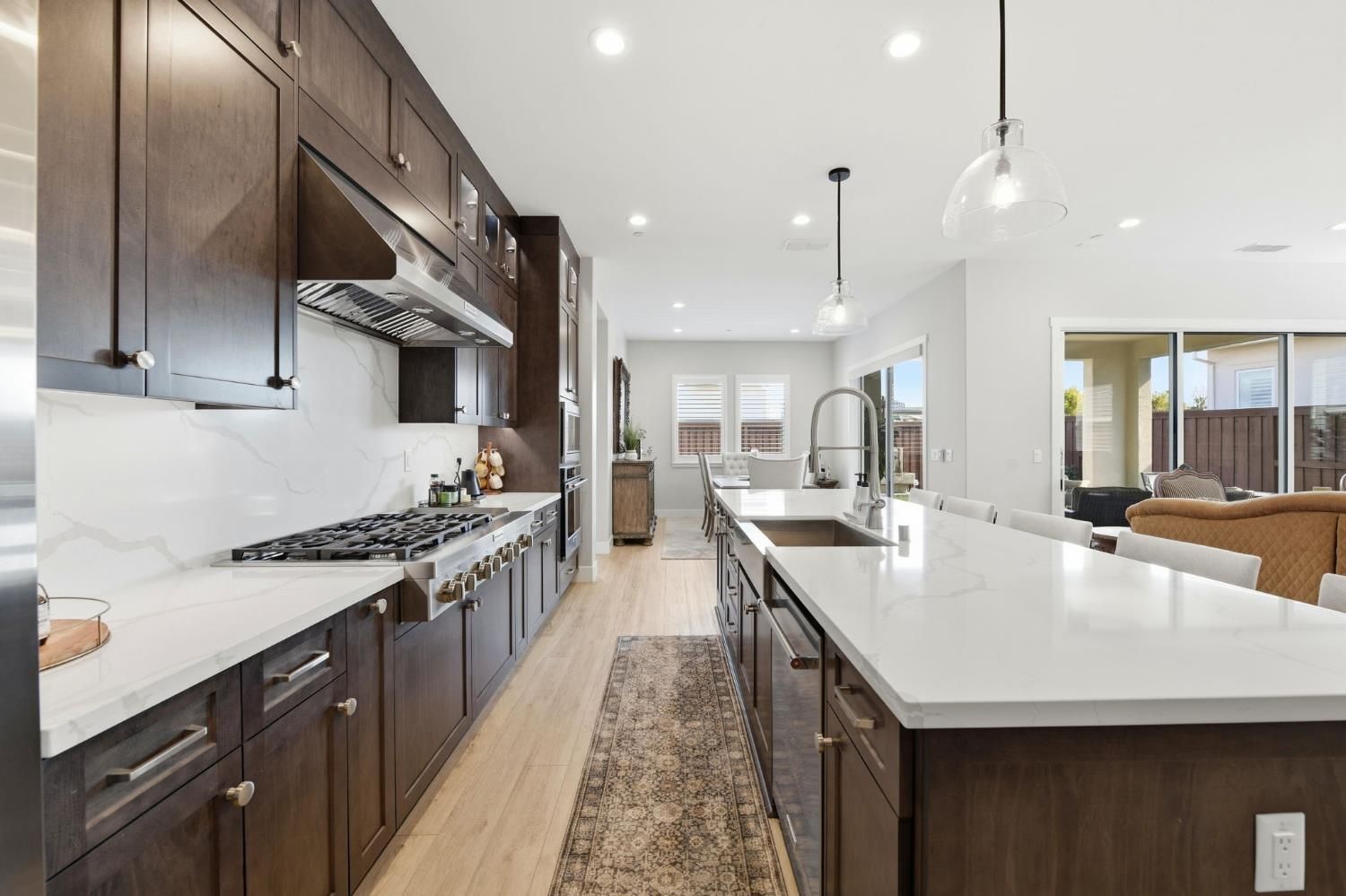 Step into sophistication at this nearly new, impeccably maintained residence in the exclusive gated community of Regency Park at Folsom Ranch. Designed for those who value both comfort and elegance, this move-in ready home offers 2 spacious bedrooms, a versatile den/office, and 2.5 baths across 2,128 sq ft of thoughtfully designed living space. Soaring 10-foot ceilings and abundant natural light create an airy, welcoming ambiance throughout. Designer touches include custom shutters, luxury vinyl plank flooring, and a chef's kitchen with quartz countertops, premium built-in stainless appliance package including built-in refrigeratorand ample cabinetry, ideal for entertaining or everyday living. The primary suite is a private retreat with a spa-inspired shower and a generous walk-in closet, while the guest bedroom boasts its own en-suite for both comfort and privacy. Seamless indoor-outdoor living awaits with an expansive, covered patio accessible from both the living and dining rooms. The living room's stacking sliders open to a low-maintenance backyard with a tranquil waterfallan ideal setting for gatherings or quiet moments of relaxation. Additional upgrades include a motorized dining room window shade, ceiling fans in the bedrooms and den, and a large laundry room with sink and cabinetry. Residents enjoy resort-style amenities: indoor and outdoor pools, sport courts, weekly social events, and a vibrant clubhousedesigned to foster an active, connected lifestyle. Don't miss your chance to experience the best in active adult living. This exceptional home is ready for you to move in and start enjoying the Regency Park lifestyle today.