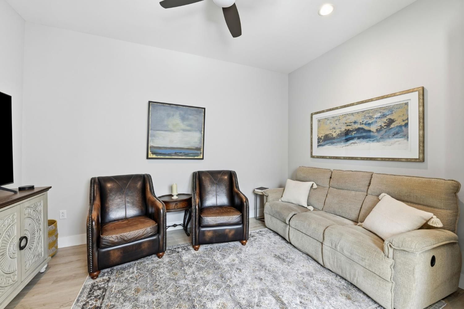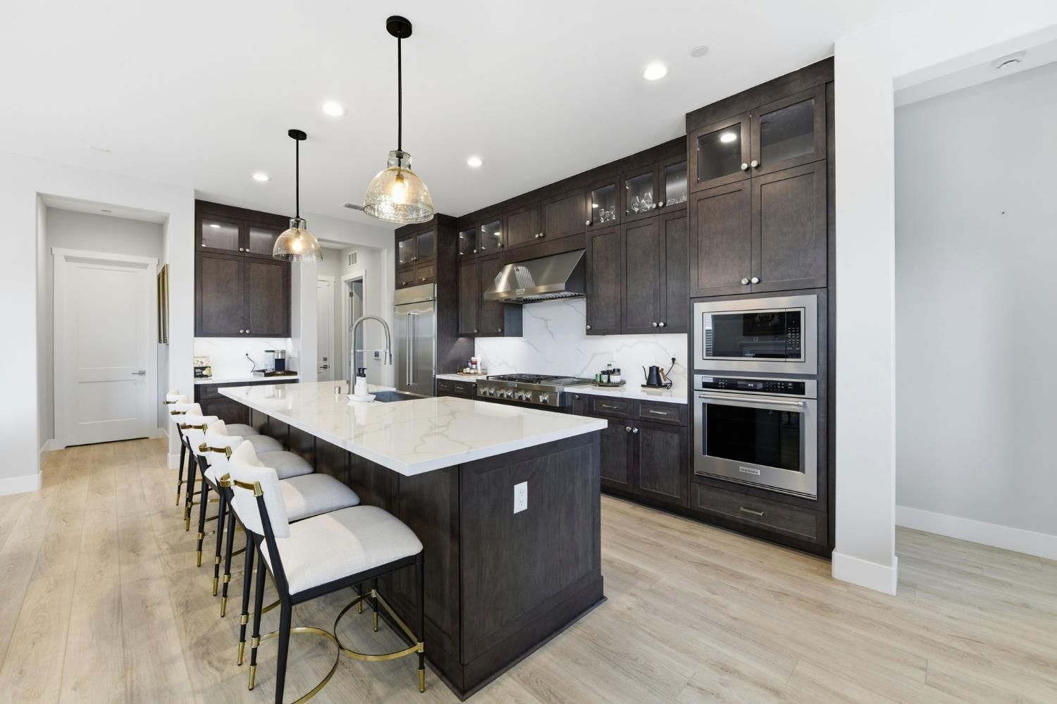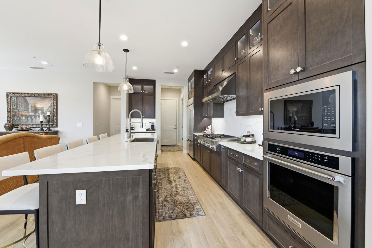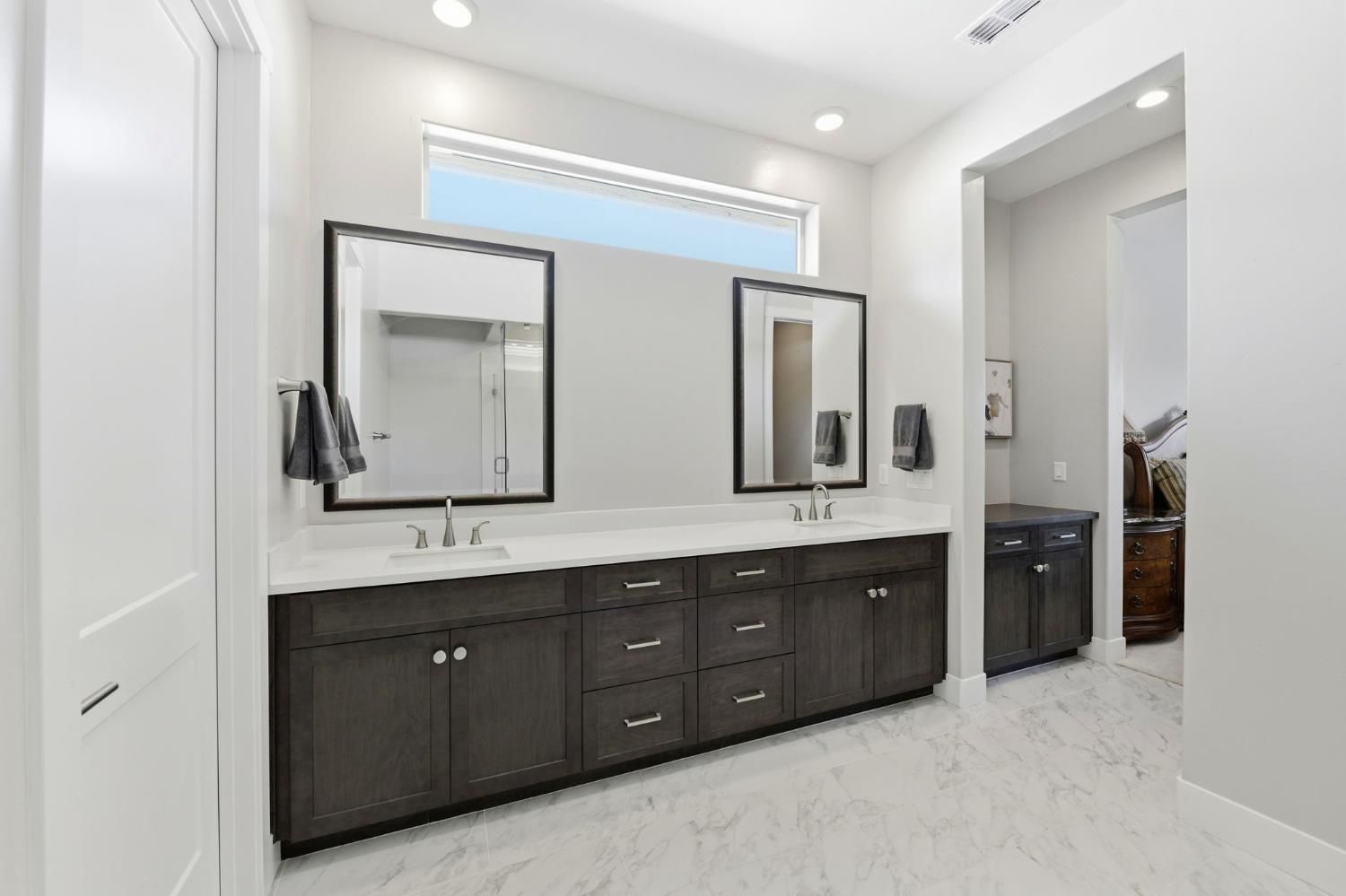 Step into sophistication at this nearly new, impeccably maintained residence in the exclusive gated community of Regency Park at Folsom Ranch. Designed for those who value both comfort and elegance, this move-in ready home offers 2 spacious bedrooms, a versatile den/office, and 2.5 baths across 2,128 sq ft of thoughtfully designed living space. Soaring 10-foot ceilings and abundant natural light create an airy, welcoming ambiance throughout. Designer touches include custom shutters, luxury vinyl plank flooring, and a chef's kitchen with quartz countertops, premium built-in stainless appliance package including built-in refrigeratorand ample cabinetry, ideal for entertaining or everyday living. The primary suite is a private retreat with a spa-inspired shower and a generous walk-in closet, while the guest bedroom boasts its own en-suite for both comfort and privacy. Seamless indoor-outdoor living awaits with an expansive, covered patio accessible from both the living and dining rooms. The living room's stacking sliders open to a low-maintenance backyard with a tranquil waterfallan ideal setting for gatherings or quiet moments of relaxation. Additional upgrades include a motorized dining room window shade, ceiling fans in the bedrooms and den, and a large laundry room with sink and cabinetry. Residents enjoy resort-style amenities: indoor and outdoor pools, sport courts, weekly social events, and a vibrant clubhousedesigned to foster an active, connected lifestyle. Don't miss your chance to experience the best in active adult living. This exceptional home is ready for you to move in and start enjoying the Regency Park lifestyle today.