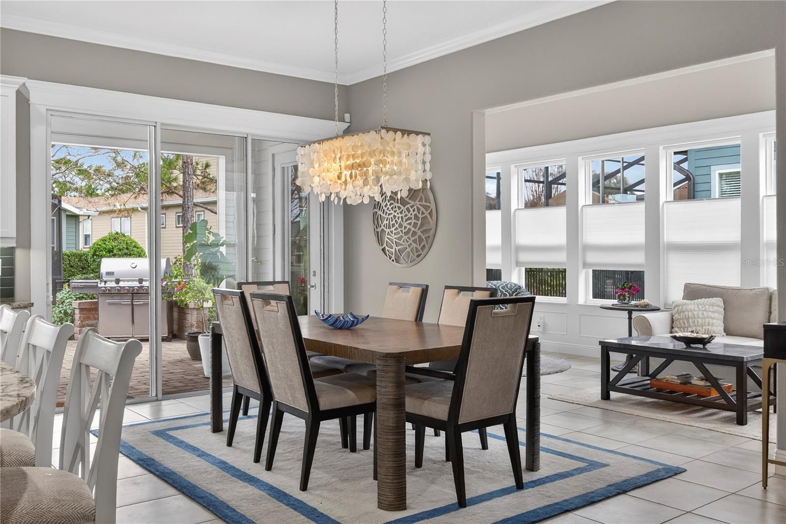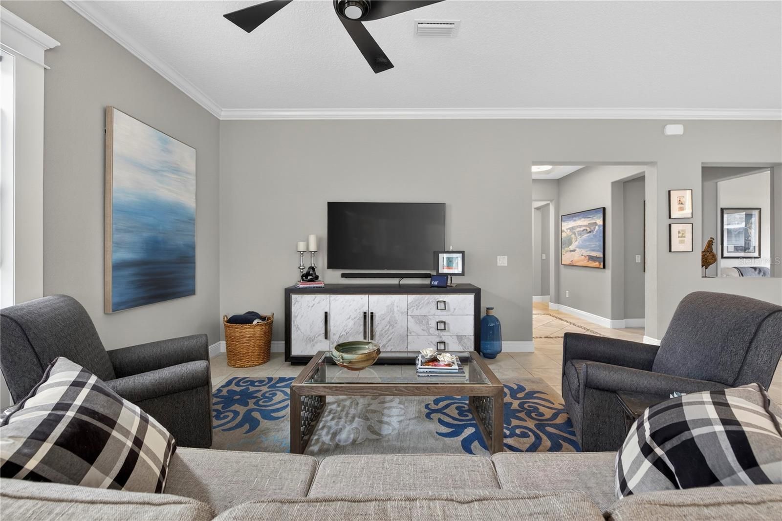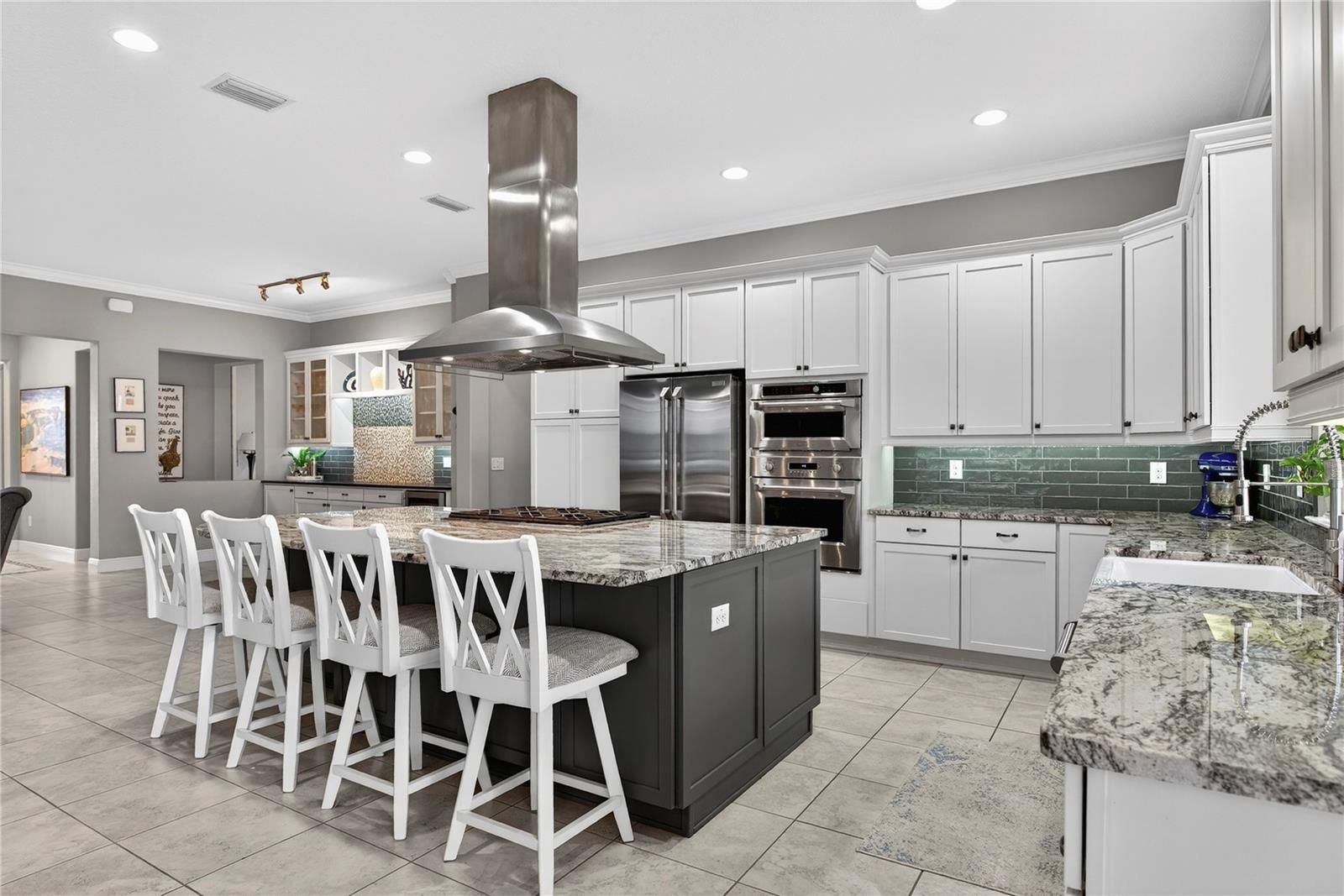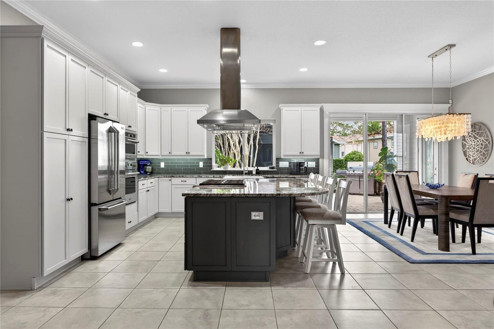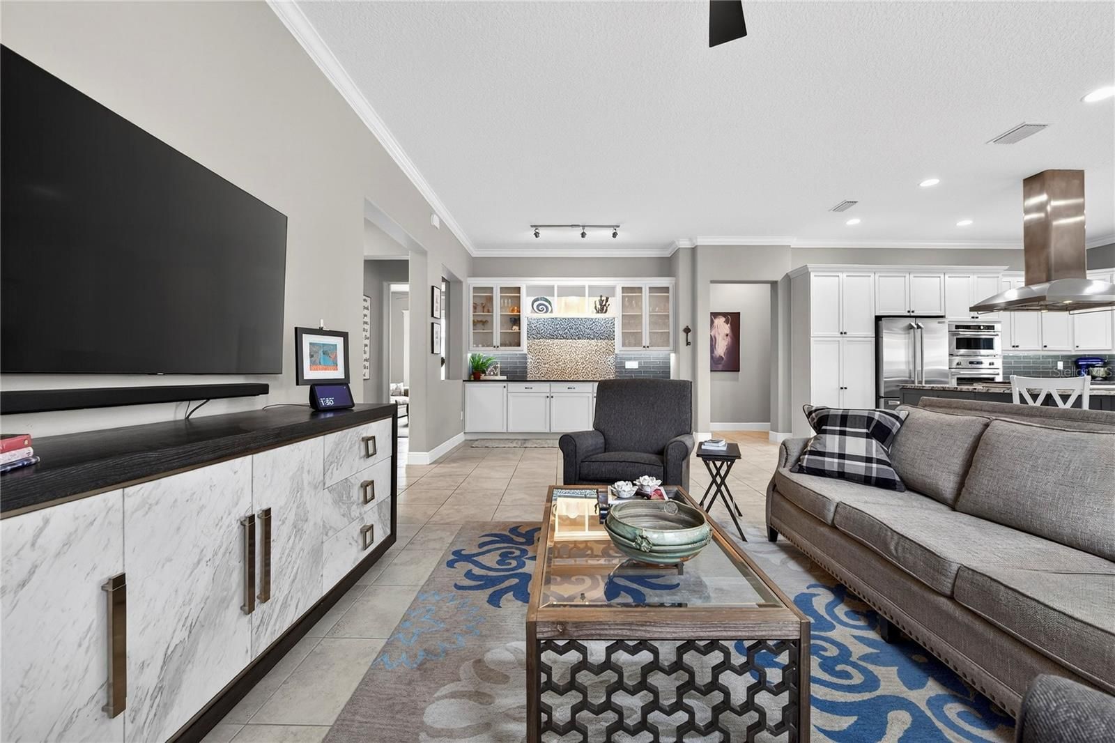Enjoy elevated, resort-style living in the highly sought-after gated community of Ocala Preserve, where luxury, lifestyle, and thoughtful design come together beautifully. This impeccably maintained two-bedroom, two-and-a-half-bath residence with a dedicated den and sunroom truly shows like a model and reflects over $70,000 in carefully selected upgrades. From the moment you step inside, warmth and sophistication set the tone. The heart of the home features a stunning chef’s kitchen appointed with a premium GE Monogram appliance package, including a 36-inch six-burner cooktop, vent hood, Advantium microwave, refrigerator, and beverage cooler. Upgraded cabinetry, granite countertops throughout, an apron-front sink, and designer tile flooring elevate both form and function, while a beautifully designed dry bar with a built-in wine drawer and additional storage makes entertaining effortless. Architectural details shine throughout, with rounded corners, crown molding in the kitchen and main living areas, and elegant tray ceilings in both the primary bedroom and the welcoming entryway. The primary suite is a true retreat, offering a glass-enclosed, fully tiled shower, towel warmer, and a custom-designed walk-in closet complete with shelving, shoe cubbies, and a built-in safe. Thoughtful after-market enhancements continue throughout the home, including updated designer lighting in the dining area, bathrooms, and foyer, ceiling fans throughout, window treatments in every room, and a Smart Room outfitted with cabinetry, sink, folding table, and mudroom-style drop zone. The laundry room also features a convenient built-in desk area, perfect for organization or a home office nook. Additional practical upgrades include overhead storage shelving in both garages and a water softener. Step outside to your private outdoor oasis, where a dramatic 12x40 paver patio expands the original space, creating an ideal setting for entertaining, relaxing, or dining al fresco. A full fence with gated entry courtyard enhances both privacy and charm, while the beautifully designed hardscape offers low-maintenance outdoor living at its finest. Residents of Ocala Preserve enjoy an unmatched lifestyle with access to resort-style amenities including multiple sparkling pools, a lap pool, hot tub, golf course, miles of scenic walking and biking trails, two dog parks, and breathtaking sunset views. This home is the perfect blend of comfort, elegance, and intentional design — a place where new memories are truly made. Schedule your private tour today and experience this exceptional home for yourself.