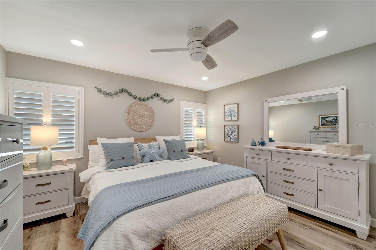 - Ceiling Fan(s), Dry Bar, Eat-in Kitchen, Open Floorplan, Main Level Primary, Solid Surface Counters, Split Bedrooms, Thermostat, Walk-In Closet(s)