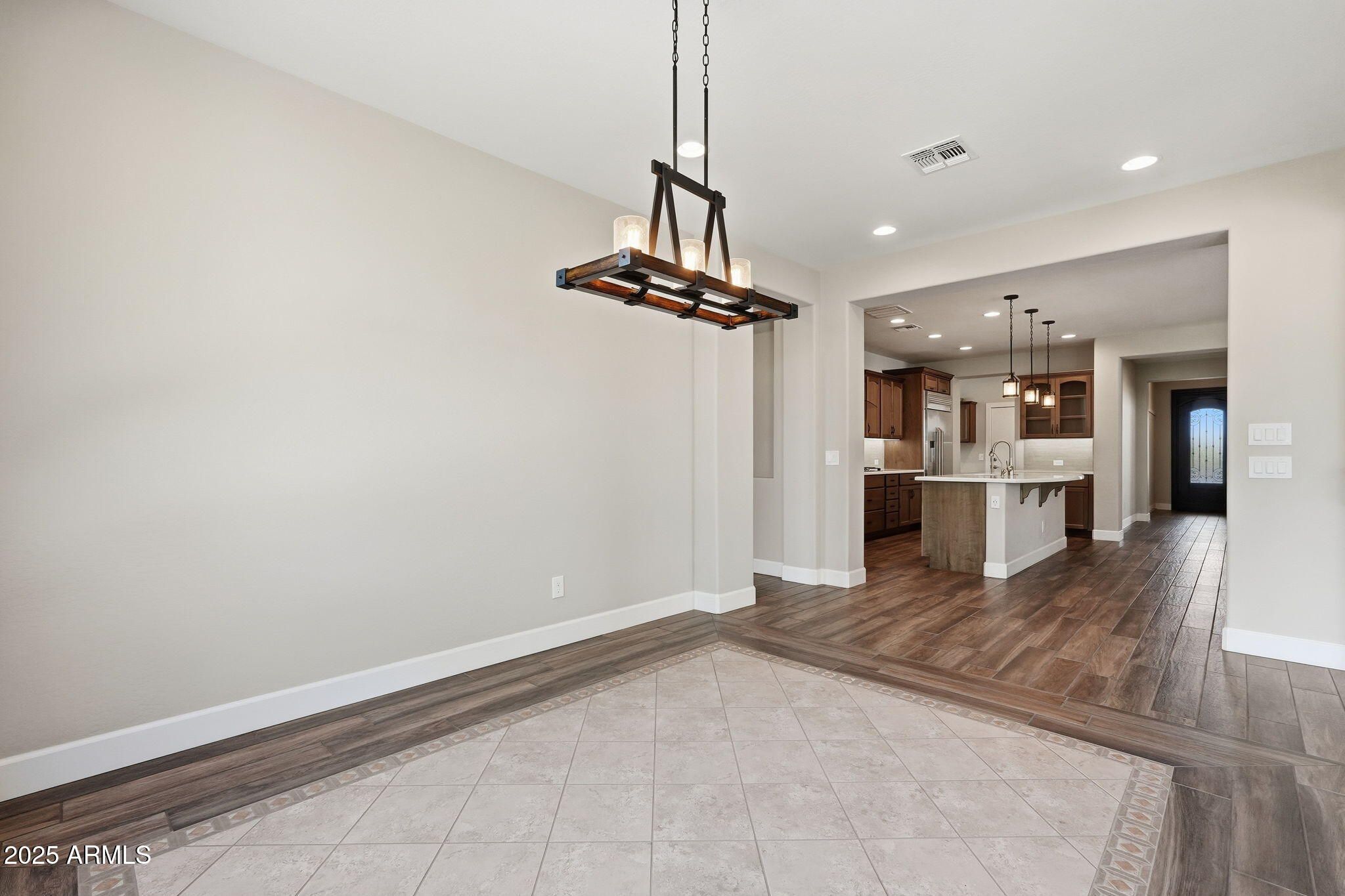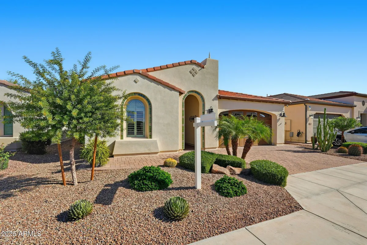 Encanterra Nice plan on a premium homesite backing open space and just a short walk to the Algarve. This light, open layout pairs everyday comfort with lock-and-leave ease. The gourmet kitchen takes center stage with upgraded cabinetry, oversized island, stainless appliances, and plenty of prep and storage space, ideal for casual dinners and effortless entertaining. A den with French doors offers a quiet spot for work, hobbies, or extra guest overflow. Both bathrooms are tastefully upgraded with designer finishes, and the home features upgraded tile throughout for a clean, cohesive look and low-maintenance living. Outside, the private backyard looks onto open space with no neighbors directly behind so morning coffee feels a little more peaceful. Book your tour today!