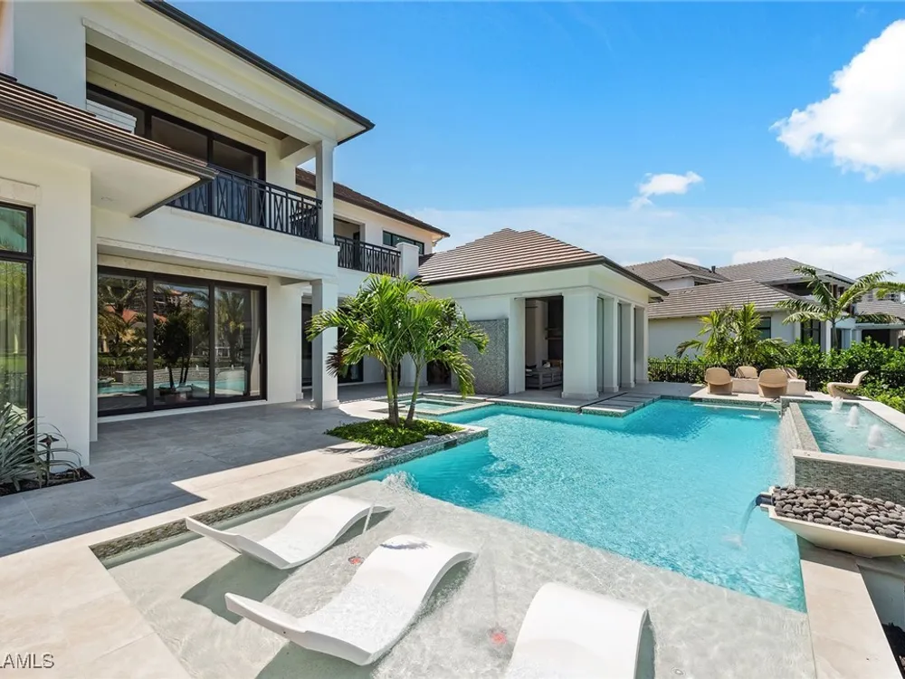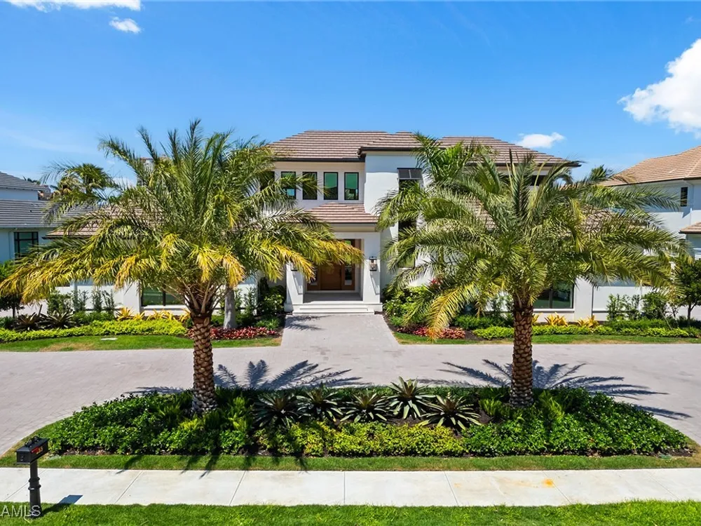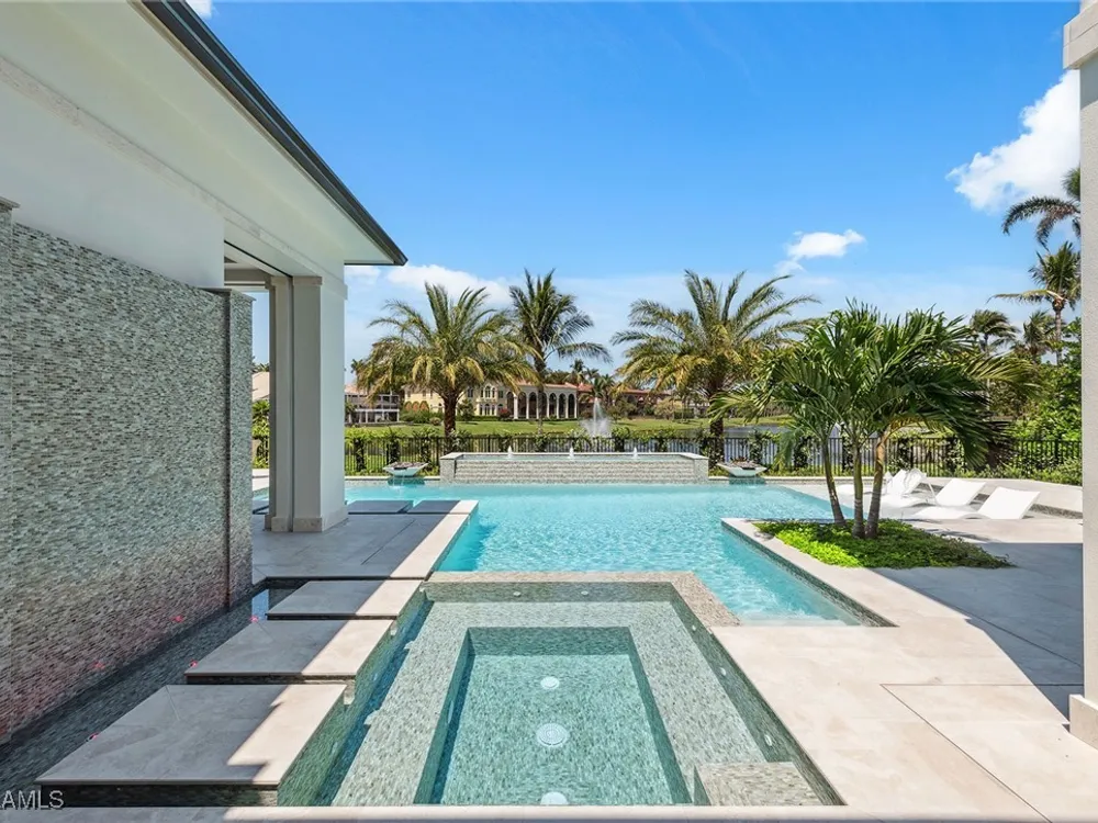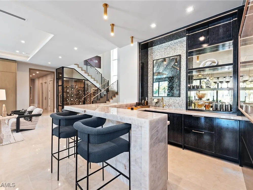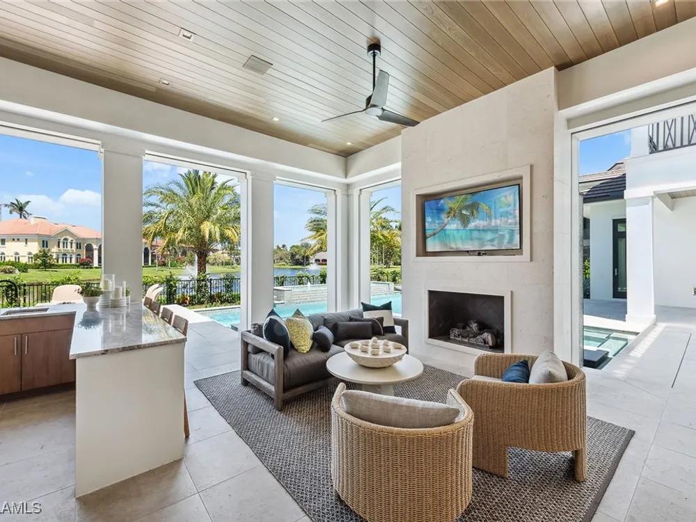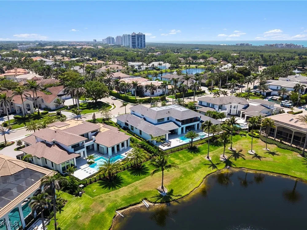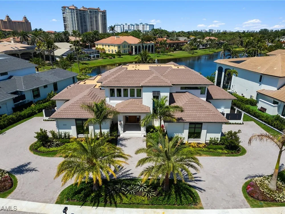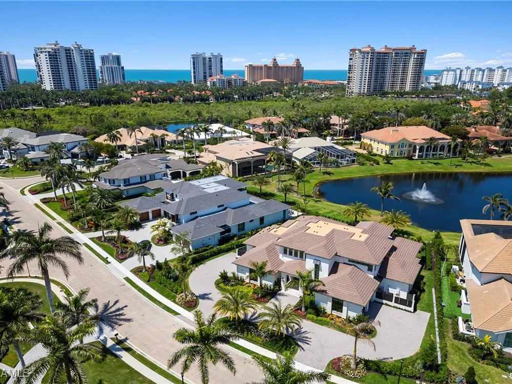Lakefront Estate home in Bay Colony Shores! Introducing an expertly designed and masterfully constructed estate by Stock Custom Homes situated on one of the most prime west-facing lakefront lots in Bay Colony. Comprising over 6,300 square feet of designer interior living space with five bedrooms, five full baths and two half baths impressively transformed by renowned design firm Marc-Michaels Interior Design. Upgraded features include large format tile and wide plank wood flooring, wine room, designer Sub-Zero refrigeration, Wolf 48-inch sealed six-burner range top, Wolf double wall oven, convection oven, warming drawer, home automation and lighting control. The owner’s bedroom suite offers wood detail in coffer, walk-in shower with Brizo showerhead, rain head, body sprays and freestanding tub. Saltwater pool with spa, sun shelf, fire and water bowls and linear fire pit, an outdoor kitchen with NatureKast cabinets and a built-in grill. Four-car garage with epoxy flooring. Enjoy the ultimate Naples lifestyle in Bay Colony.