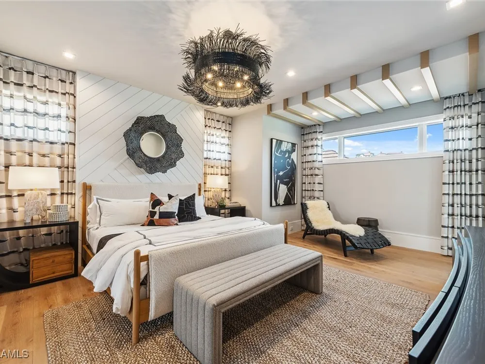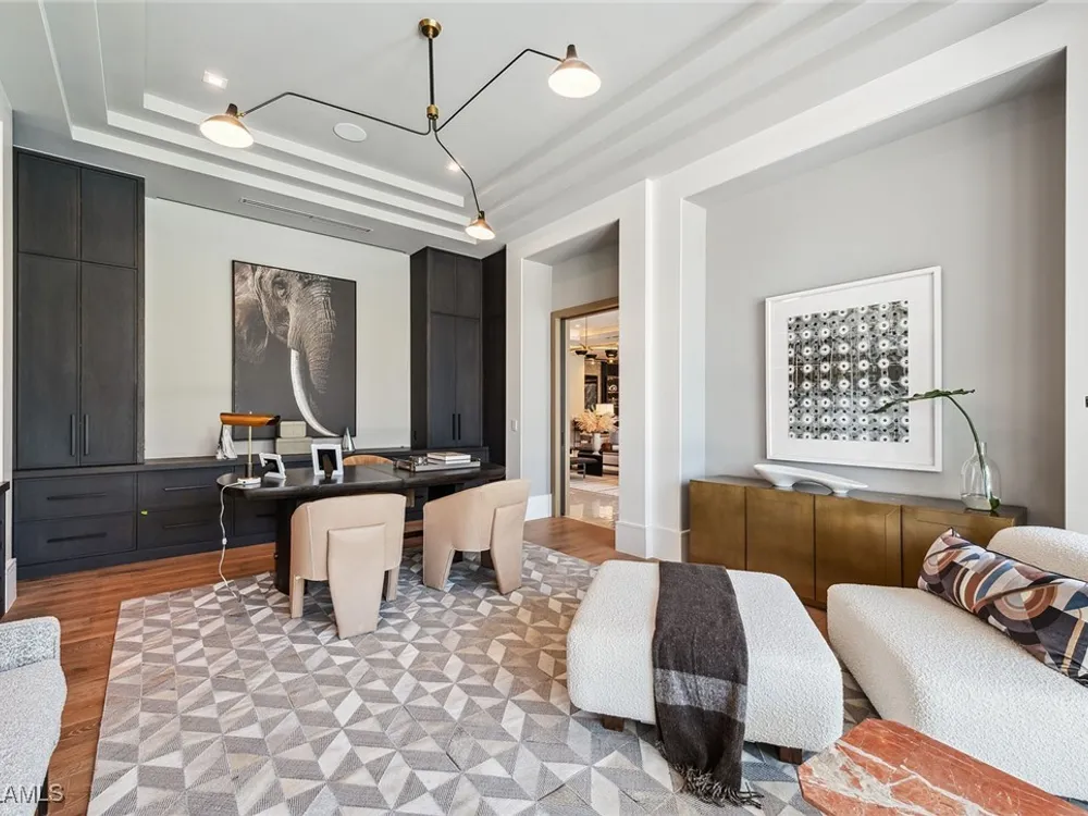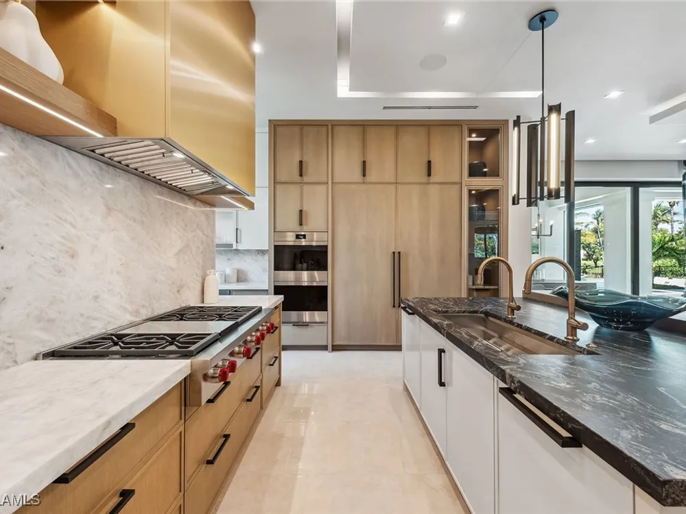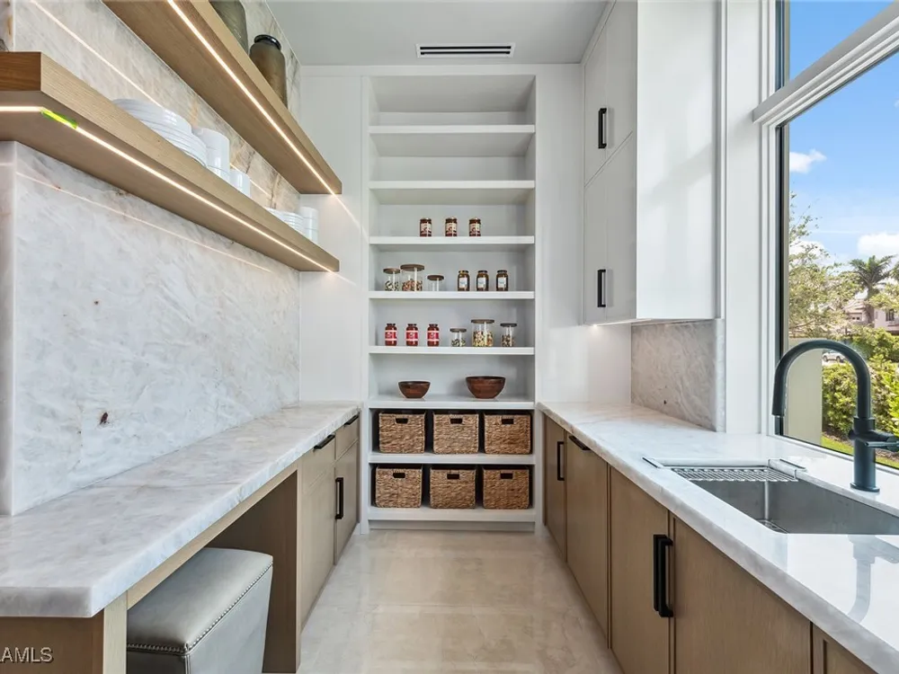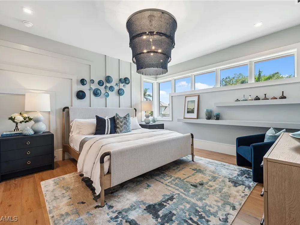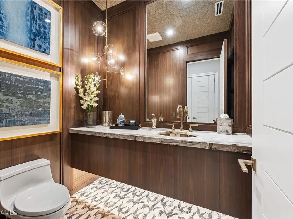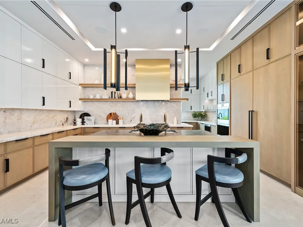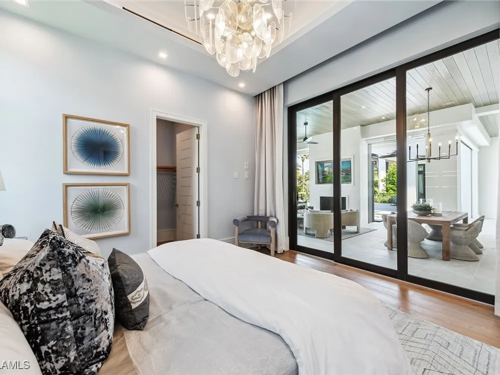 Lakefront Estate home in Bay Colony Shores! Introducing an expertly designed and masterfully constructed estate by Stock Custom Homes situated on one of the most prime west-facing lakefront lots in Bay Colony. Comprising over 6,300 square feet of designer interior living space with five bedrooms, five full baths and two half baths impressively transformed by renowned design firm Marc-Michaels Interior Design. Upgraded features include large format tile and wide plank wood flooring, wine room, designer Sub-Zero refrigeration, Wolf 48-inch sealed six-burner range top, Wolf double wall oven, convection oven, warming drawer, home automation and lighting control. The owner’s bedroom suite offers wood detail in coffer, walk-in shower with Brizo showerhead, rain head, body sprays and freestanding tub. Saltwater pool with spa, sun shelf, fire and water bowls and linear fire pit, an outdoor kitchen with NatureKast cabinets and a built-in grill. Four-car garage with epoxy flooring. Enjoy the ultimate Naples lifestyle in Bay Colony.