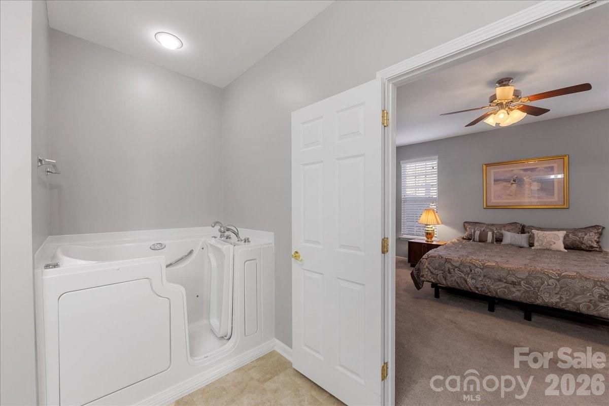 Welcome home to one of the most desirable one-level floor plans in this amenity-rich, 55+ community in Fort Mill, SC.! This home has been gently used, offering a split bedroom design, with two spacious primary suites, both with ensuite baths and generous walk-in closets. There is also a large flex room that could be used as a study, sewing room or 3rd bedroom with closet and a third full bath! The home is situated on a corner lot/end unit and offers fabulous natural light throughout the day. It is bright and cheerful with neutral colors and spacious rooms that flow together for easy entertaining. The primary suite features a walk in shower plus a brand new walk-in tub with jets- great for therapy or a relaxing soak! The spacious living room adjacent to the kitchen features a gas fireplace, ceiling fan, and access to the private back patio. Enjoy quick meals at the eat-at bar or breakfast table and more formal meals in the separate dining room. The side load garage offers safe and easy access into the home via the laundry/mud room which features more closet storage and shop sink for added convenience. This home lives like a single family home without the concerns of lawn care or exterior maintenance! Four Seasons at Gold Hill is the place to be for active adults looking for social connection and abundant recreational opportunities including a fabulous clubhouse with fitness center, exercise room, gathering spaces, library, dining room and full kitchen. Outside amenities include an in ground pool, hot tub, sport courts, green spaces and more gathering spaces. When you see this home, be sure to visit the clubhouse for a casual walk through on your own or guided tour by a very welcoming team member. Four Seasons is not only a place to call home, it is a lifestyle!