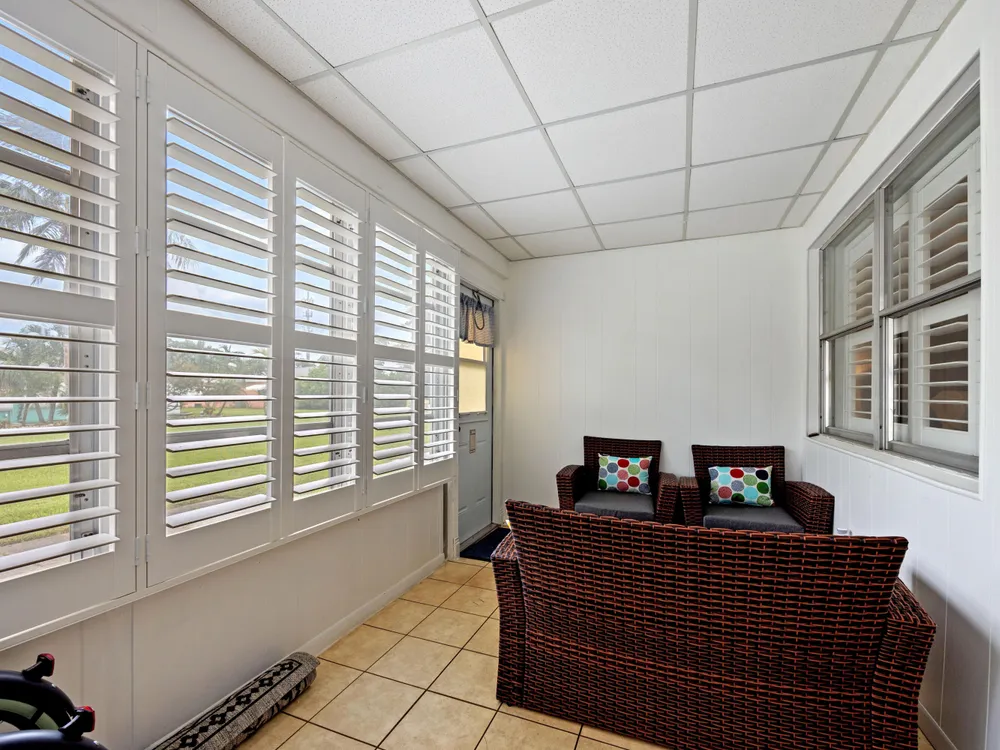 - Walk-In Closet(s), Florida Room, Living/Dining Room, Plantation Shutters, Tub Shower