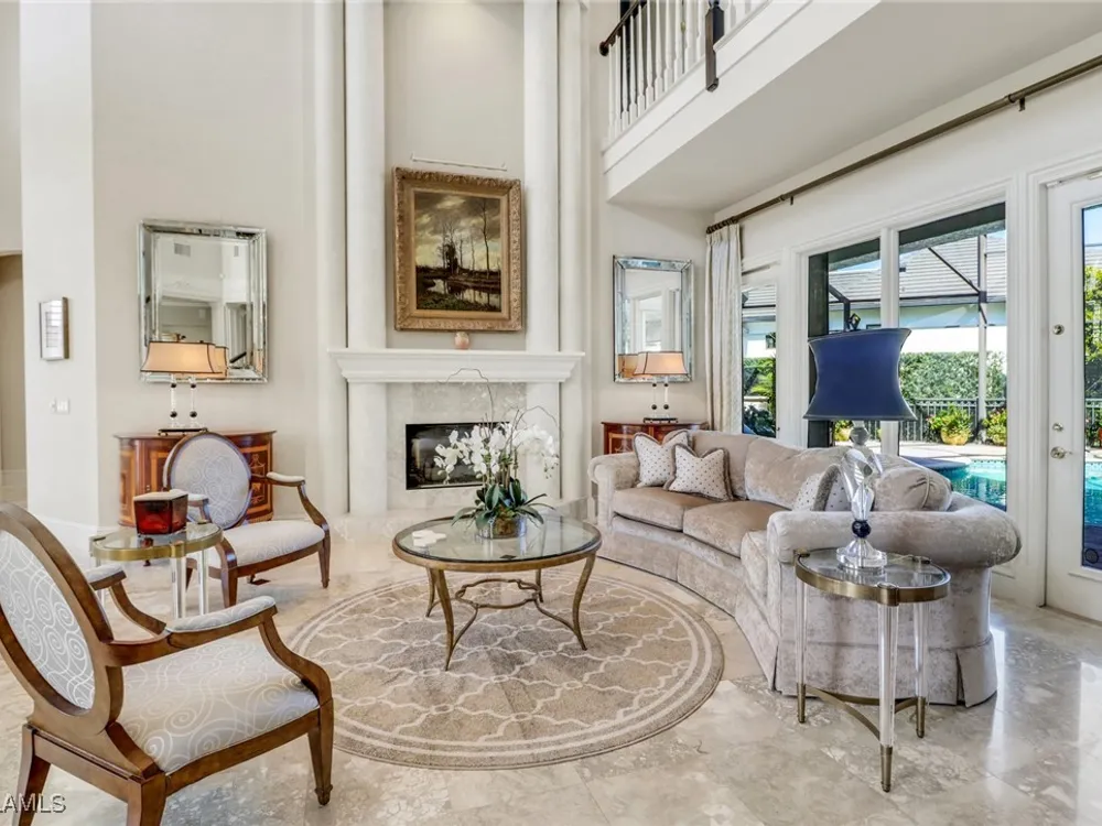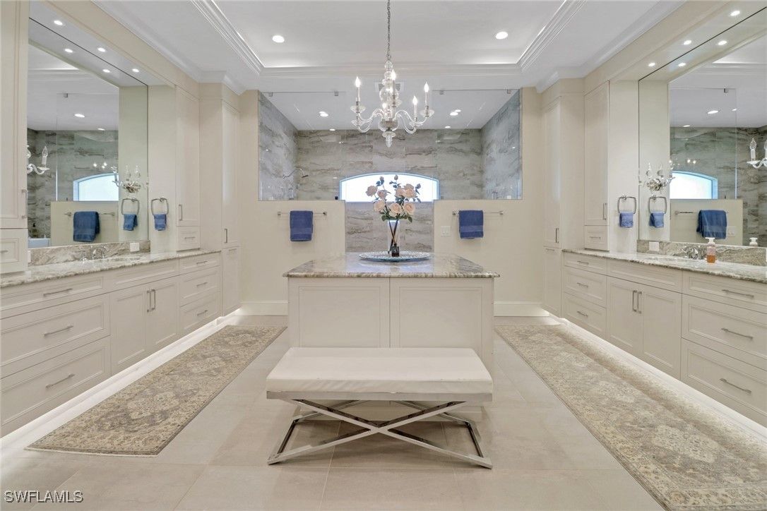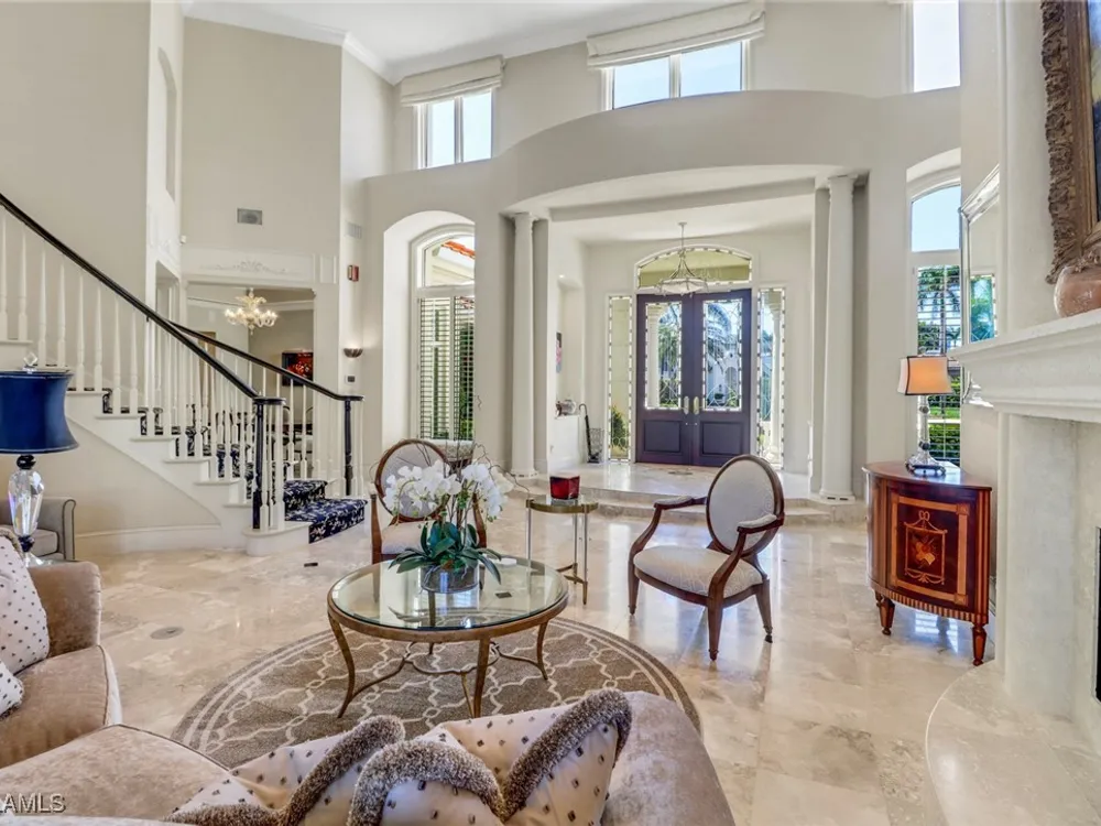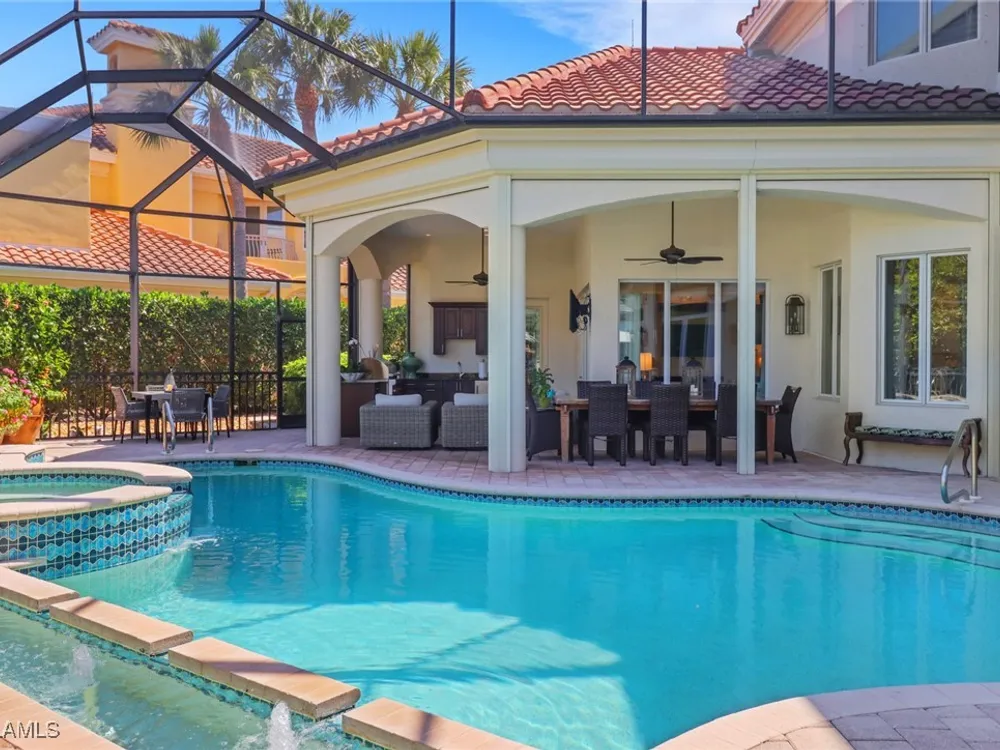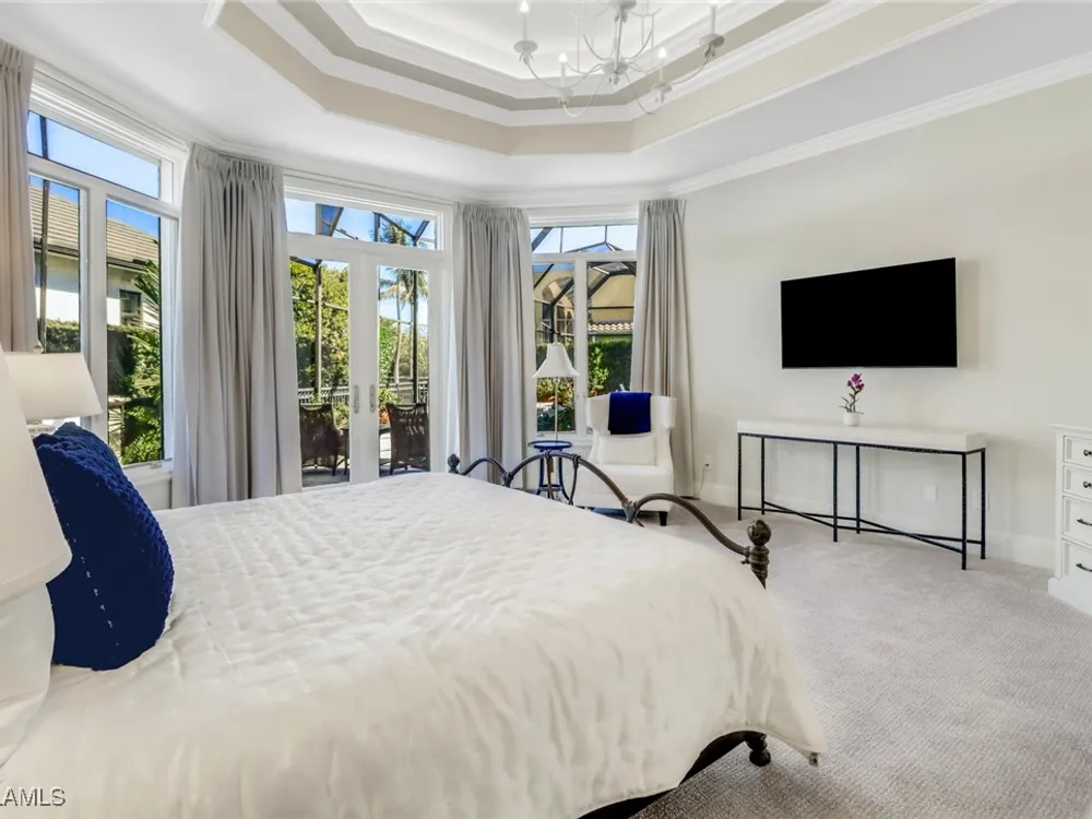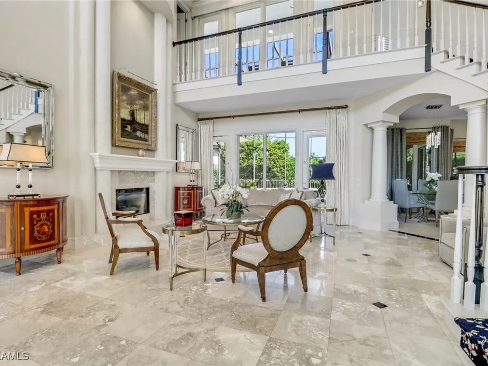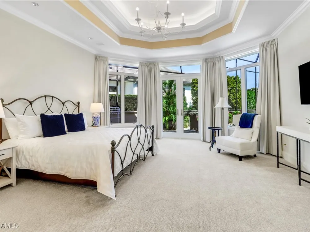 Exquisite Lakefront Estate in The Shores at Bay Colony | Nestled on a spacious corner lot, this stunning two-story residence offers breathtaking lake views and an unparalleled blend of luxury and comfort. The thoughtfully designed floor plan features a serene primary suite and a private study on the main floor, while the upper level boasts two elegant guest suites with panoramic lake views. Additionally, a separate living space upstairs includes two more bedrooms connected by a Jack and Jill bathroom, providing added privacy and versatility for family or guests. At the heart of the home is a state-of-the-art, fully renovated kitchen, seamlessly connecting to a spacious family room, a formal dining area, and an inviting living space. Expansive glass doors lead to a large lanai with a summer kitchen, perfect for outdoor entertaining. Additional highlights include a three-car garage with a circular driveway, offering ample parking and convenience. Located in the prestigious, gated community of Bay Colony, residents enjoy exclusive access to a private beach club, resort-style pool, fine dining restaurant, and world-class tennis facilities. The property is just moments from The Ritz-Carlton, the Philharmonic Center for the Arts, and the upscale shopping and dining destinations of Waterside Shops and Mercato. This exceptional home embodies sophistication and coastal elegance, making it a perfect sanctuary for refined living and entertaining.