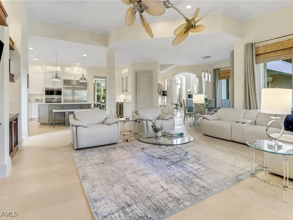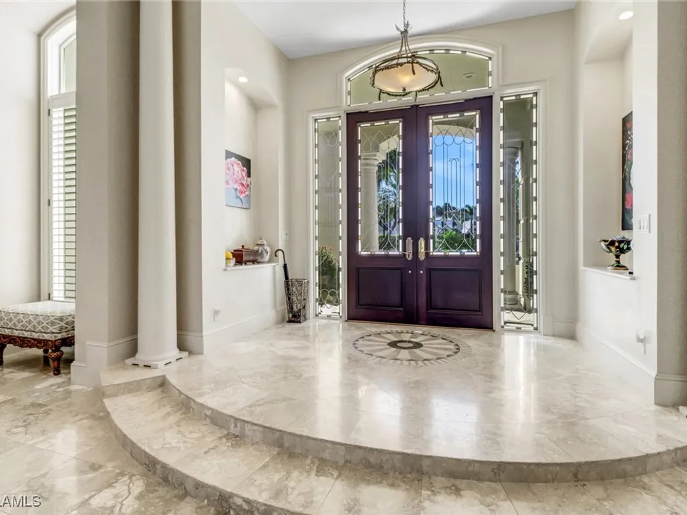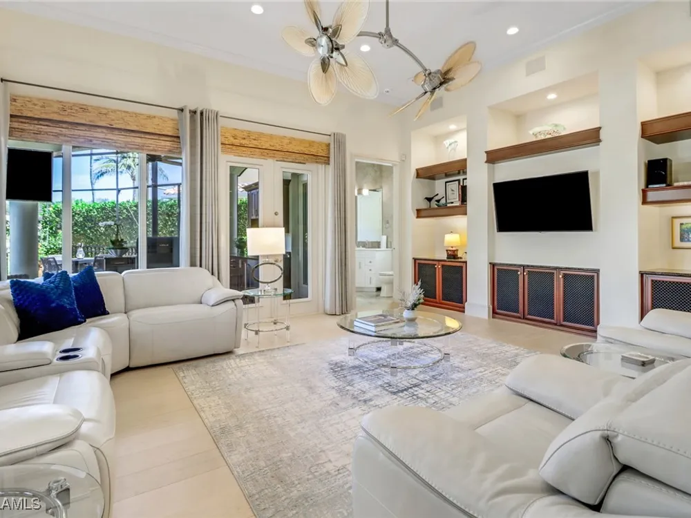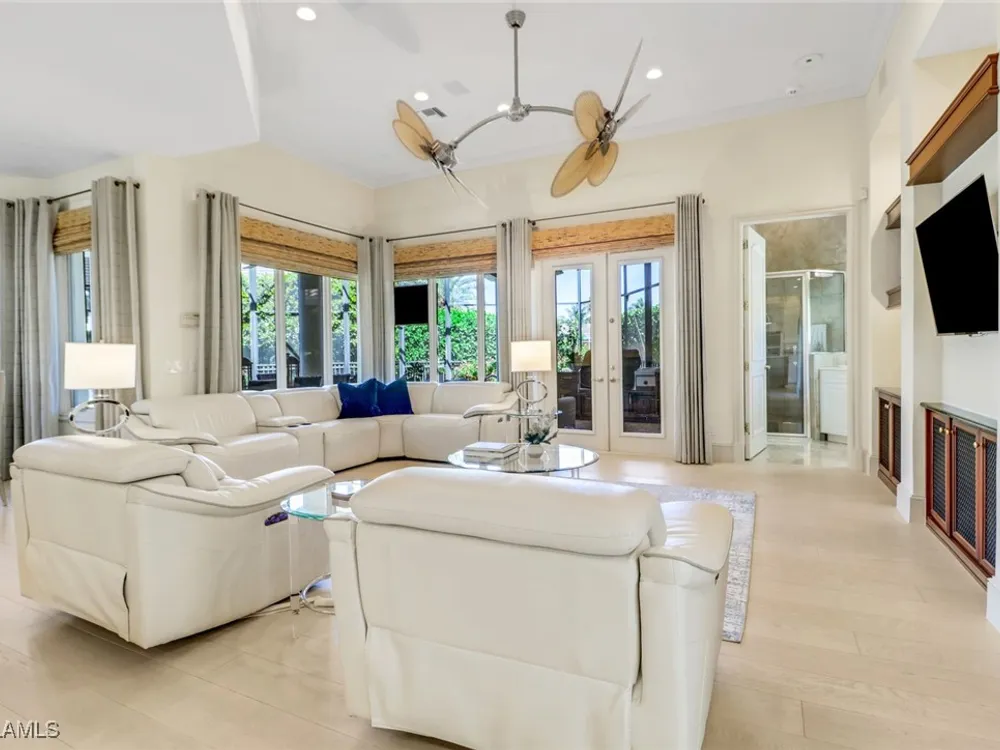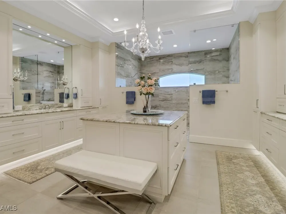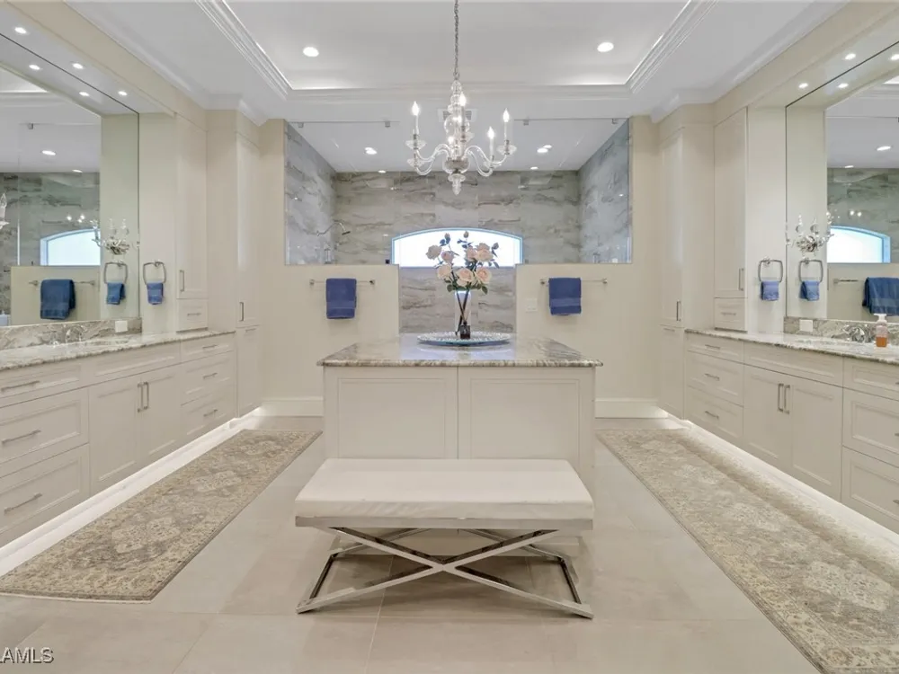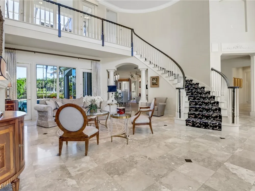 Exquisite Lakefront Estate in The Shores at Bay Colony | Nestled on a spacious corner lot, this stunning two-story residence offers breathtaking lake views and an unparalleled blend of luxury and comfort. The thoughtfully designed floor plan features a serene primary suite and a private study on the main floor, while the upper level boasts two elegant guest suites with panoramic lake views. Additionally, a separate living space upstairs includes two more bedrooms connected by a Jack and Jill bathroom, providing added privacy and versatility for family or guests. At the heart of the home is a state-of-the-art, fully renovated kitchen, seamlessly connecting to a spacious family room, a formal dining area, and an inviting living space. Expansive glass doors lead to a large lanai with a summer kitchen, perfect for outdoor entertaining. Additional highlights include a three-car garage with a circular driveway, offering ample parking and convenience. Located in the prestigious, gated community of Bay Colony, residents enjoy exclusive access to a private beach club, resort-style pool, fine dining restaurant, and world-class tennis facilities. The property is just moments from The Ritz-Carlton, the Philharmonic Center for the Arts, and the upscale shopping and dining destinations of Waterside Shops and Mercato. This exceptional home embodies sophistication and coastal elegance, making it a perfect sanctuary for refined living and entertaining.