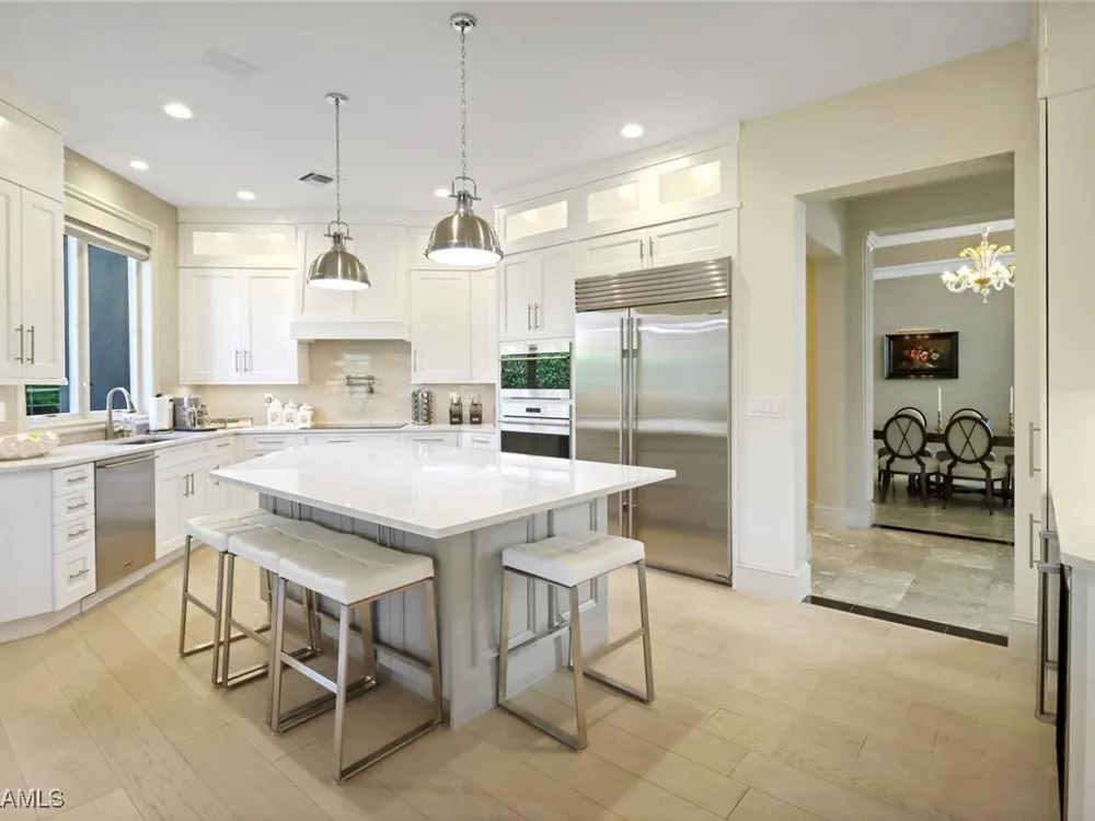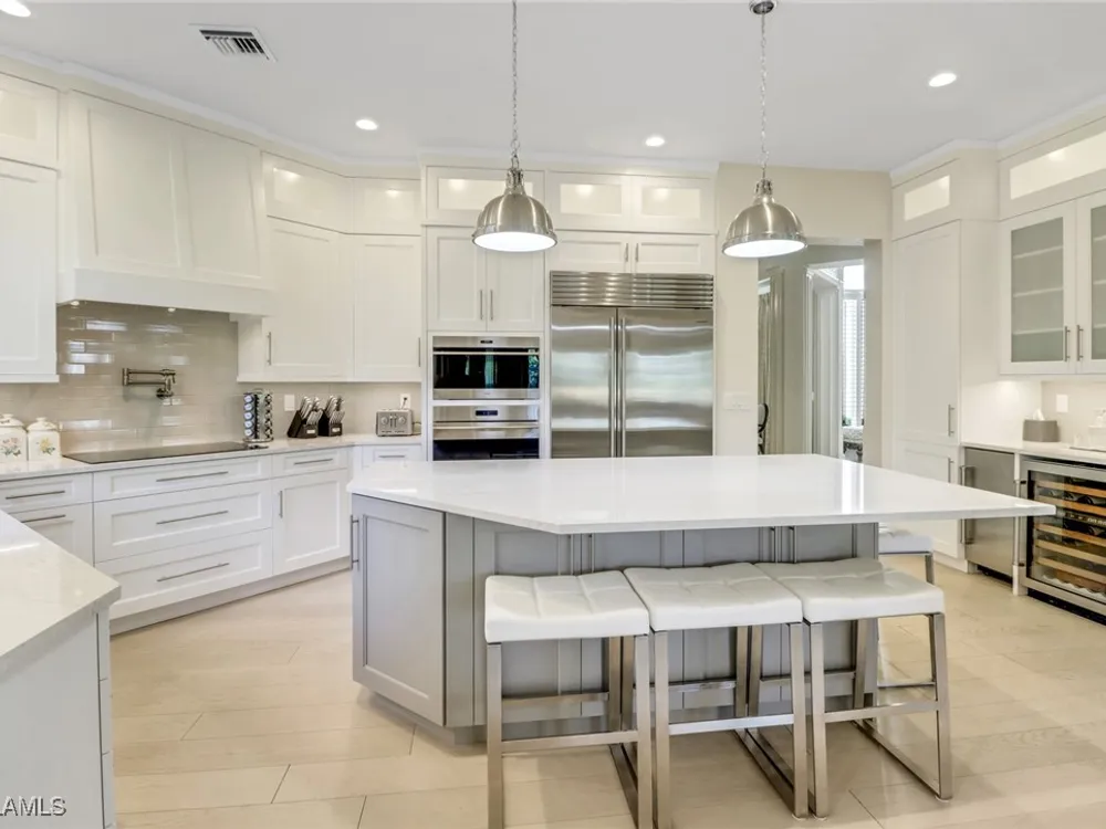 - Double Oven, Dishwasher, Microwave, Range, Refrigerator, Separate Ice Machine, Tankless Water Heater, Wine Cooler, Warming Drawer, Washer