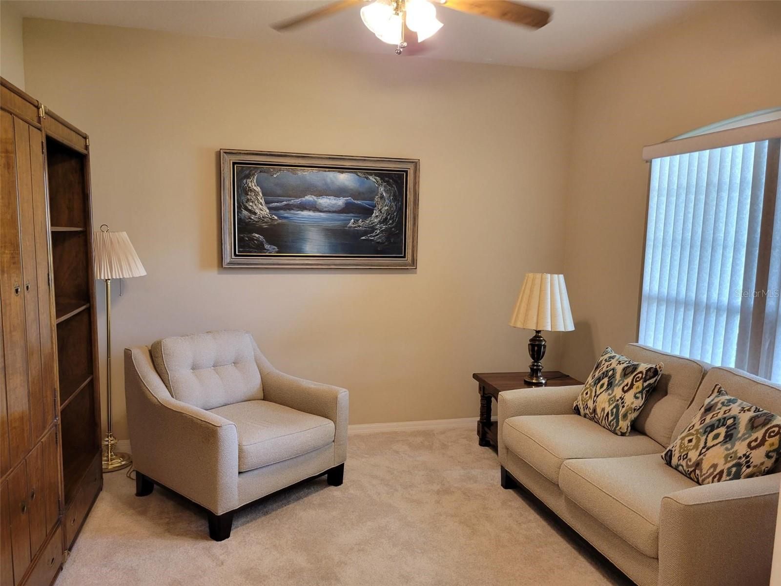 Magnificent home in highly sought-after 55+ Kings Ridge. Enjoy the awesome sunsets on the West facing Lanai that overlooks the 14th fairway of the golf course and pond with a beautiful water fountain. This lovely St Clair model boasts three spacious bedrooms and two baths with 1922 square feet of living space. Entering the home at the foyer features the Dining Room on the left and Family Room on the right. The large Living Room is off the gourmet kitchen with sliding door access to the oversized 29 x 18 screened covered lanai. Home includes a 2 car garage with door opener, utility sink and water softener. Interior laundry Room. All appliances are included in the sale, except for the Washer & Dryer. Seller is including the Dining Room Table, Chairs and Buffet if desired by the Buyers. Enjoy the safety of a guard gated community and beauty of tree lined streets and amazing community amenities including a multi-million-dollar clubhouse. Live the Royal lifestyle with two 18-hole golf courses, three heated pools, two fitness centers, spas, tennis & pickle ball courts, billiards, shuffleboard, shows, Bingo, Dancing, cards, crafts, movie & food truck nights and join any one of the many clubs galore. HOA dues include lawn maintenance & irrigation, exterior painting, landline phone, basic cable and internet and all community amenities. Close to Highway 27 and 50, Florida Turnpike with easy access to downtown Orlando within 30 minutes & twenty-two miles to Disney. Conveniently located outside the community: golf cart accessible Publix, University of Florida urgent care center, doctors, dentists, Walgreen’s pharmacy, Quest and close to Costco, Kohls, Walmart, BJs and numerous restaurants within five miles. At least one buyer must be at least 55 years old or older for HOA approval. Age of Items: New Roof - Nov 2024; New Complete Lennox HVAC Unit - Oct 2023; New Water Heater - Oct 2023; Exterior Paint - Oct 2022; Energy Efficient Pella Windows & Sliding Glass Doors - 2017; Upgraded Flooring - 2017. Call for a private tour of this fantastic home.